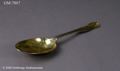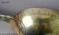 Beskrivning: förgylld silversked som är nästan dubbelt så stor och lång som en vanlig matsked, den ser ut på det viset då den skulle användas att lägga upp mat med, denna sorts serveringsbestick kallades förr i tiden för förläggare.