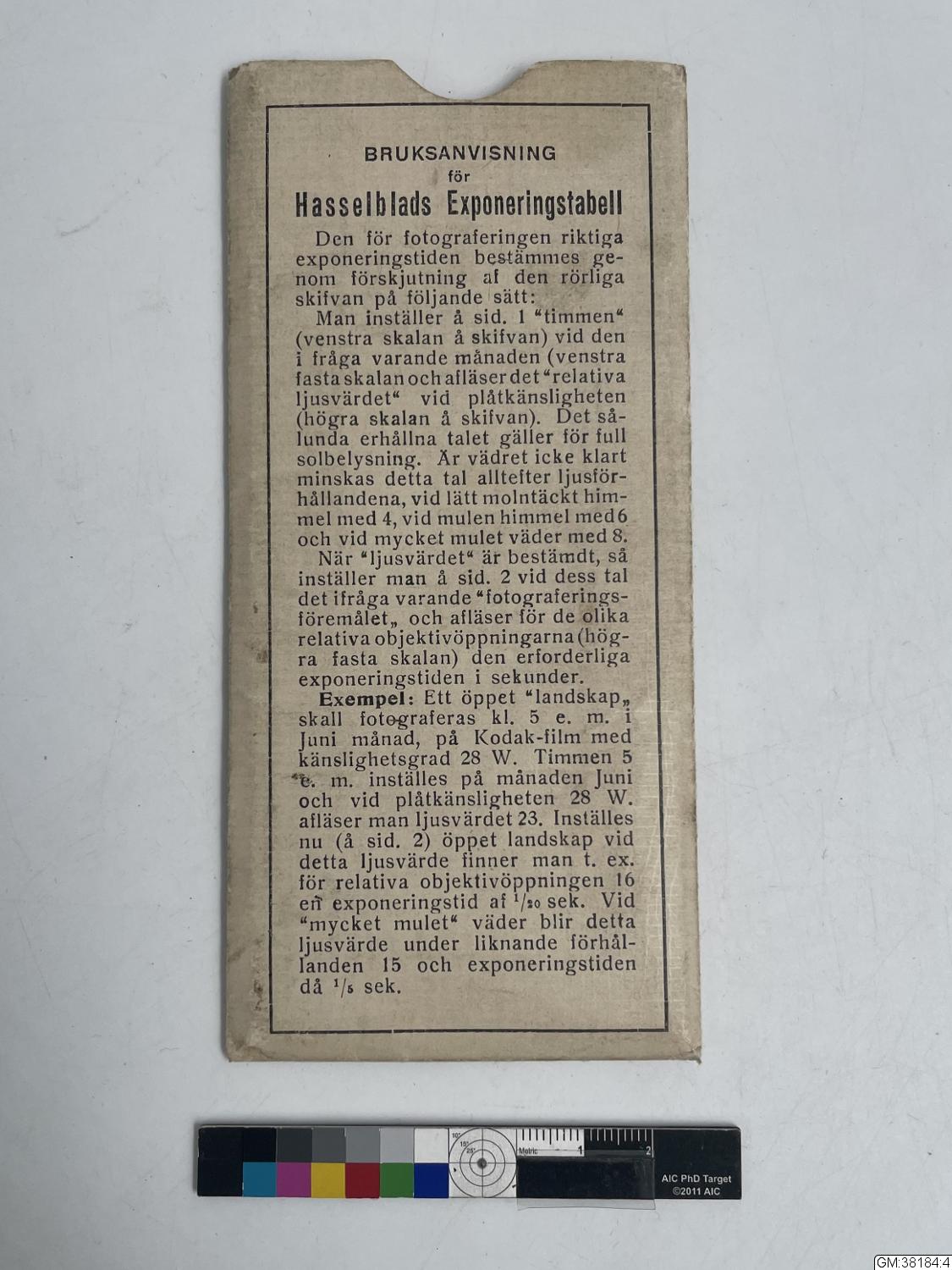 GM:38184 :: exponeringstabell, fototabell, film, foto