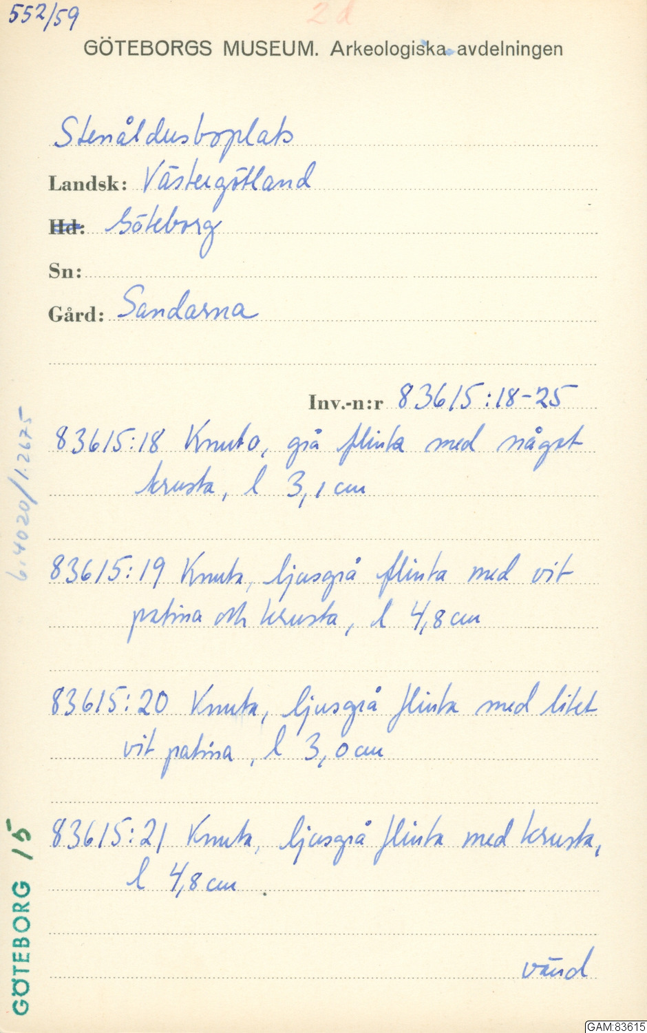 Alin J, Niklasson N& Thomasson H, Stenåldersboplatsen på Sandarna vid Göteborg 1934