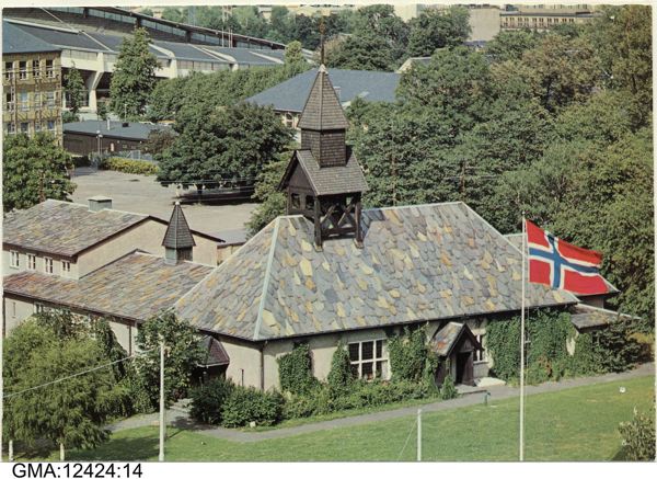 - Norska sjömanskyrkan på Skånegatan 1980. Vykort av AB Jolin & Wilkenson.