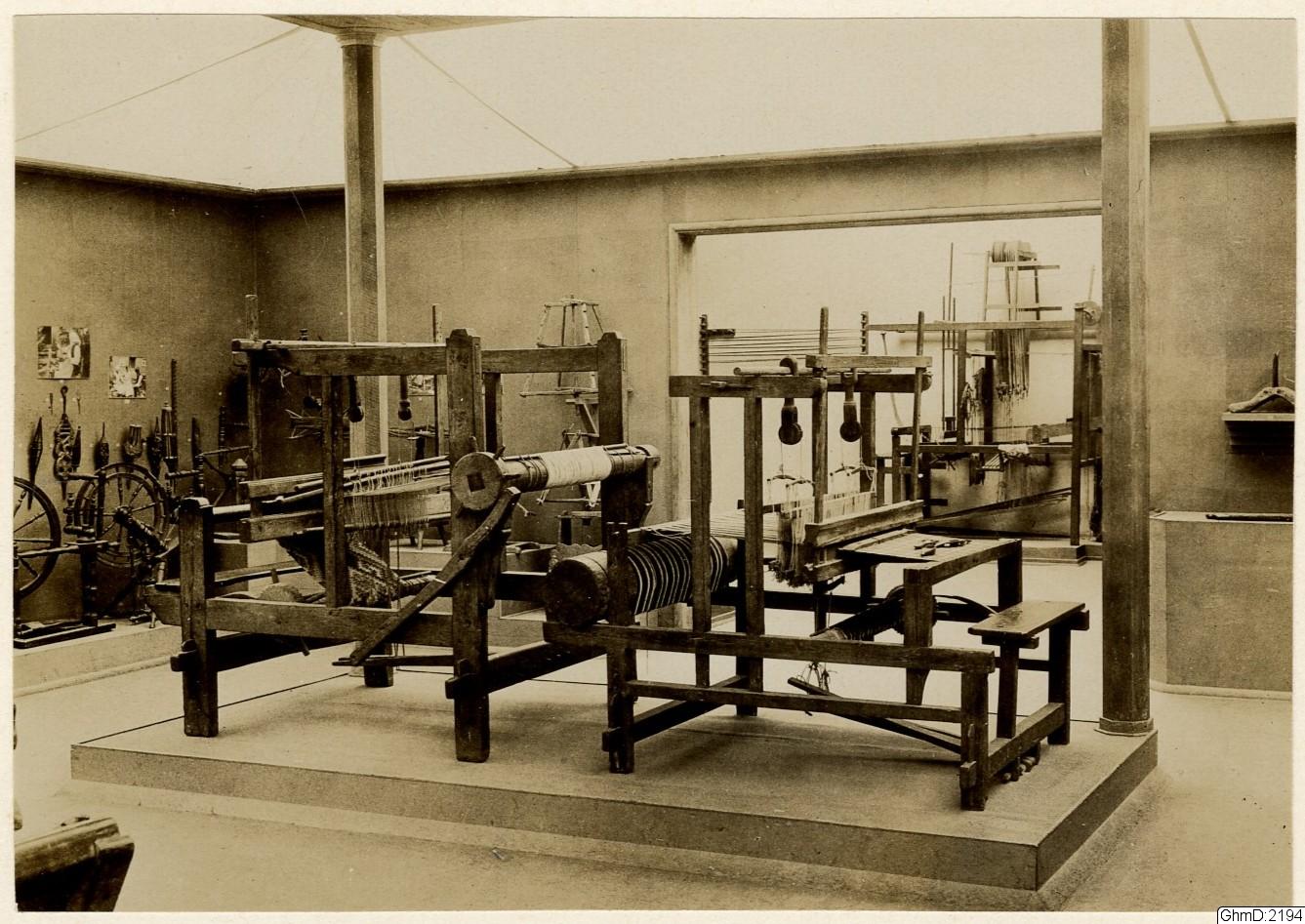 "I detta rum utställas redskap, fotografier och halvfabrikat, som avse att ge en inblick i metoderna inom den för Västsverige sedan gamla tider betydelsefulla textila hemslöjden. Då textiltillverkning såsom hantverk längesedan upphört att idkas i städerna, måste man söka de ålderdomliga metoderna på landsbygden, där de fortfarande uppehållits. De skilda specialiteter i fråga om vävnader, som olika bygder ägt, kunna delvis även spåras i de använda redskapen.