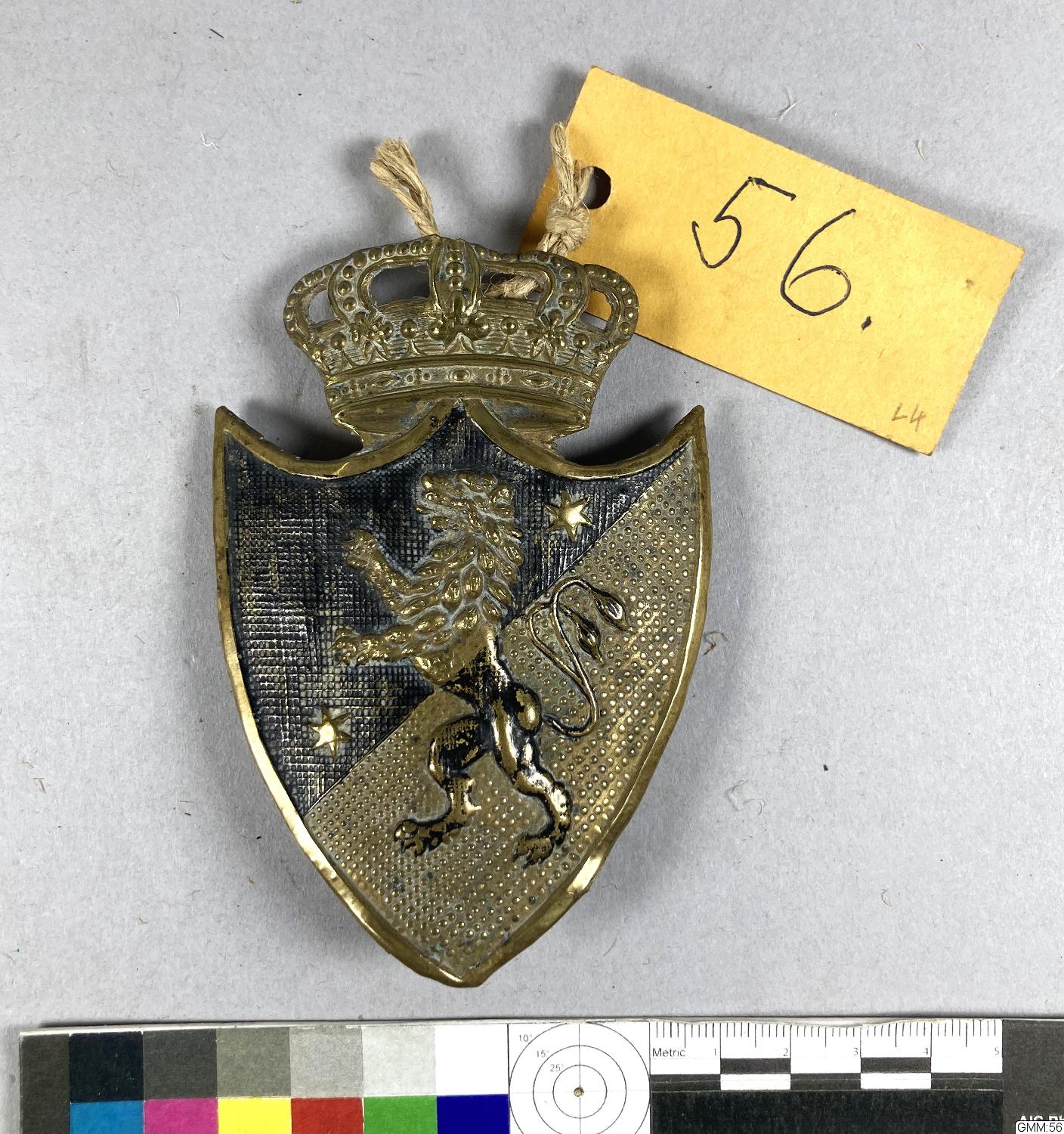 Tschakotplåt, vapenplåt, för manskap, Skaraborgs Regemente. Till tschakot m/1790.