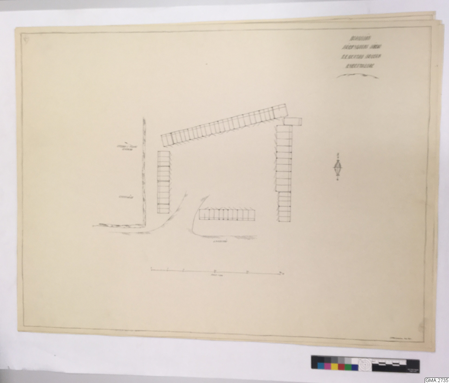 Uppmätningsritning, kyrkstallar; sommaren 1920.