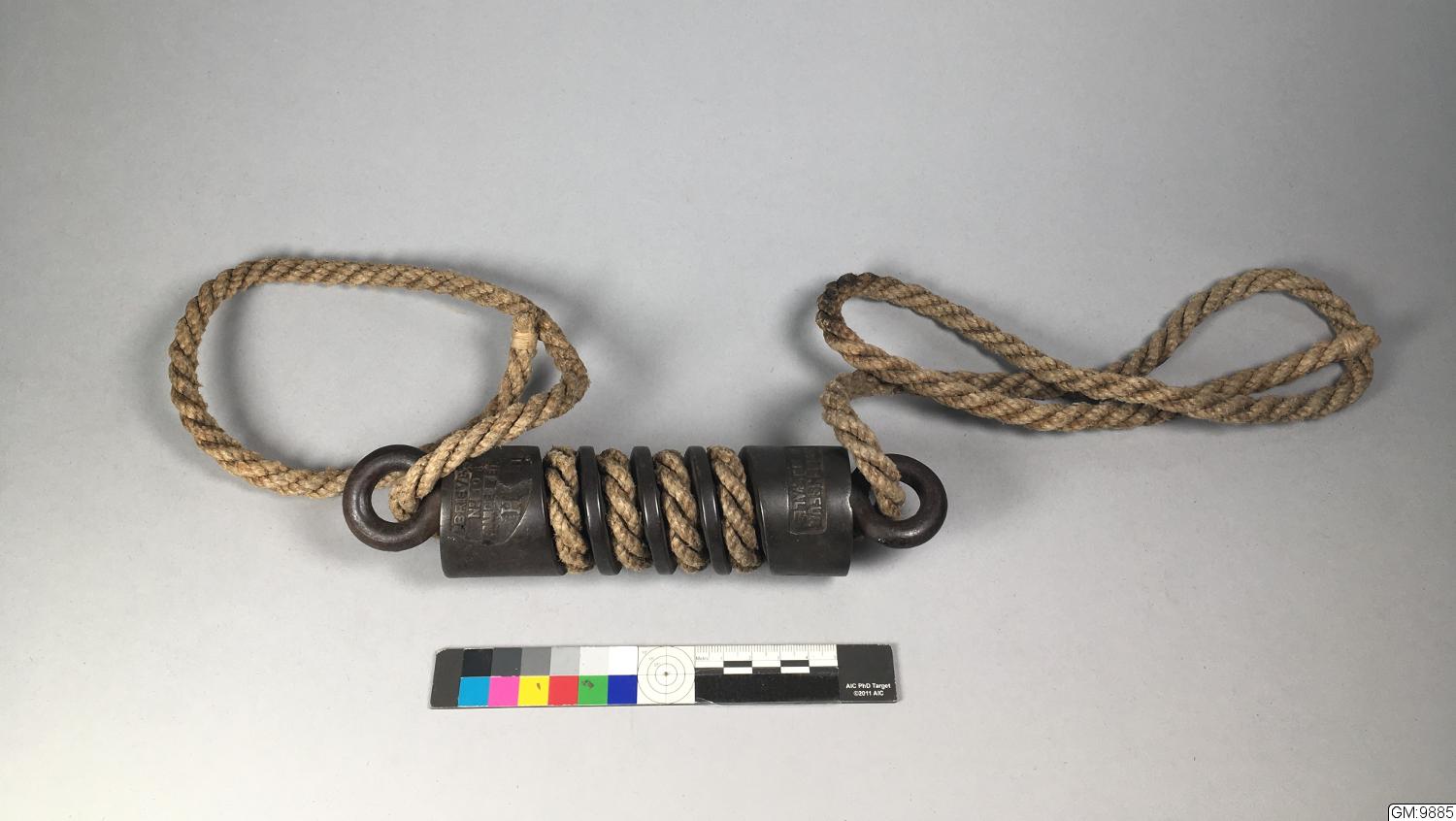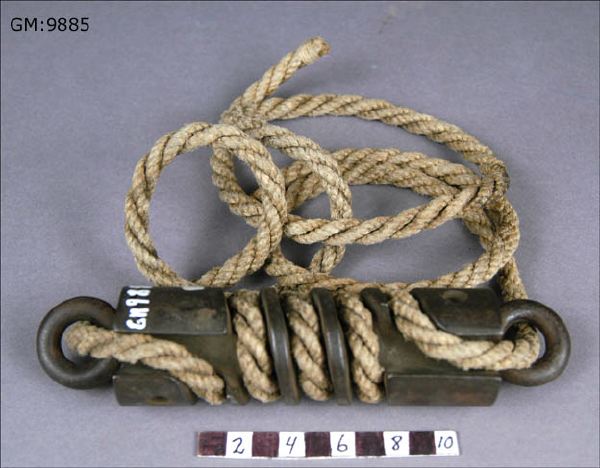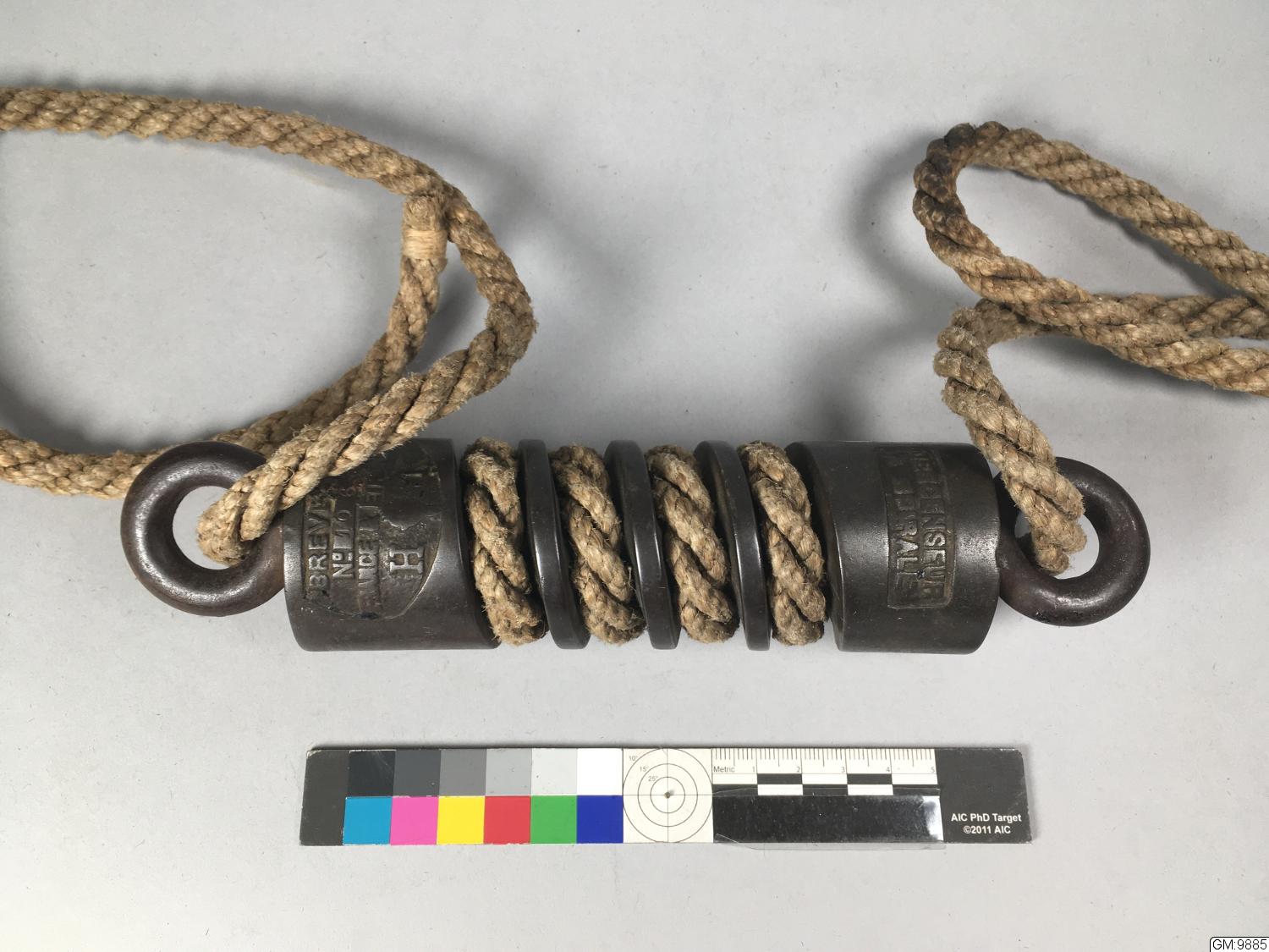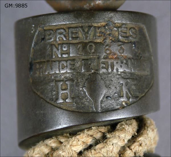 linbroms av järn med fastsatt repända, med inskrift "Descenseur á spirale".