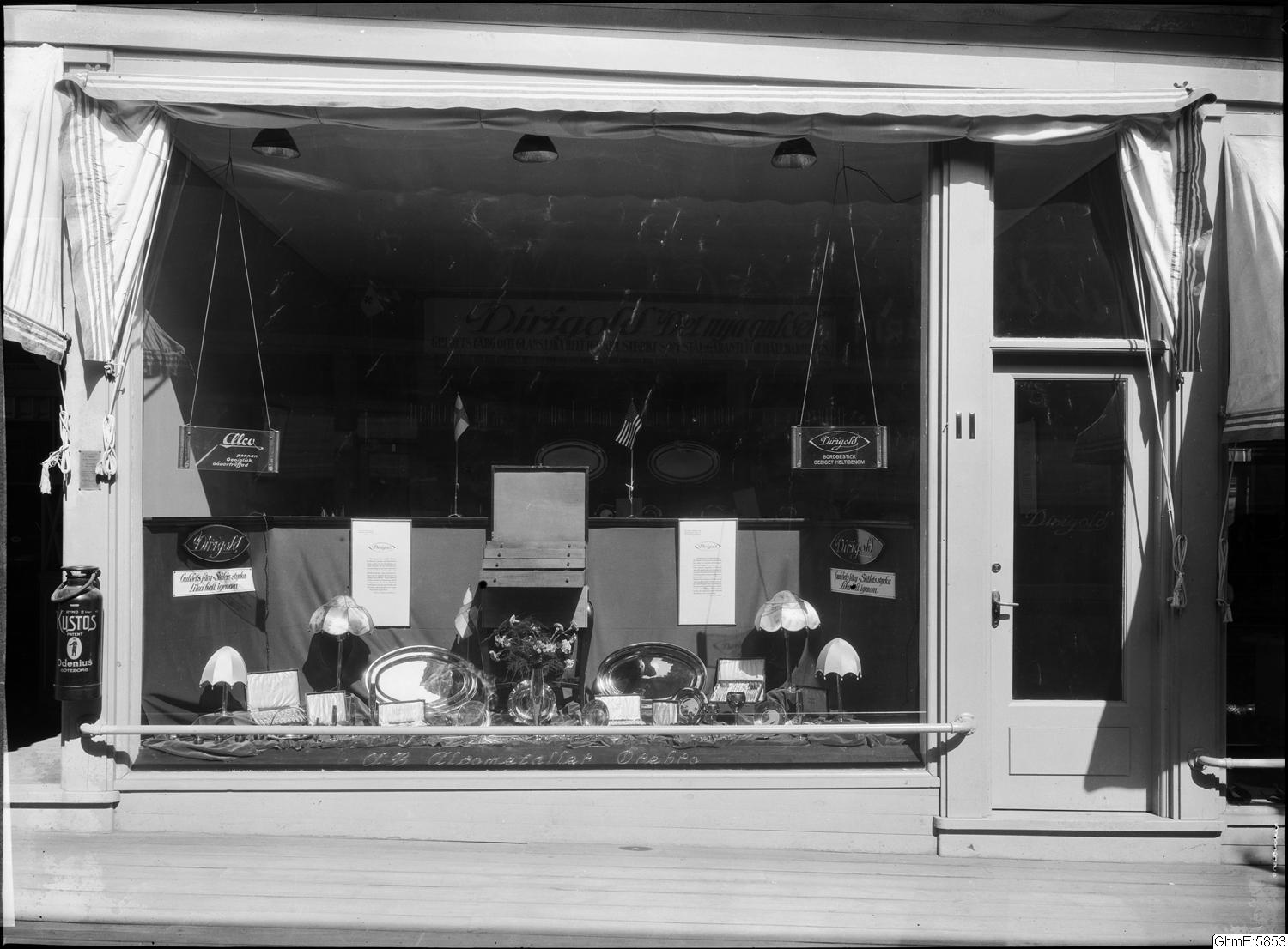 - Skyltfönstret hos AB Alcometallers butik med utställning vid Viadukten