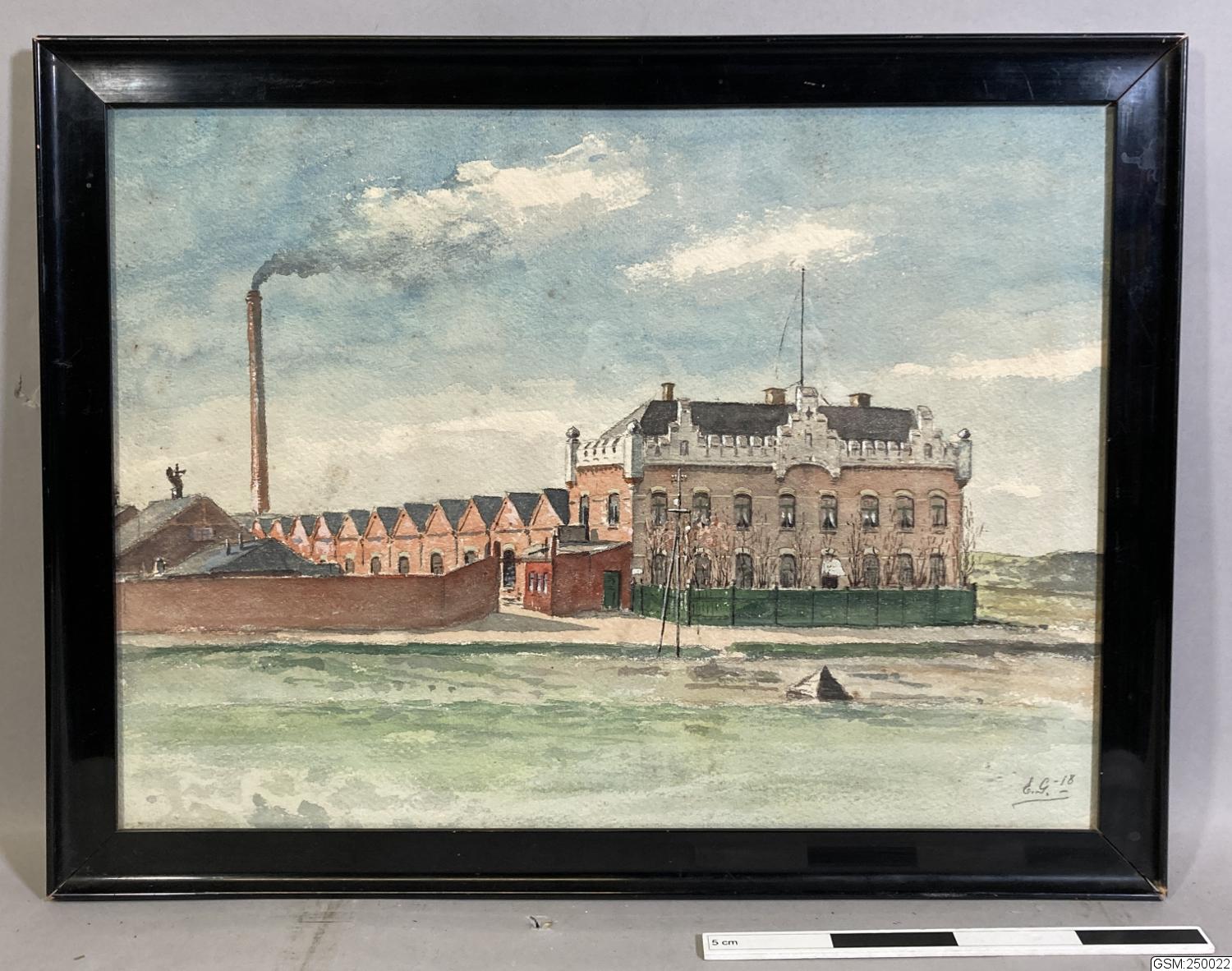 - Tavla inramad med glas föreställande E.A. Rosengrens Fabriker i Göteborg. Akvarell. Tavlan signerad E.G. -18.