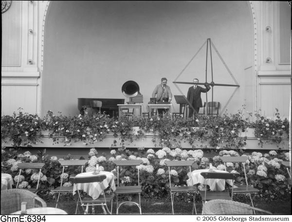 utställning; firmautställning*; scen; uteservering; radioapparat; ljudanläggning; antenn; blomrabatt; växt; stol; bord; man; exteriör; dag; vår; sommar; höst