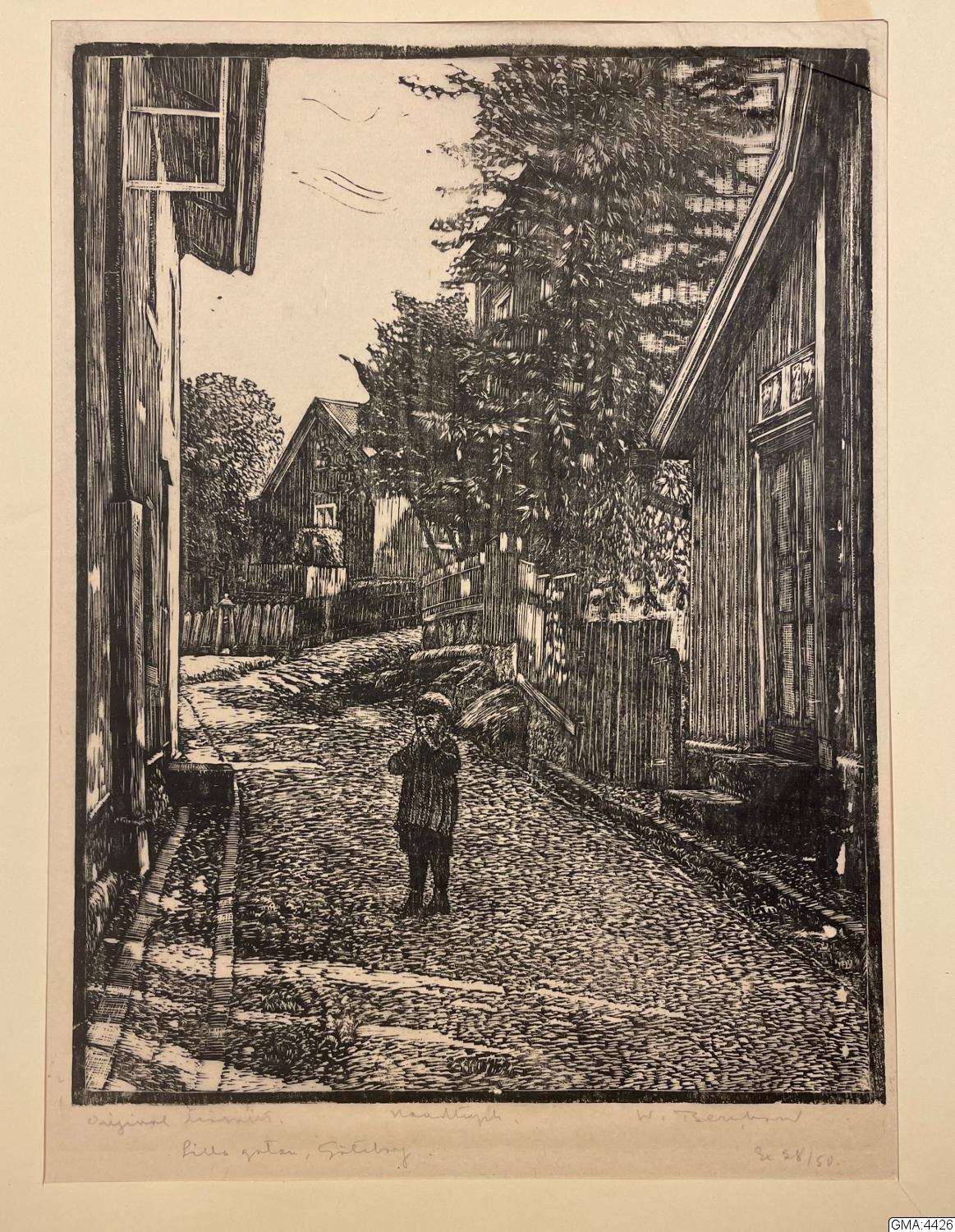 - Motiv från Lilla gatan. Träsnitt av w. Bernhard. (För ytterligare upplysning, se GMA:4096, under Beskrivning.)