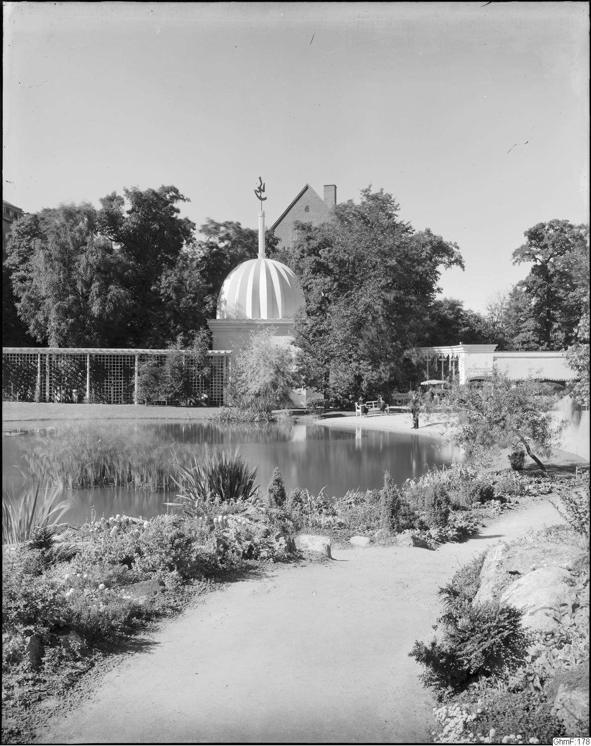 - Utställningsområdet vid Näckrosdammen med Bengtas café som skymtar till höger.