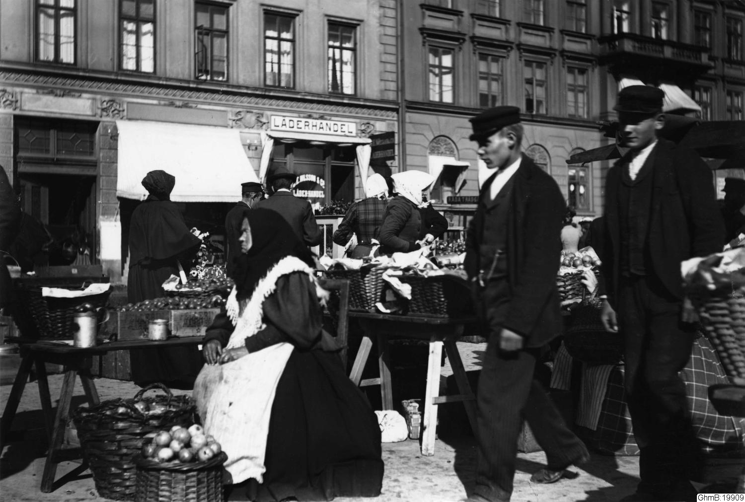 Svartvitt foto, från Grönsakstorget