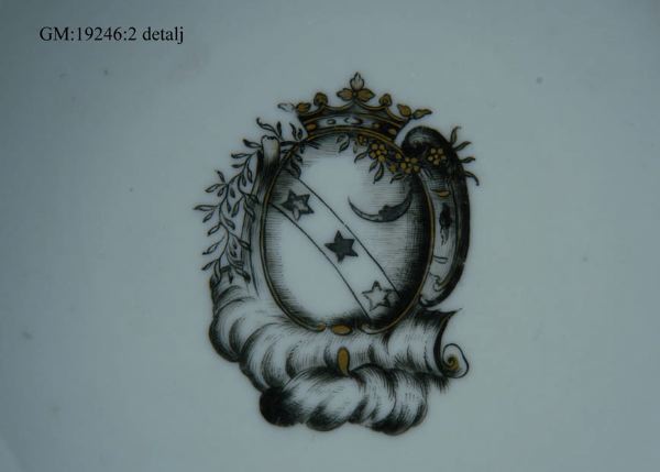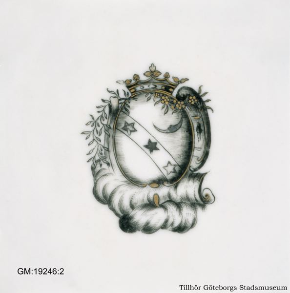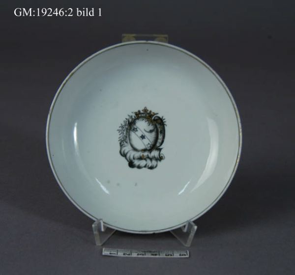 - Initialerna BCS finns inte på faten utan återfinns på kopparna i servisen.