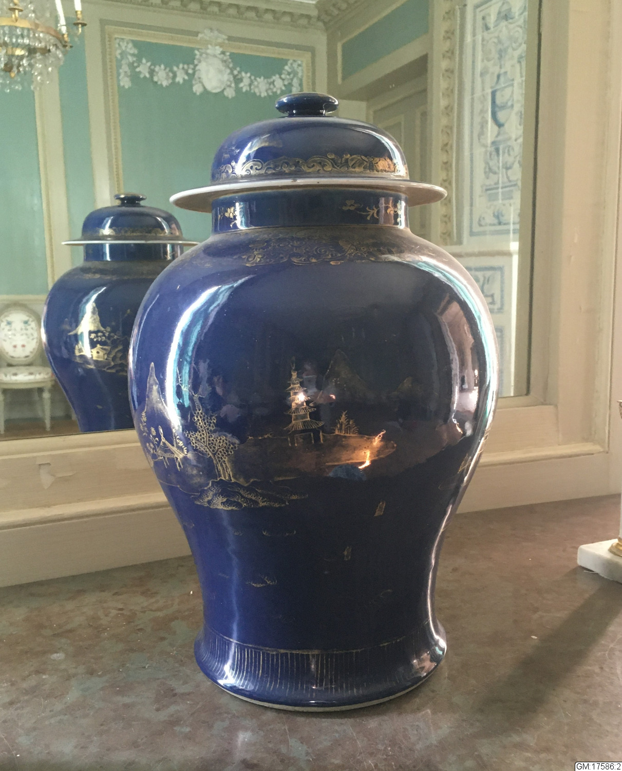 urna med lock, ostindiskt porslin, blått o guld