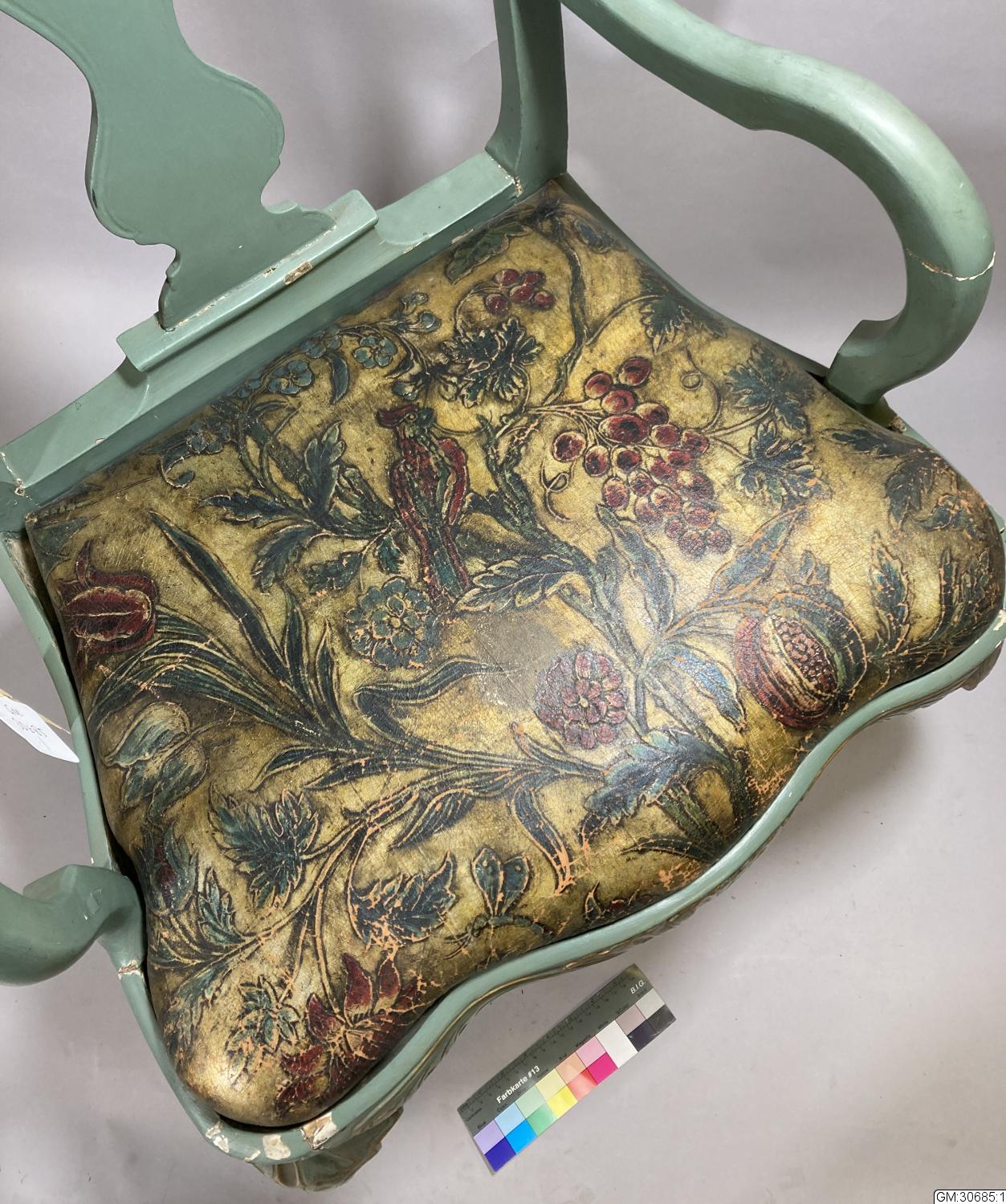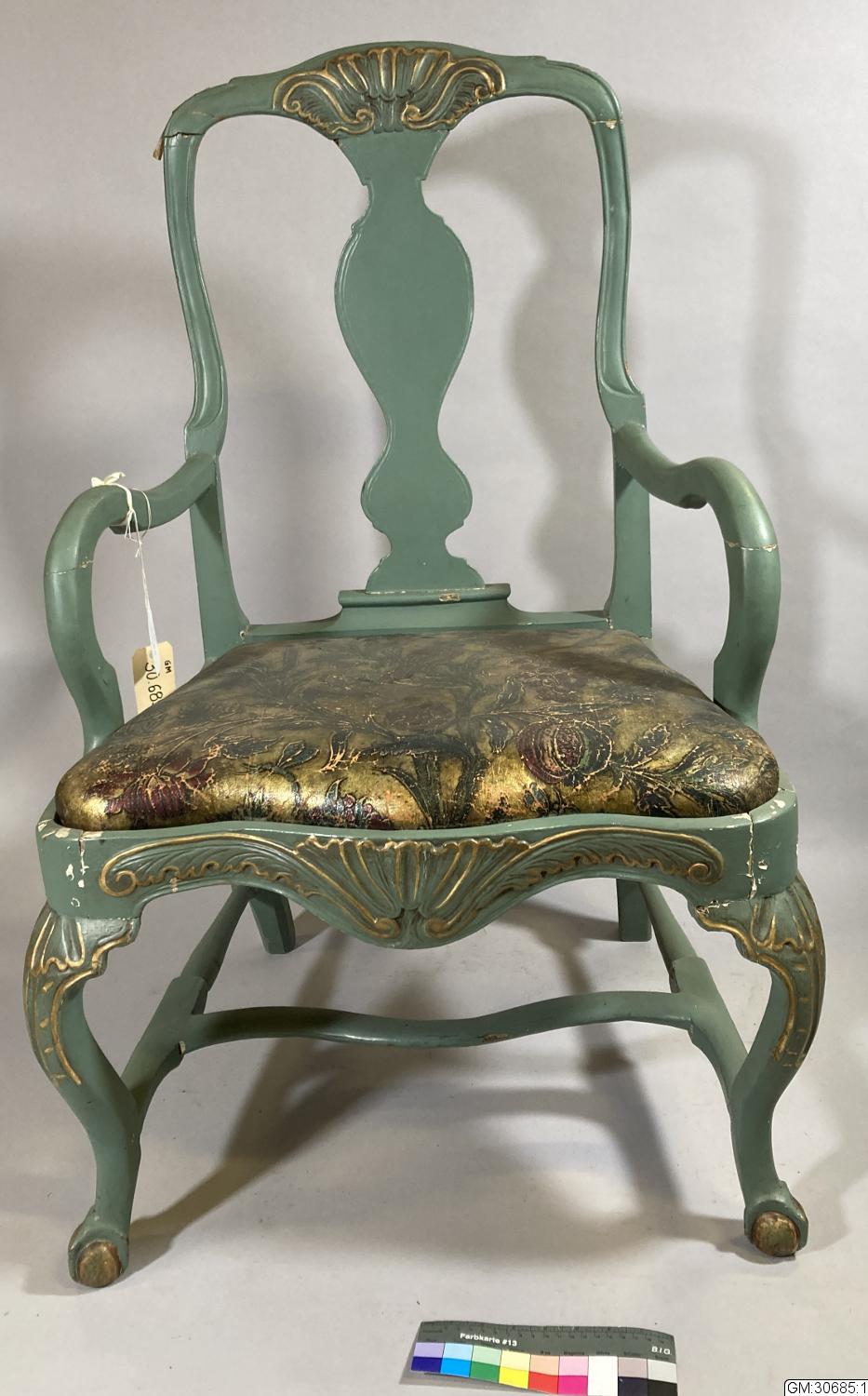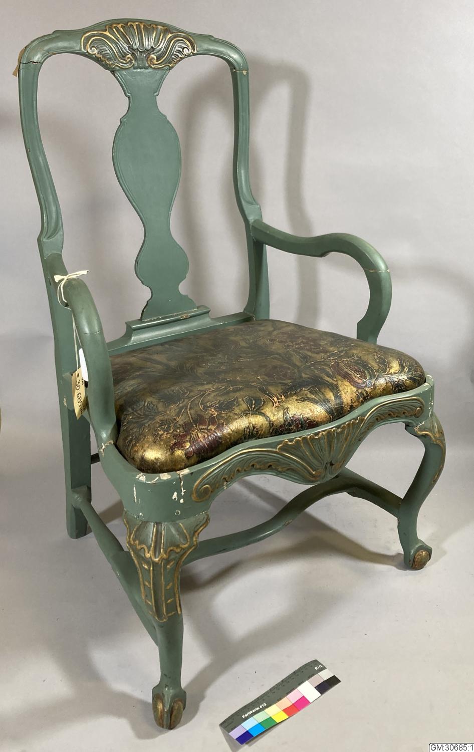 - Länstol med gyllenläderklädd sits