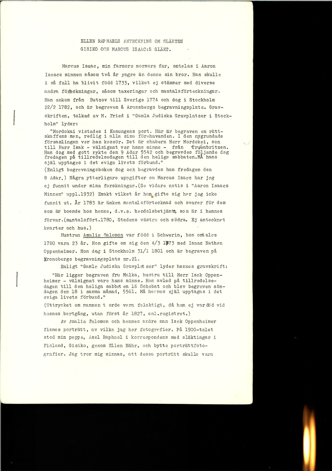 Ellen Raphaels anteckningar om släkten Gisiko och Marcus Isaac:s släkt