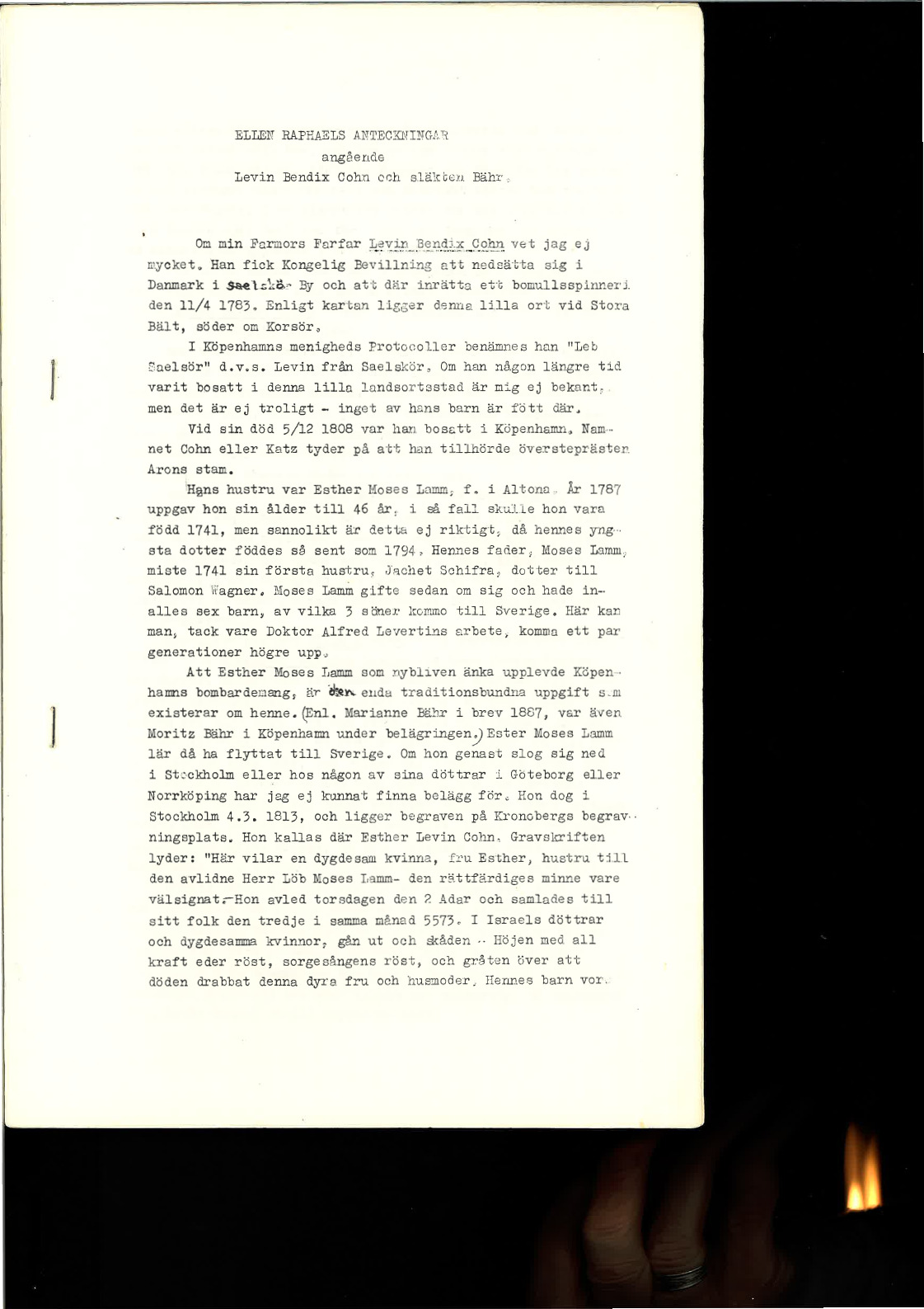 Ellen Raphaels anteckningar angående Levin Bendix Cohn och släkten Bähr