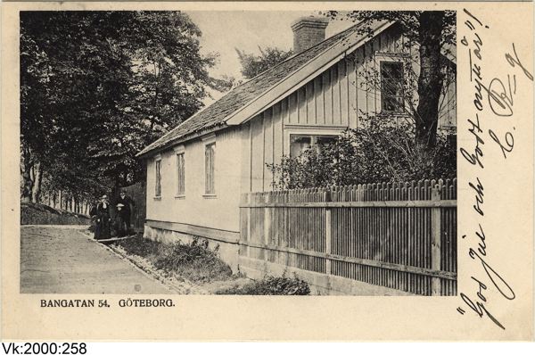 Adressangivelsen "Bangatan 54" kom sedermera att flyttas; den ursprungliga här avbildade adressen var belägen strax söder om dagens Bangatan 62.