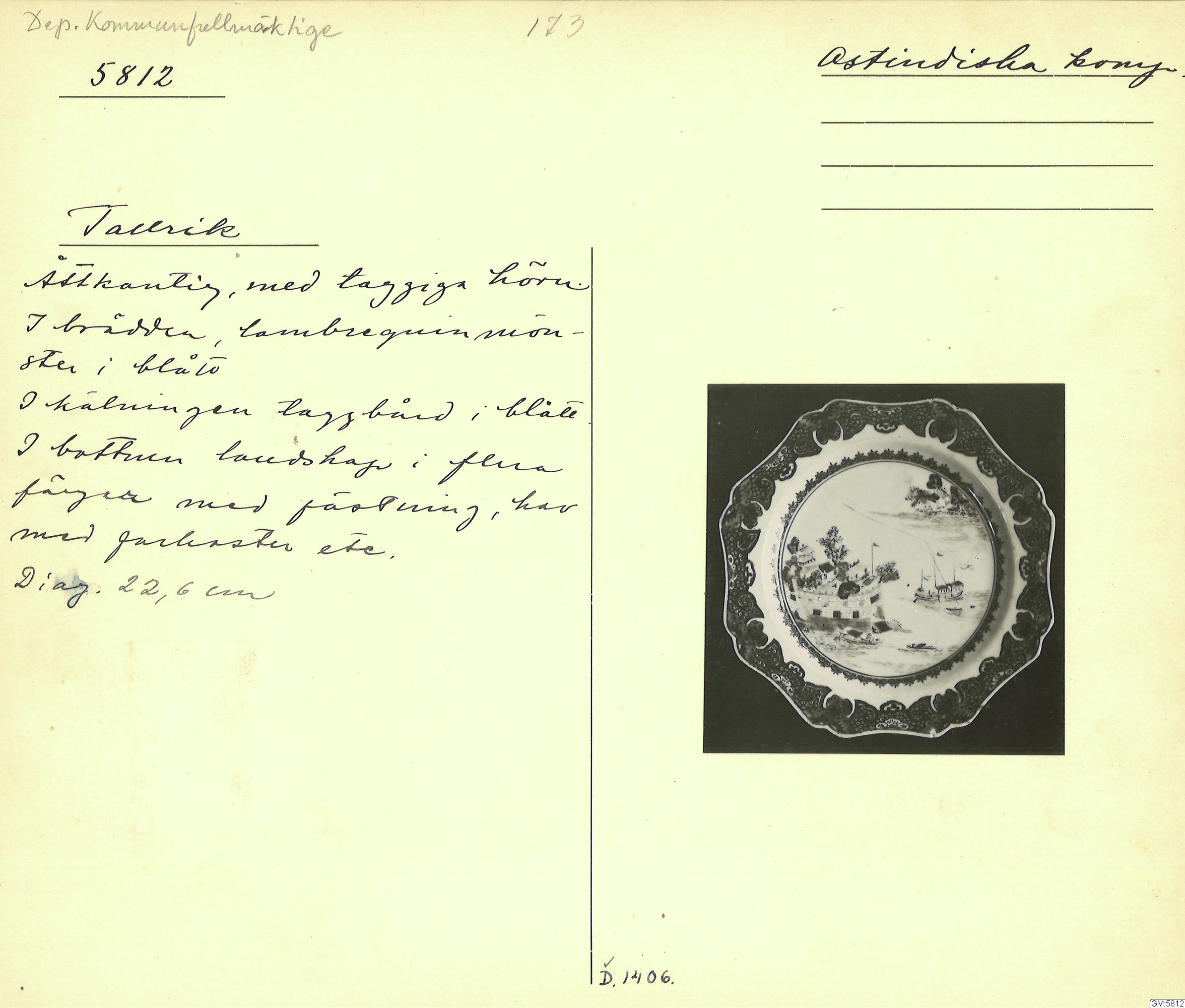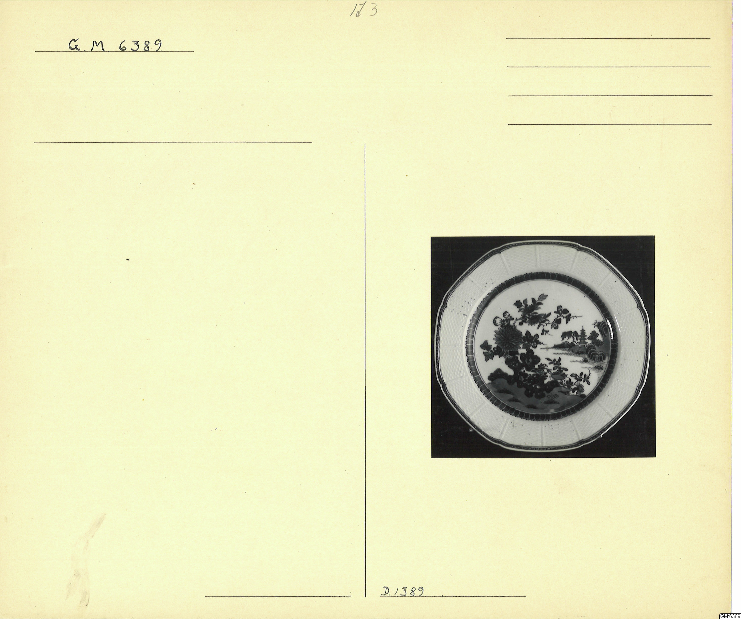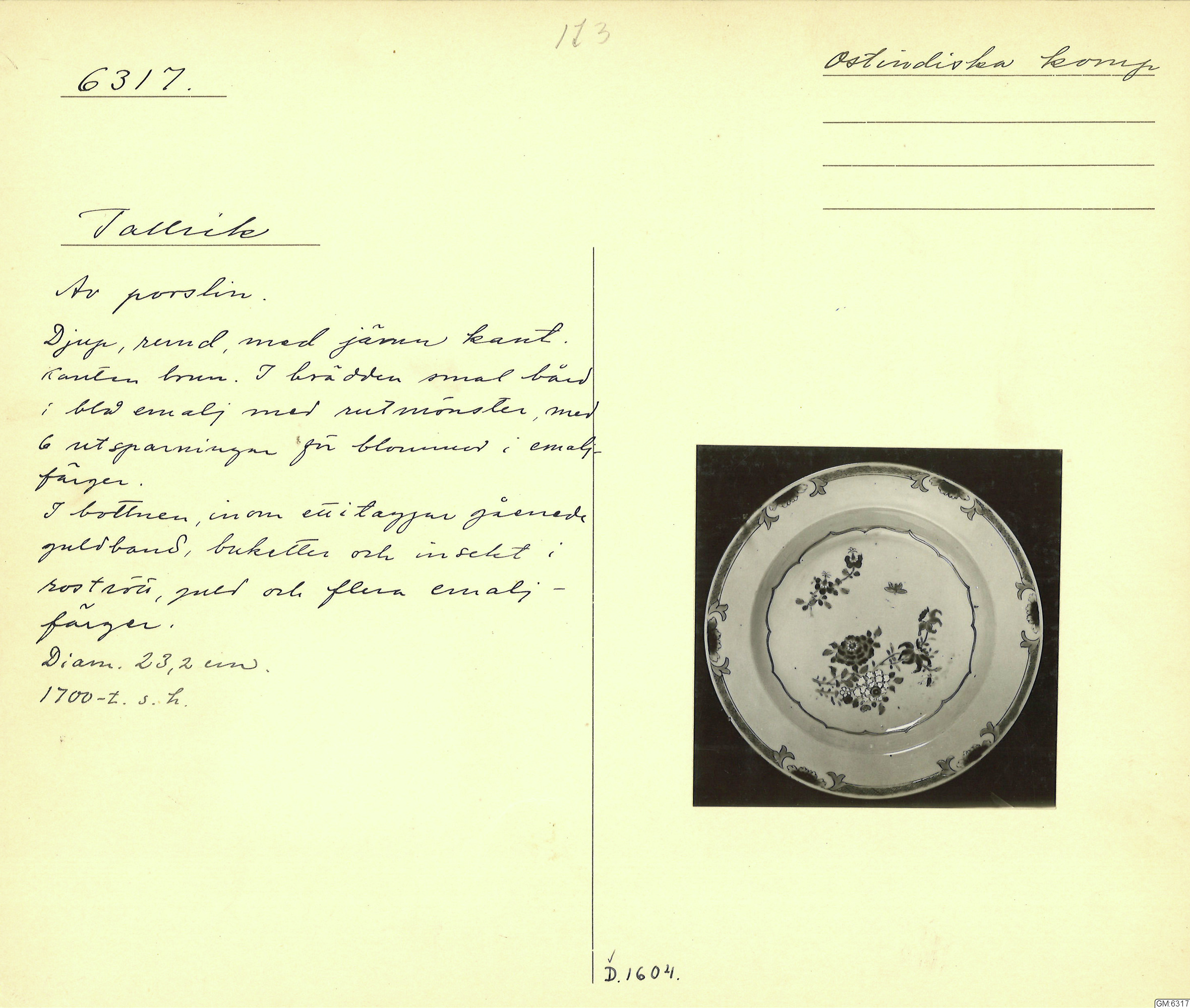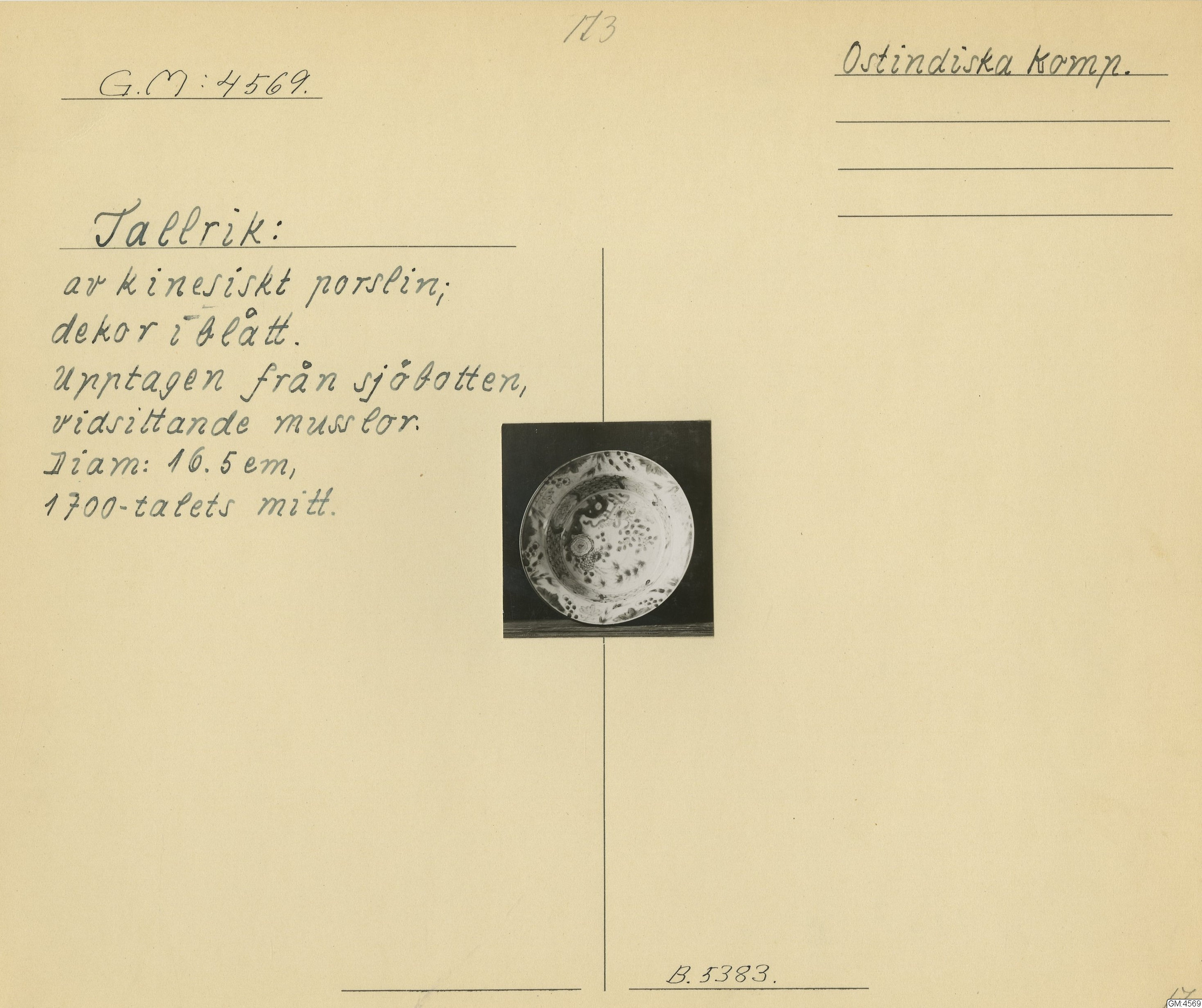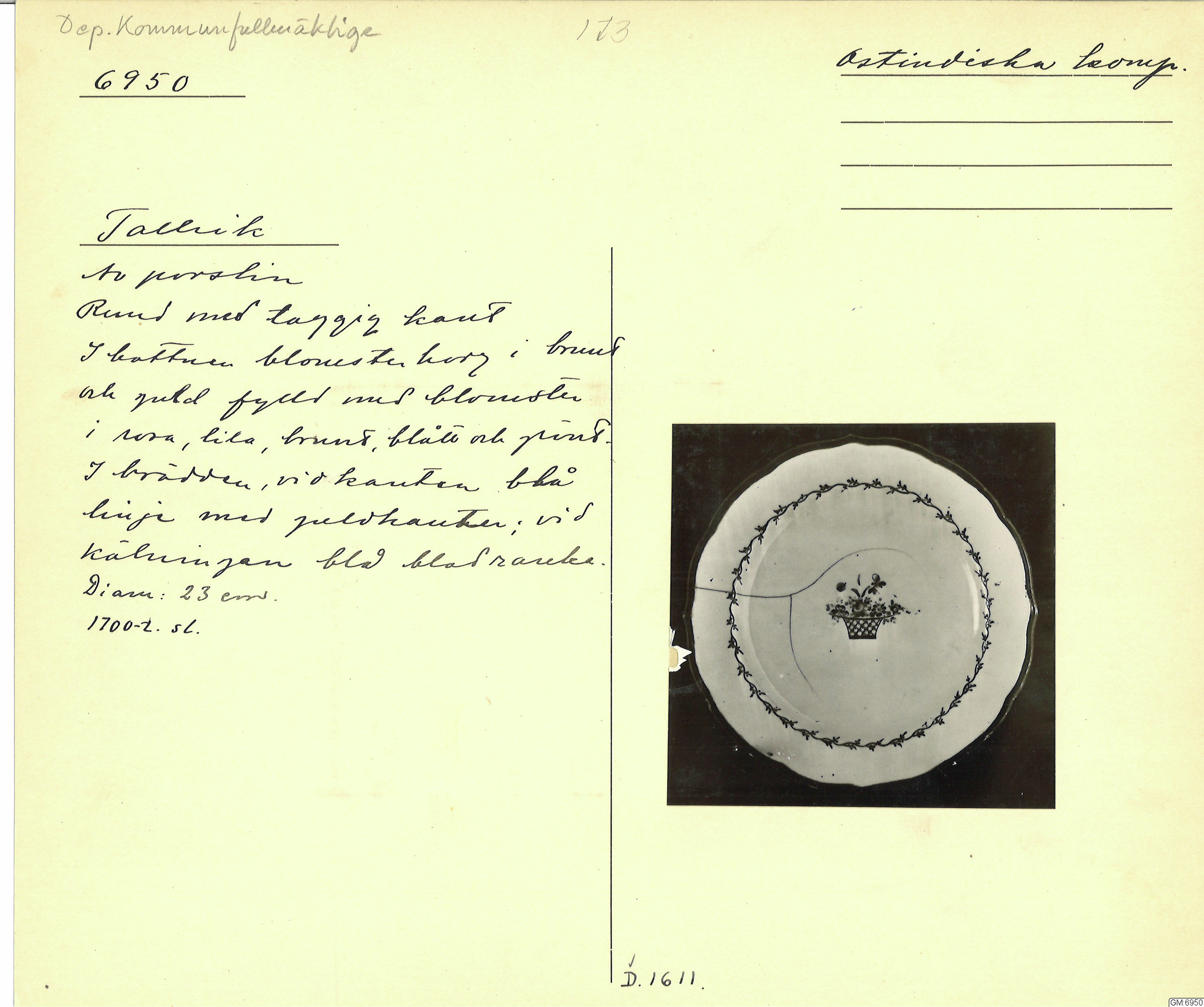 GM katalogkort 173. 18E Porslin Ostindiskt 3. Tallrikar 1