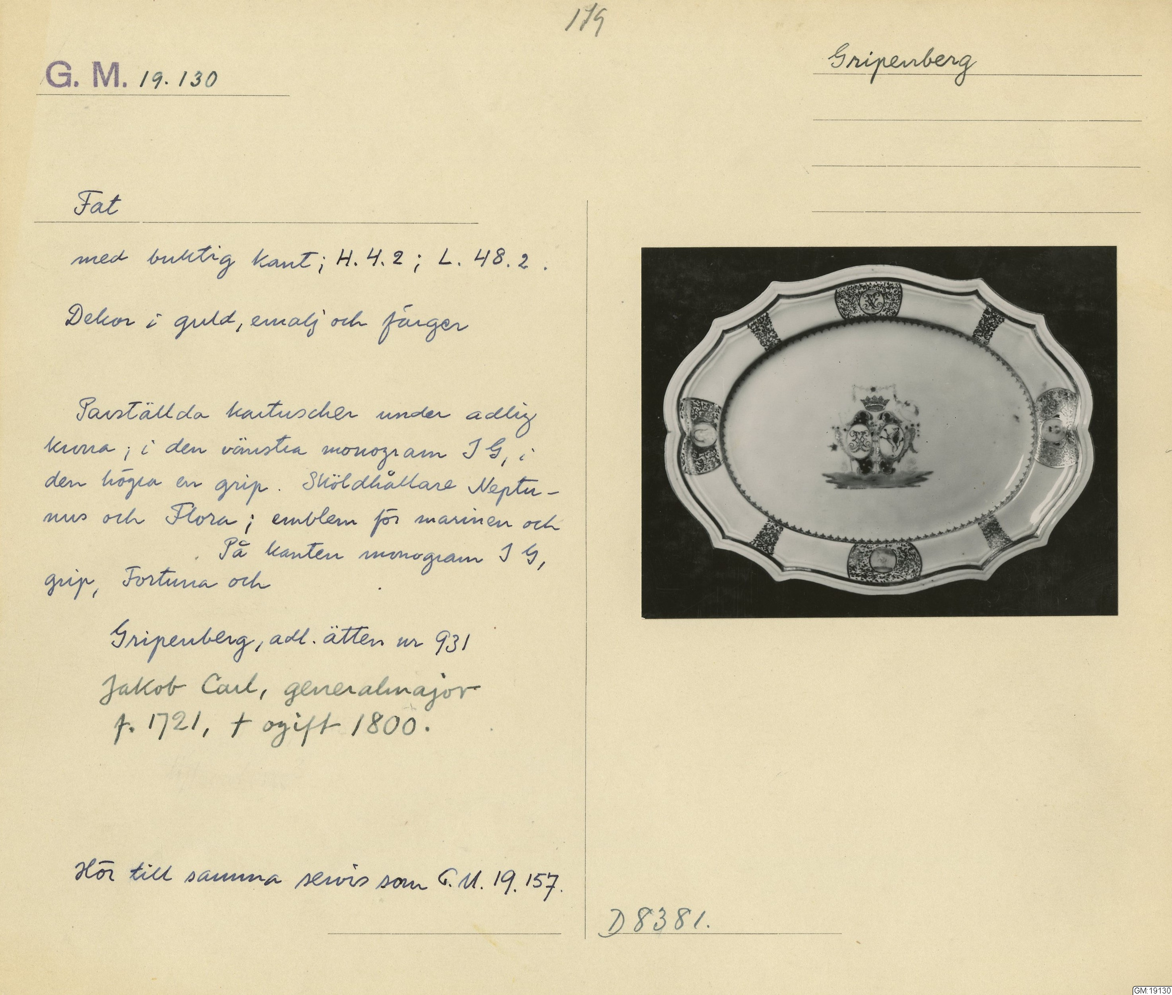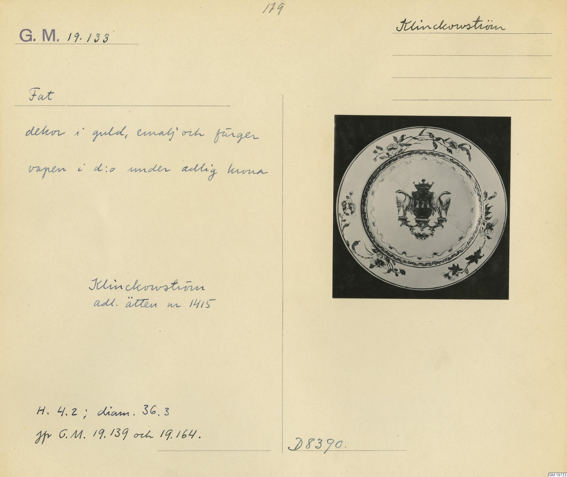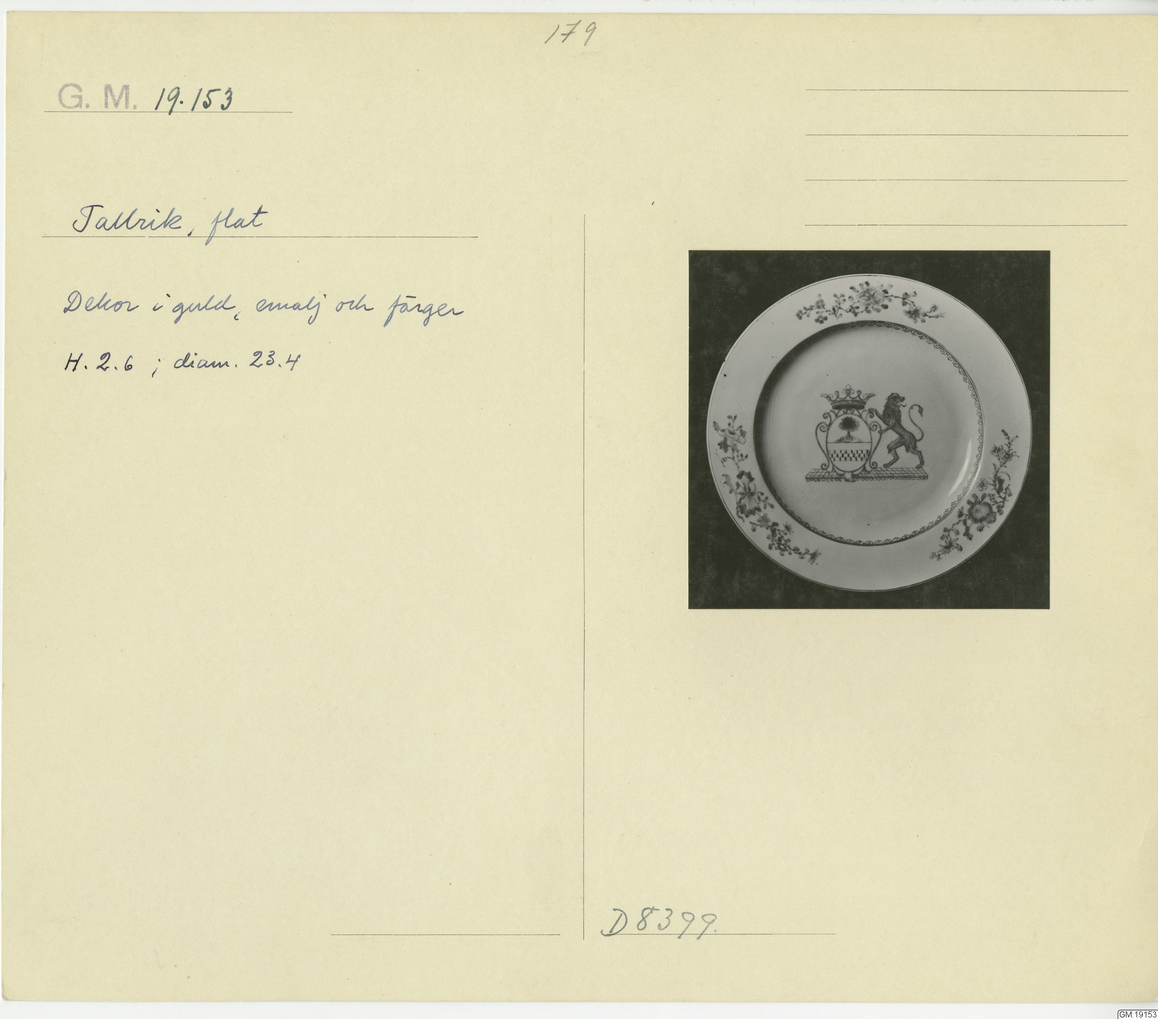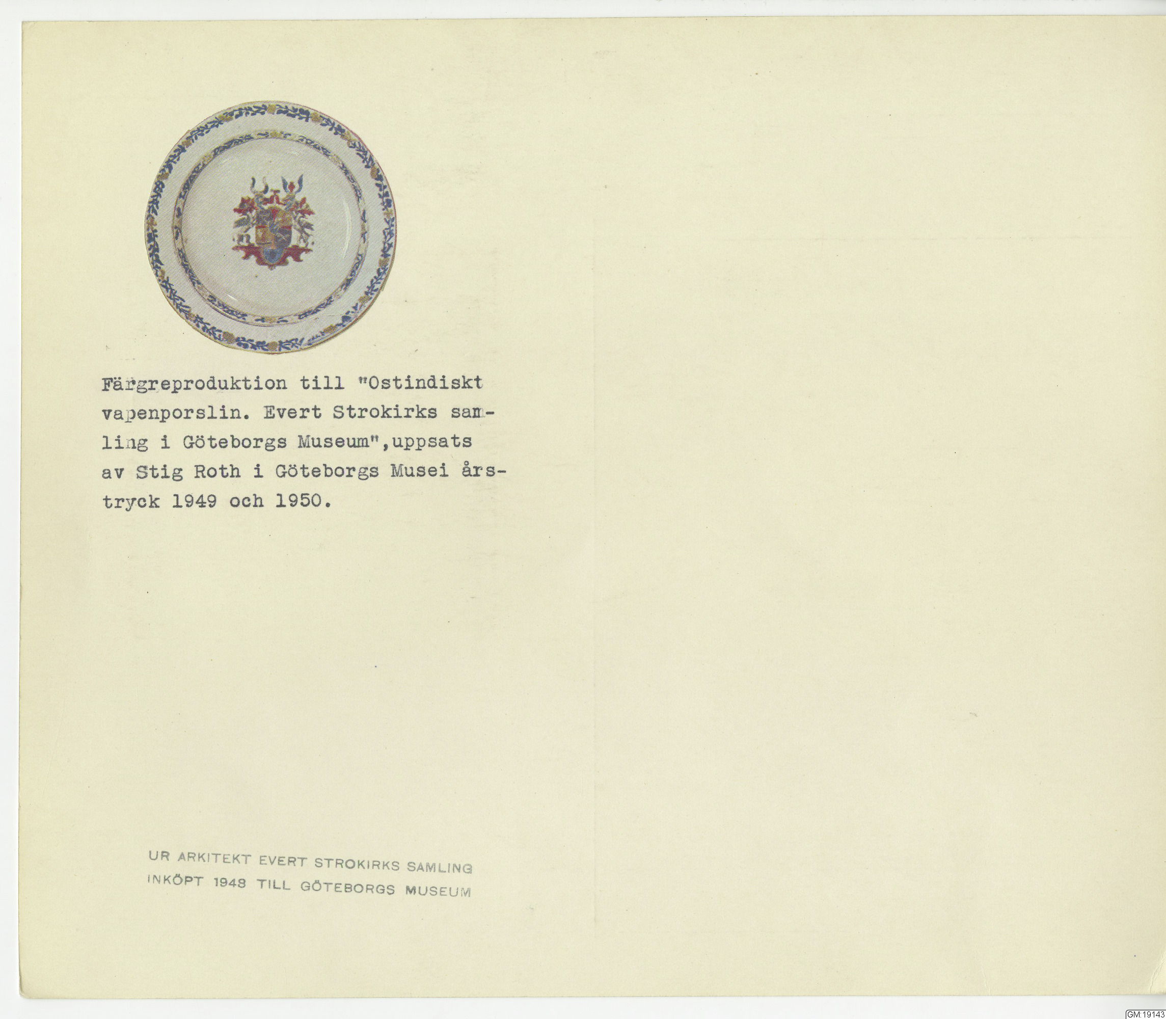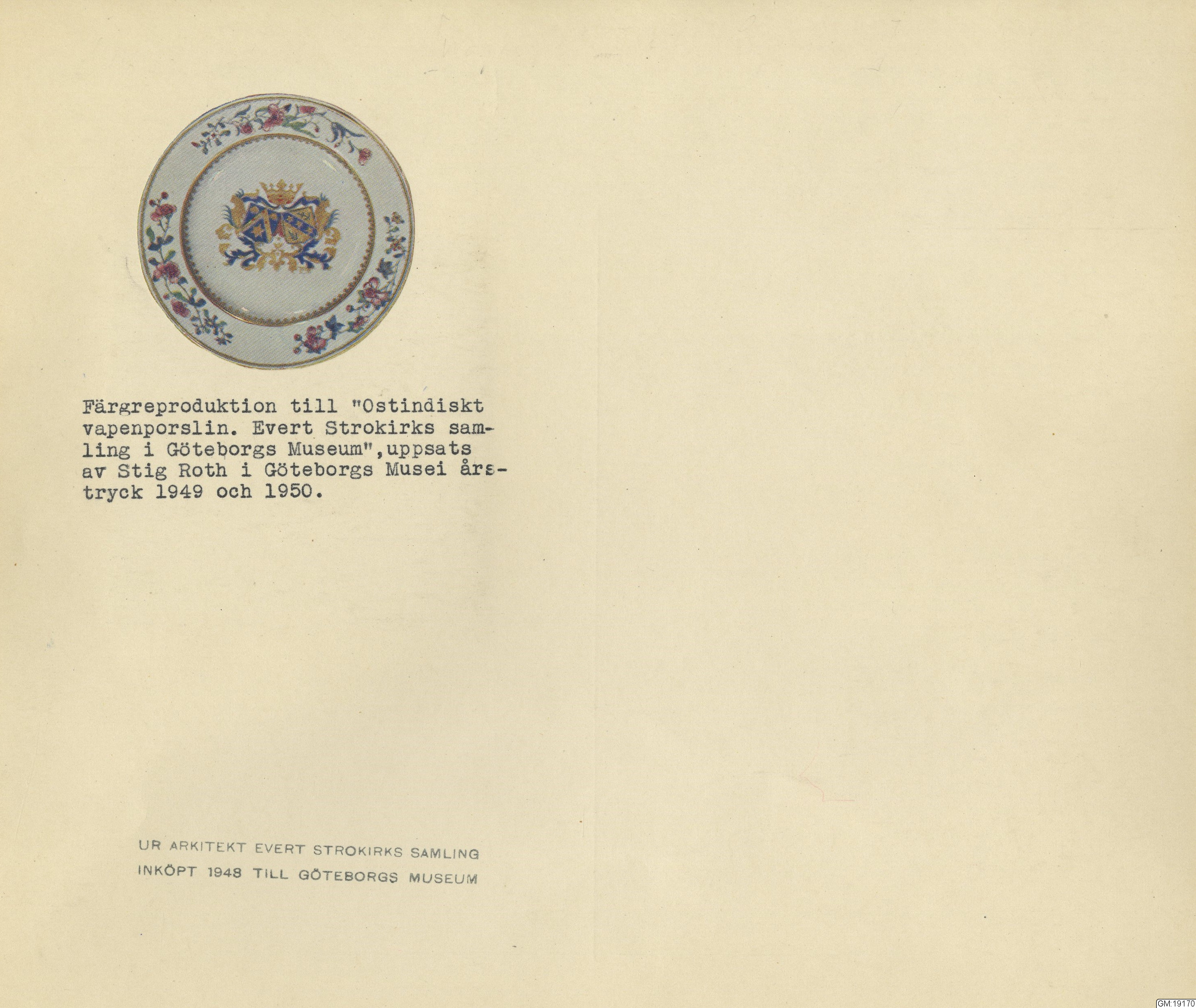 GM katalogkort 179. 18E Porslin Ostindiskt 9. Saml. Strokirk 1