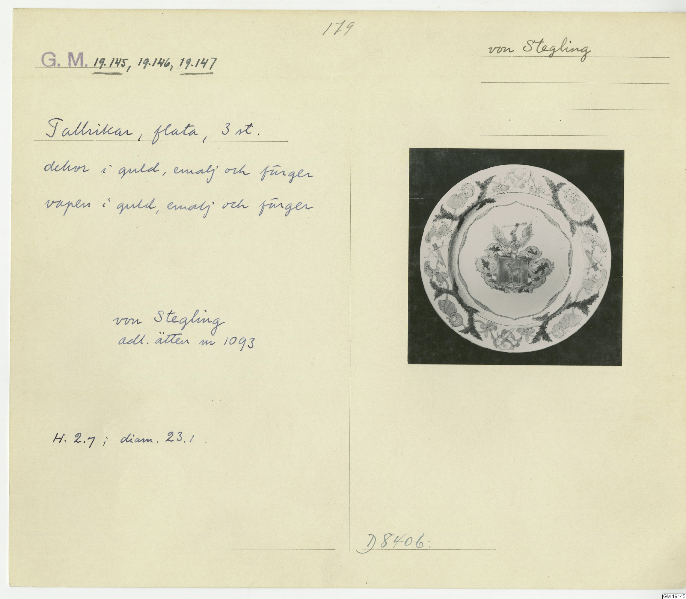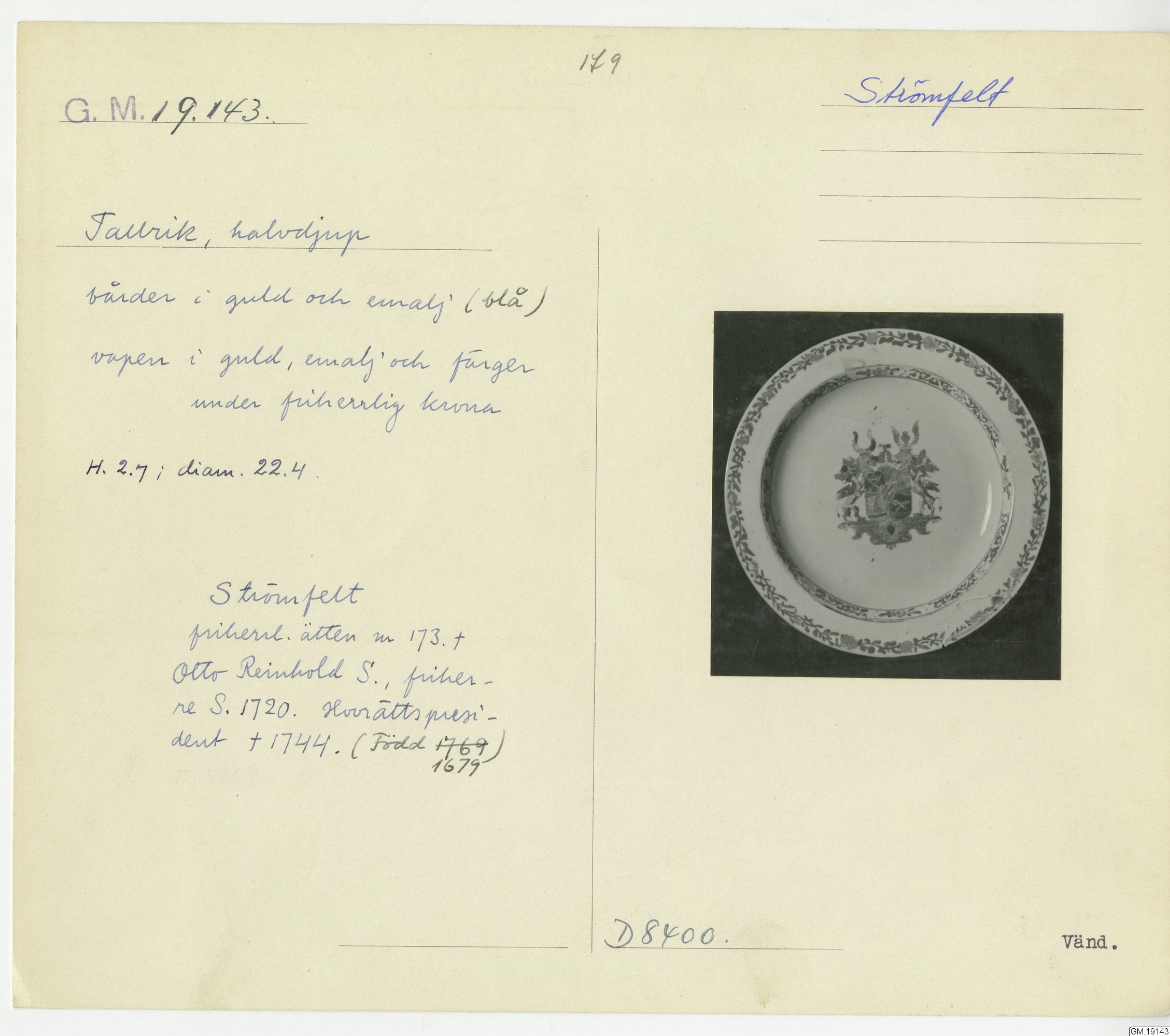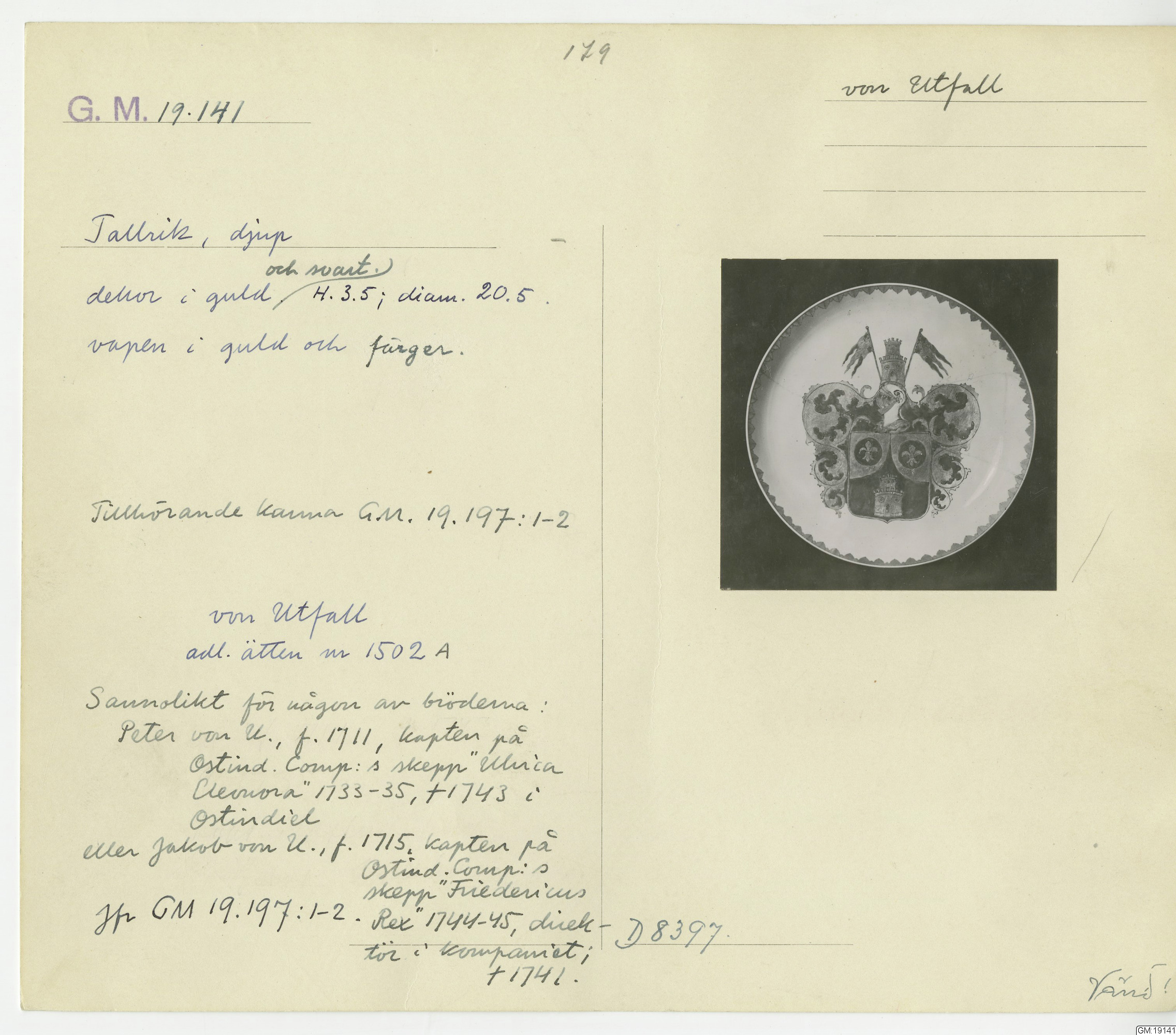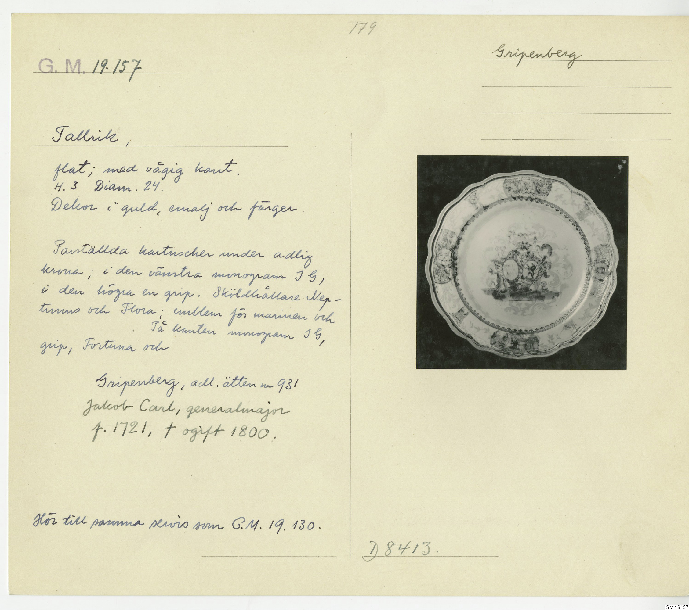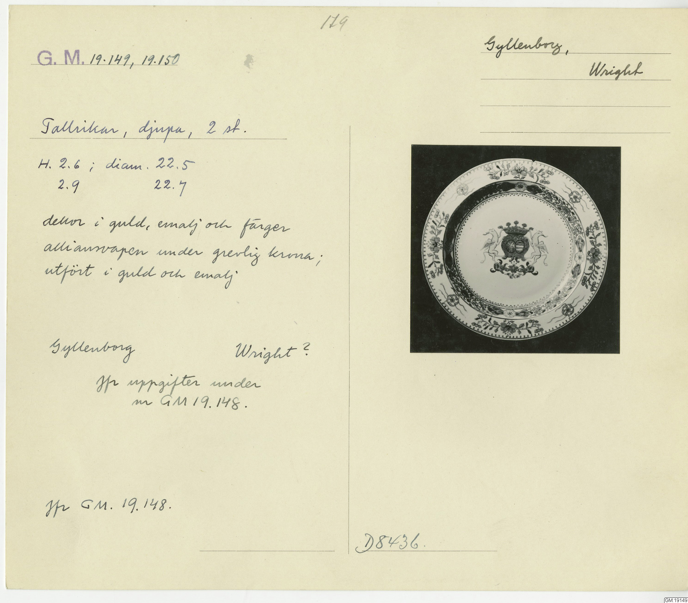 GM katalogkort 179. 18E Porslin Ostindiskt 9. Saml. Strokirk 1