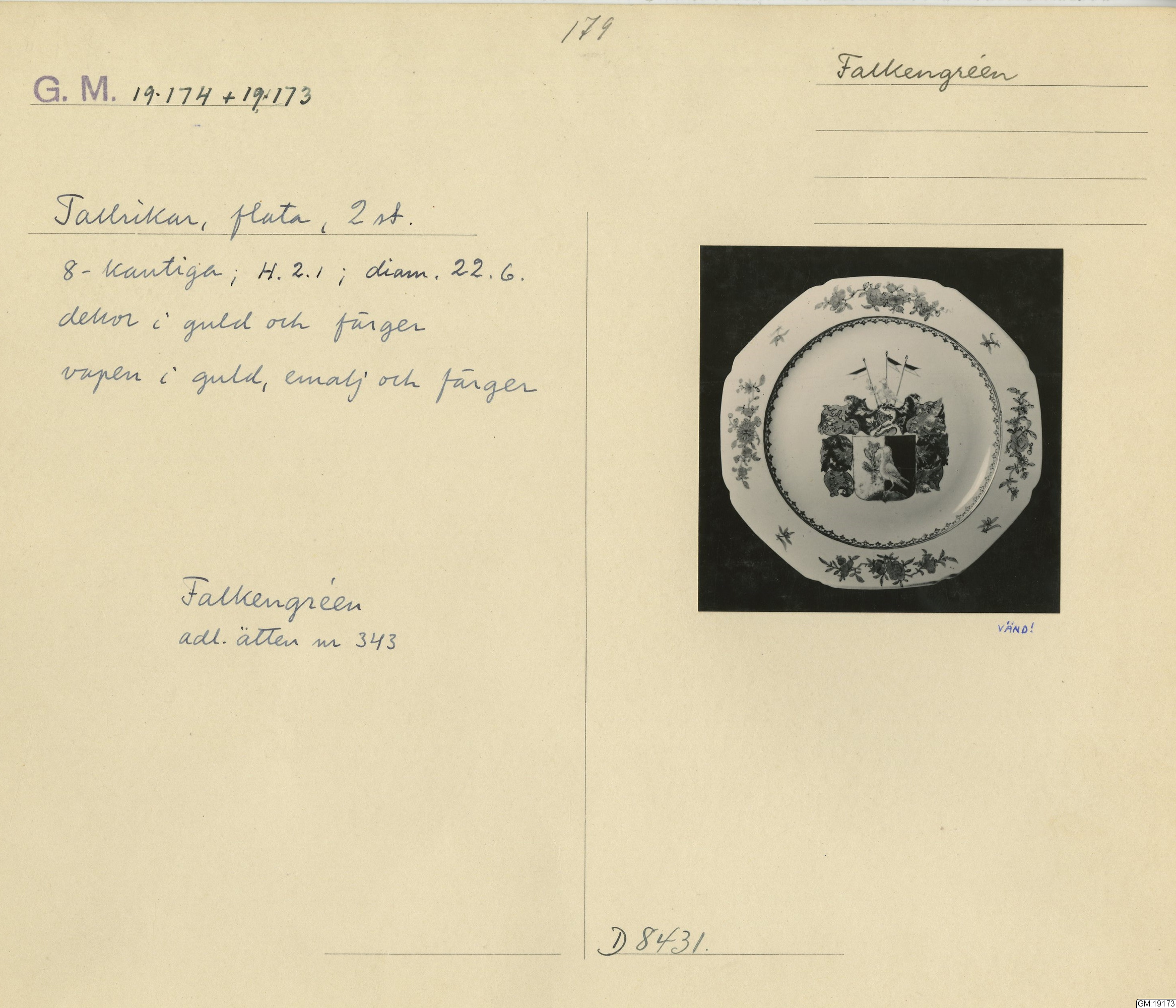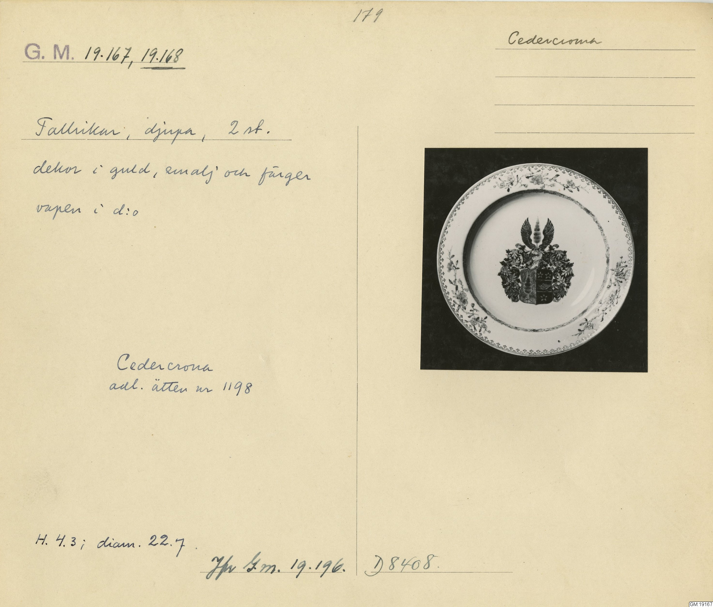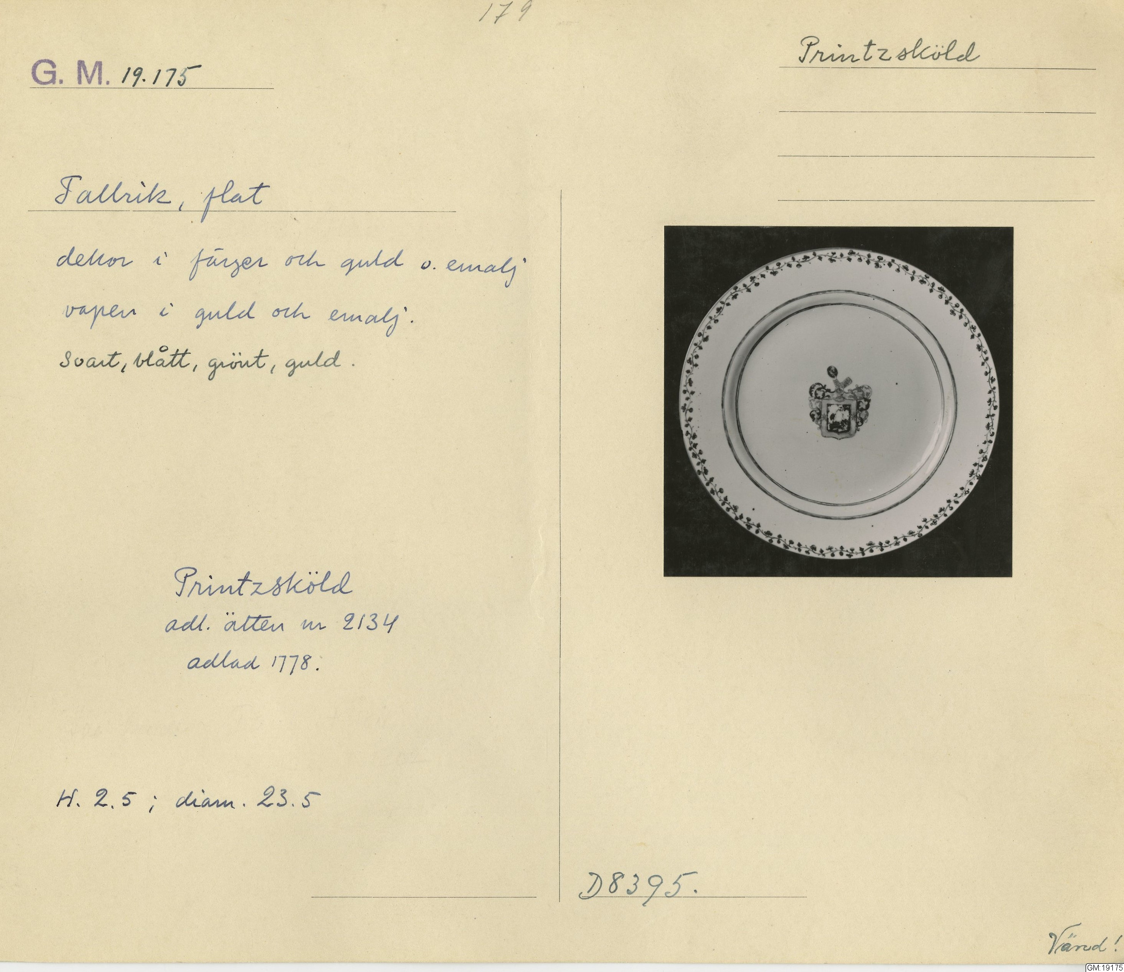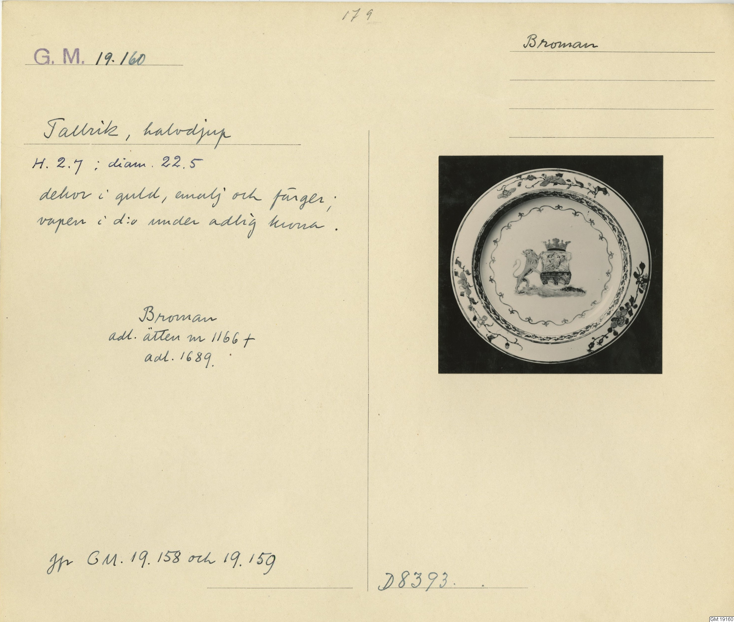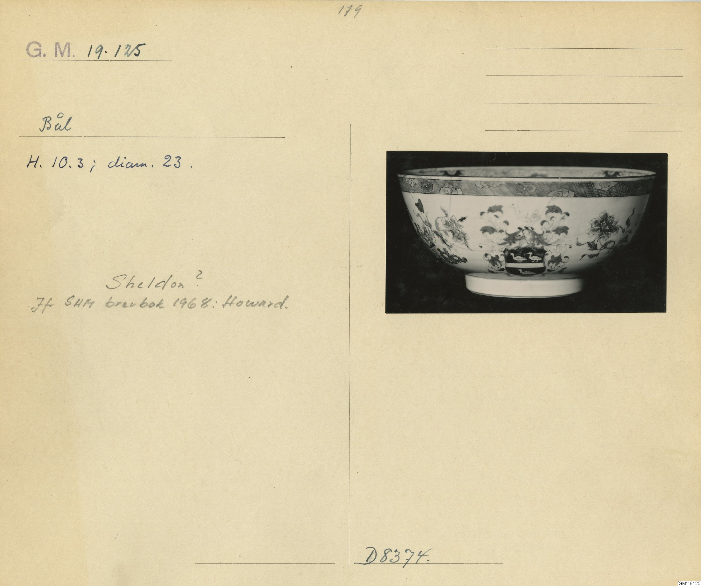 GM katalogkort 179. 18E Porslin Ostindiskt 9. Saml. Strokirk 1