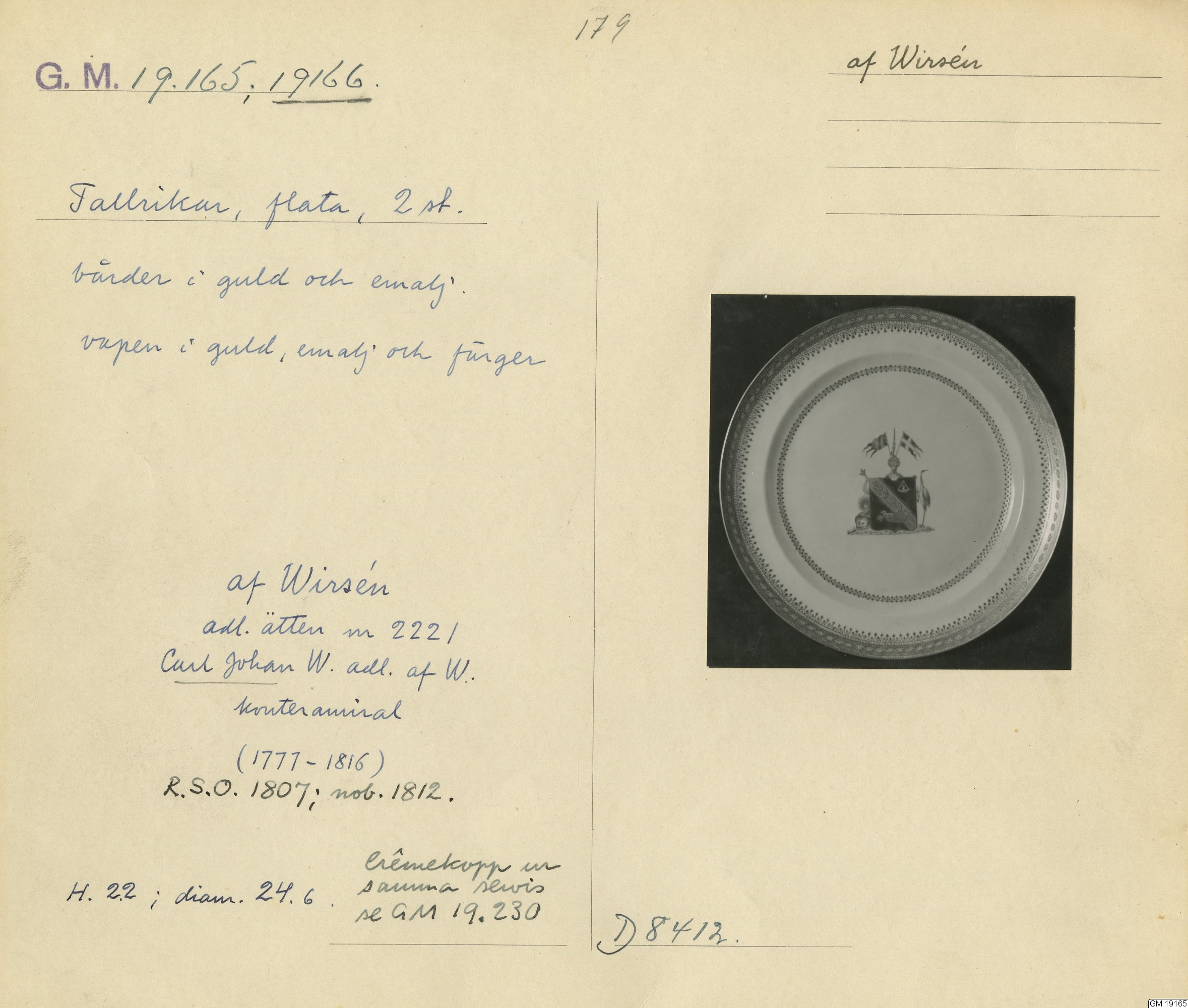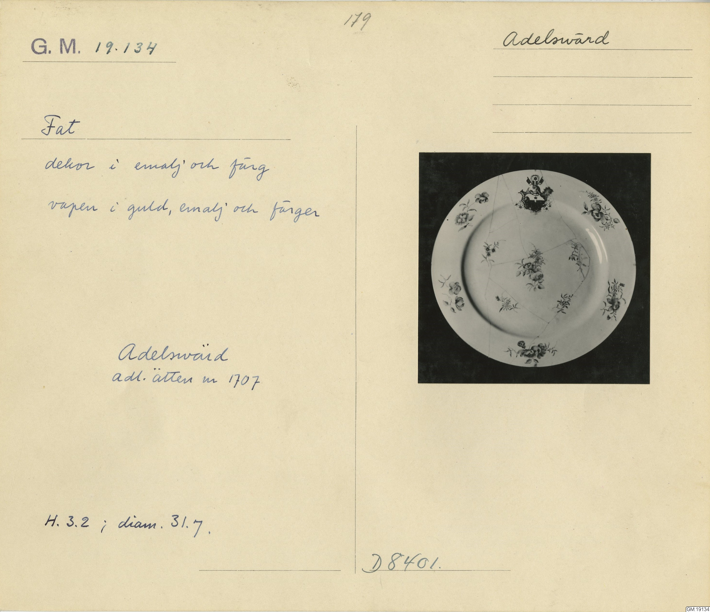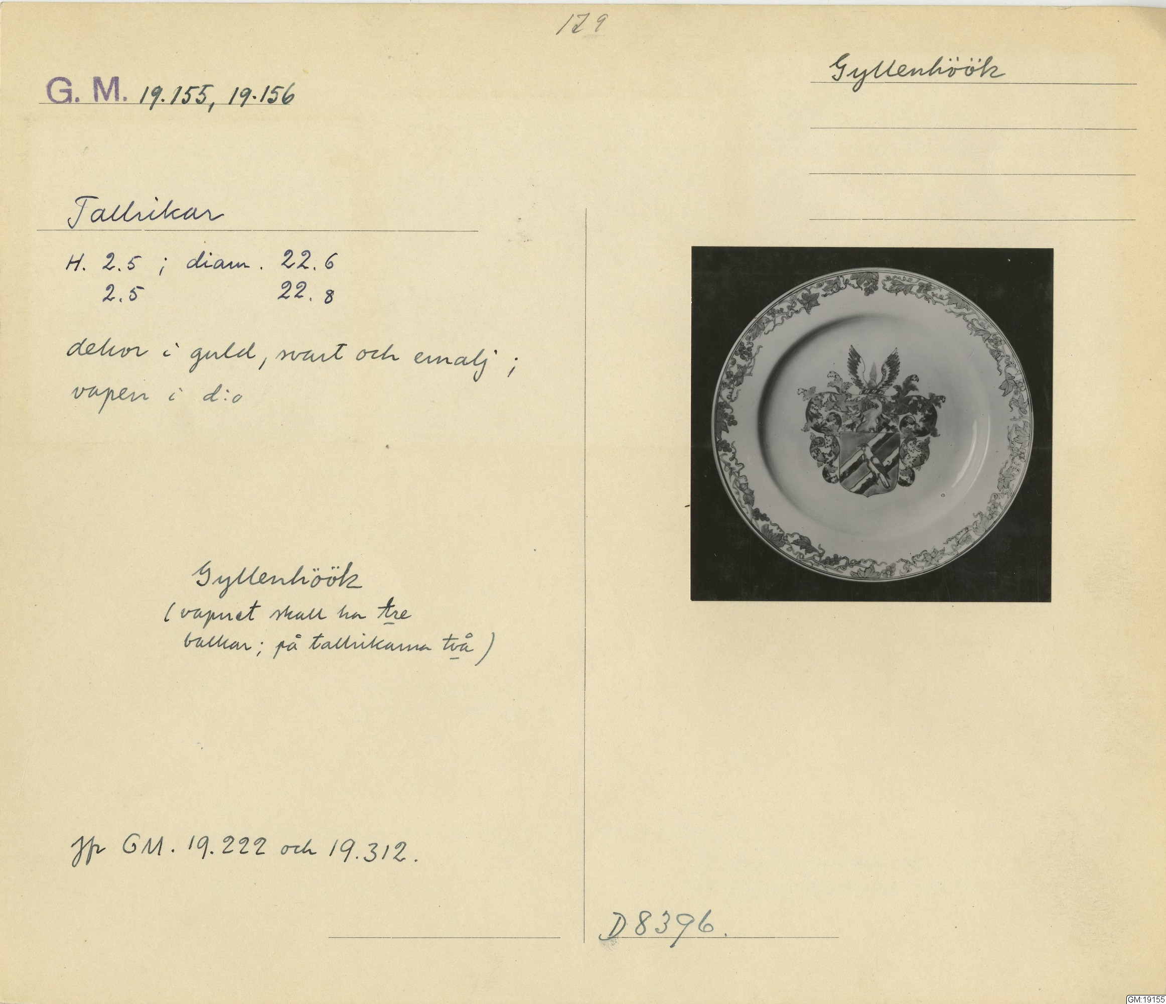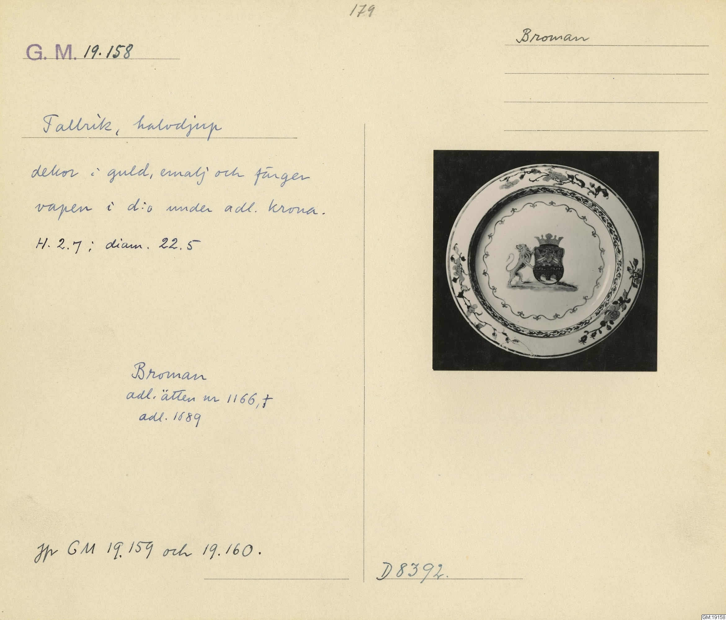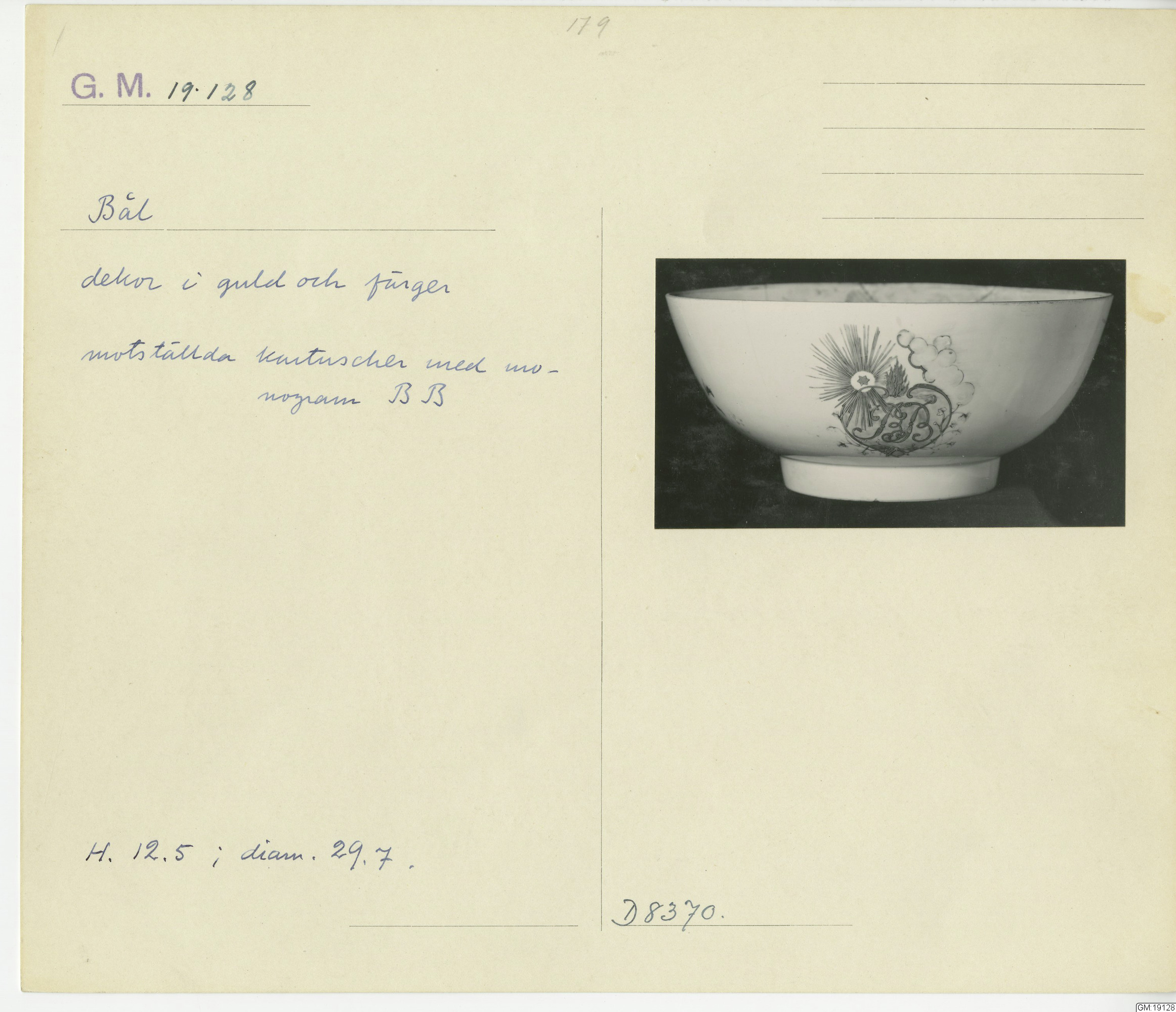 GM katalogkort 179. 18E Porslin Ostindiskt 9. Saml. Strokirk 1