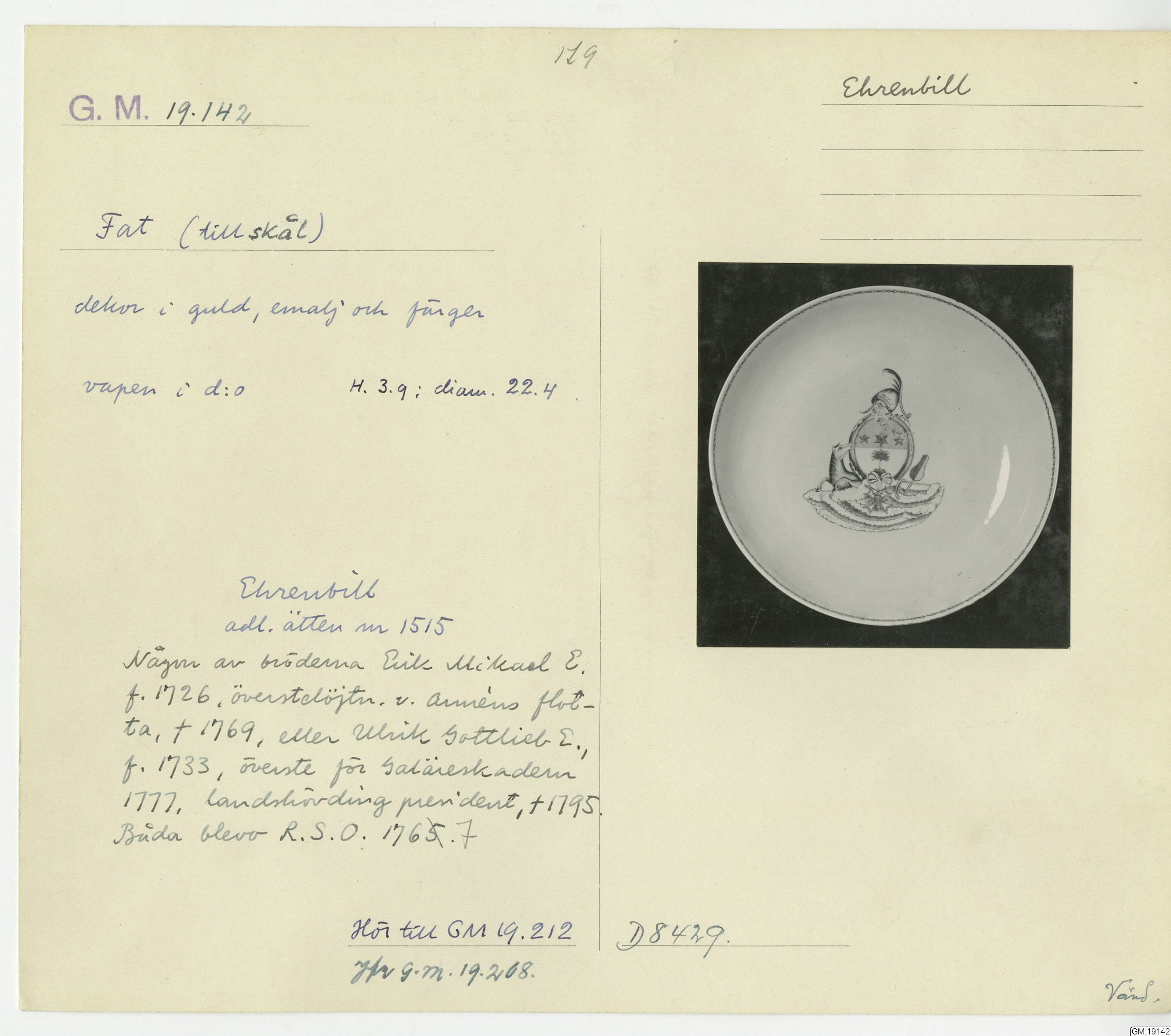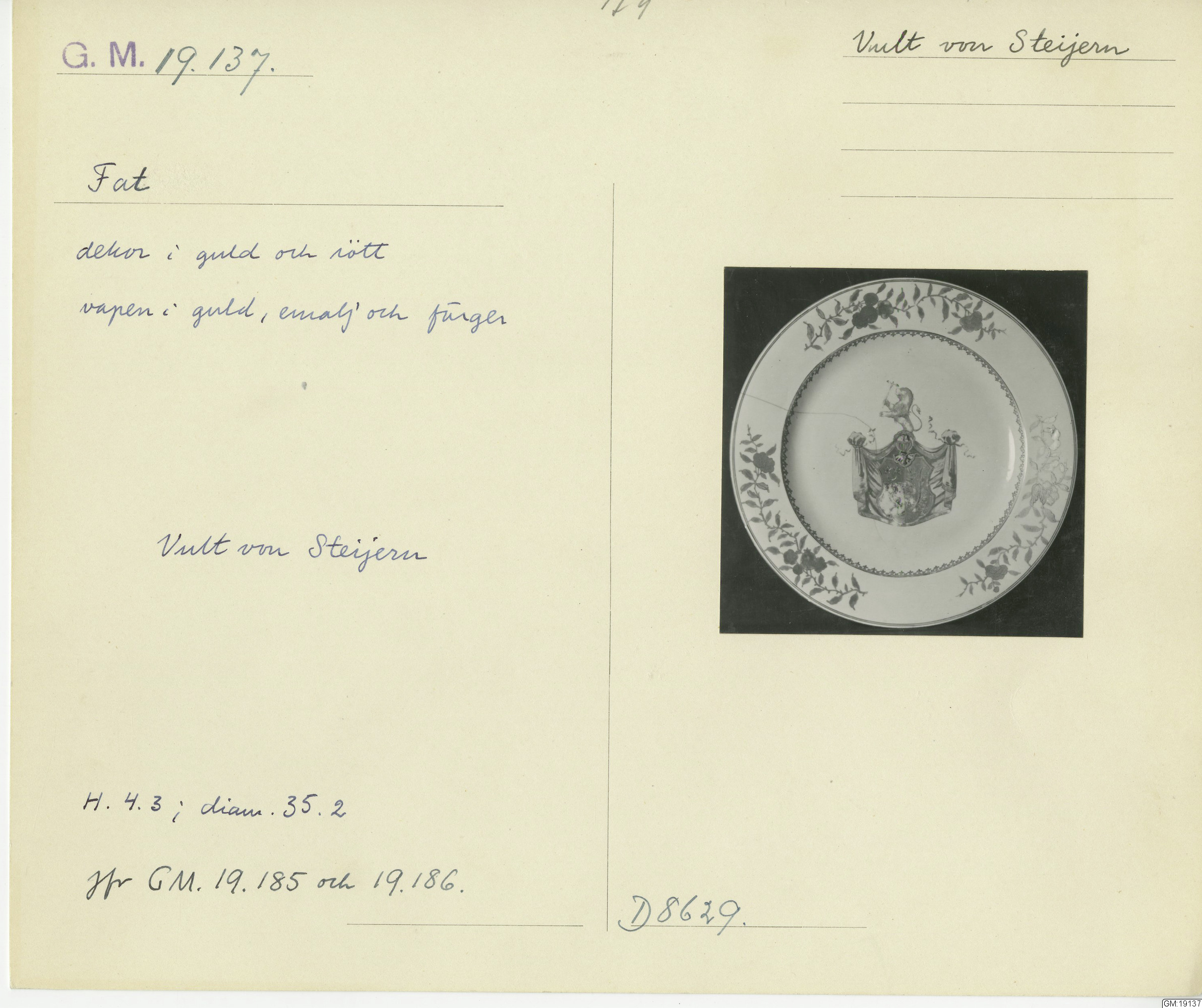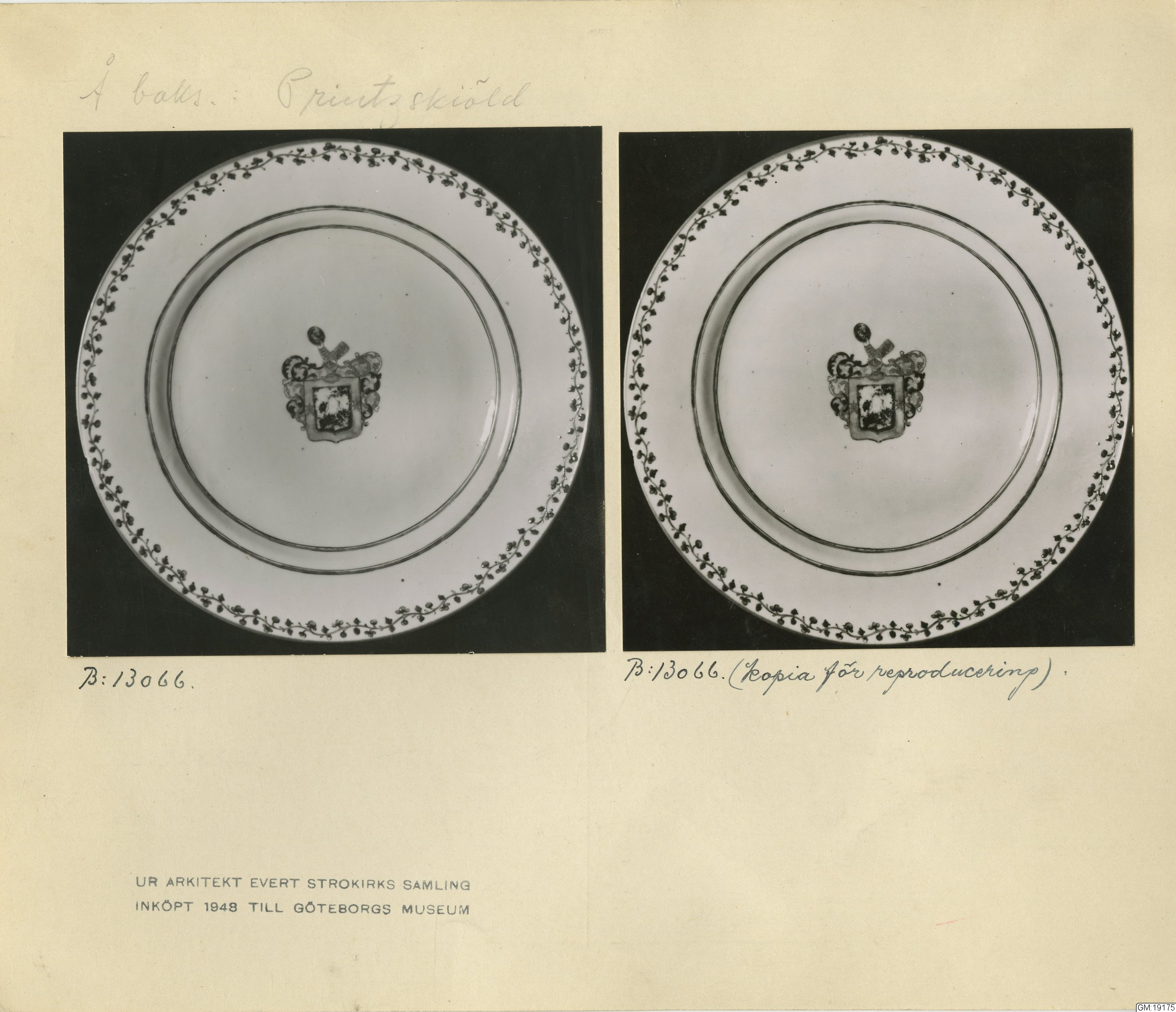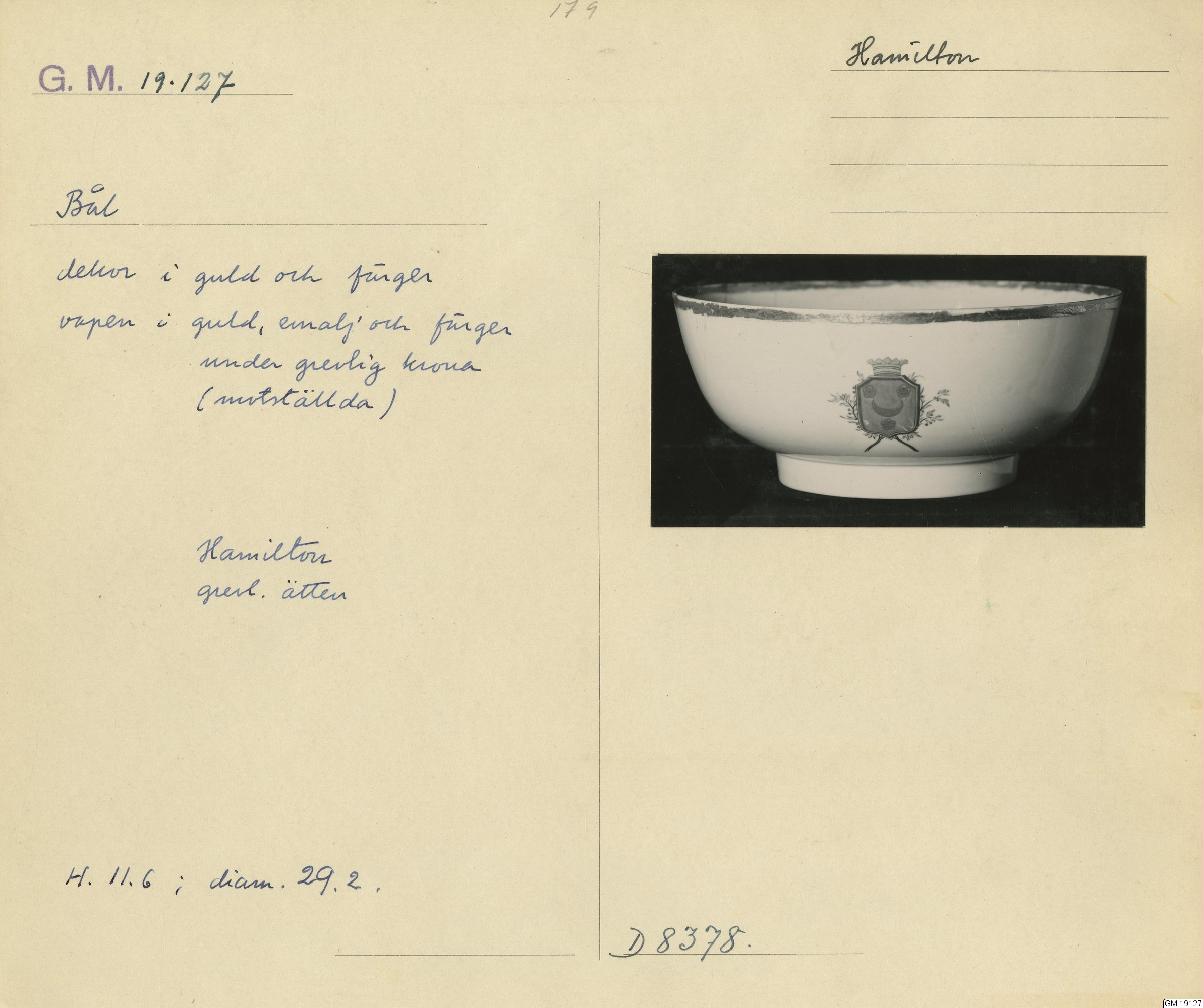 GM katalogkort 179. 18E Porslin Ostindiskt 9. Saml. Strokirk 1