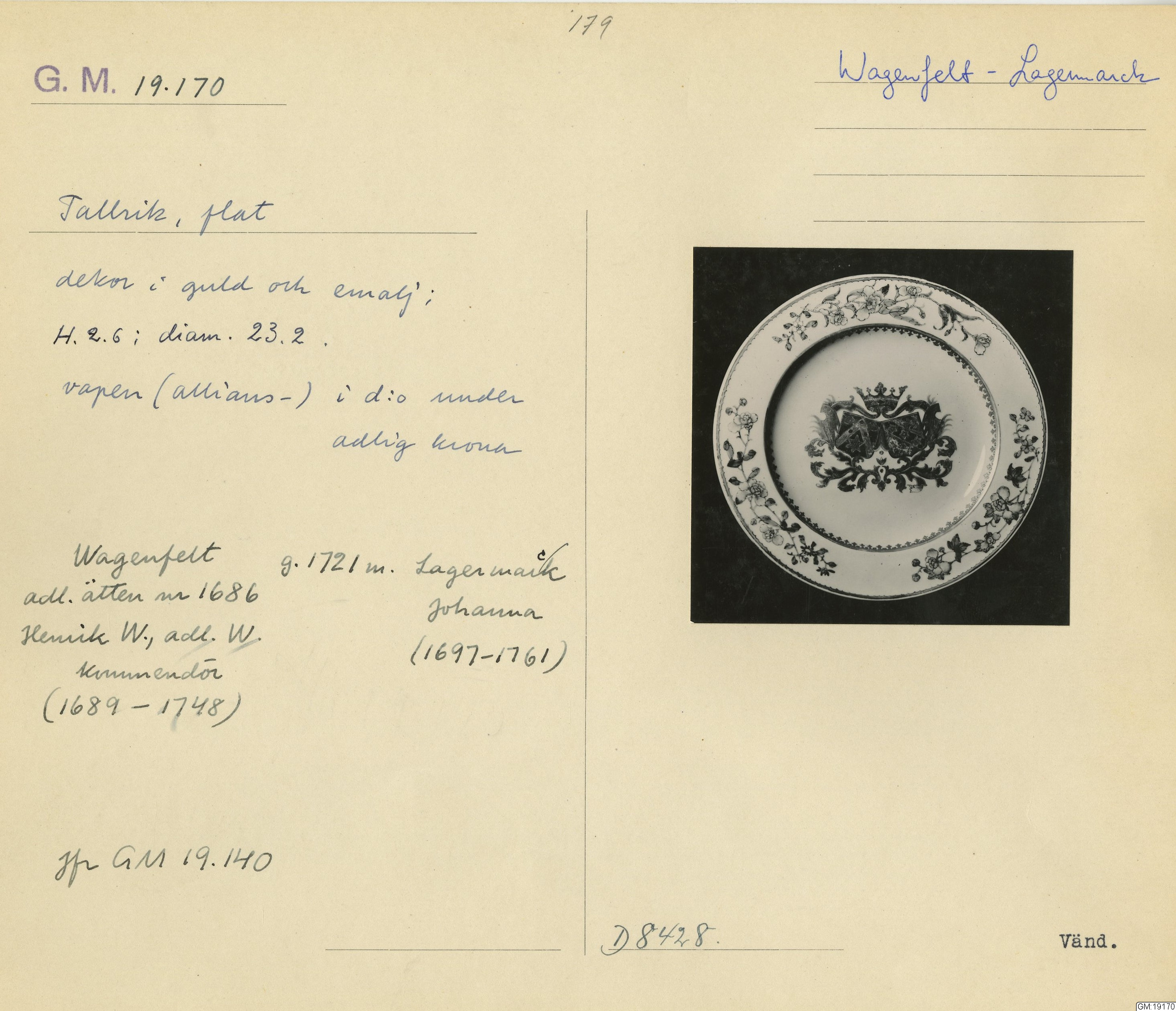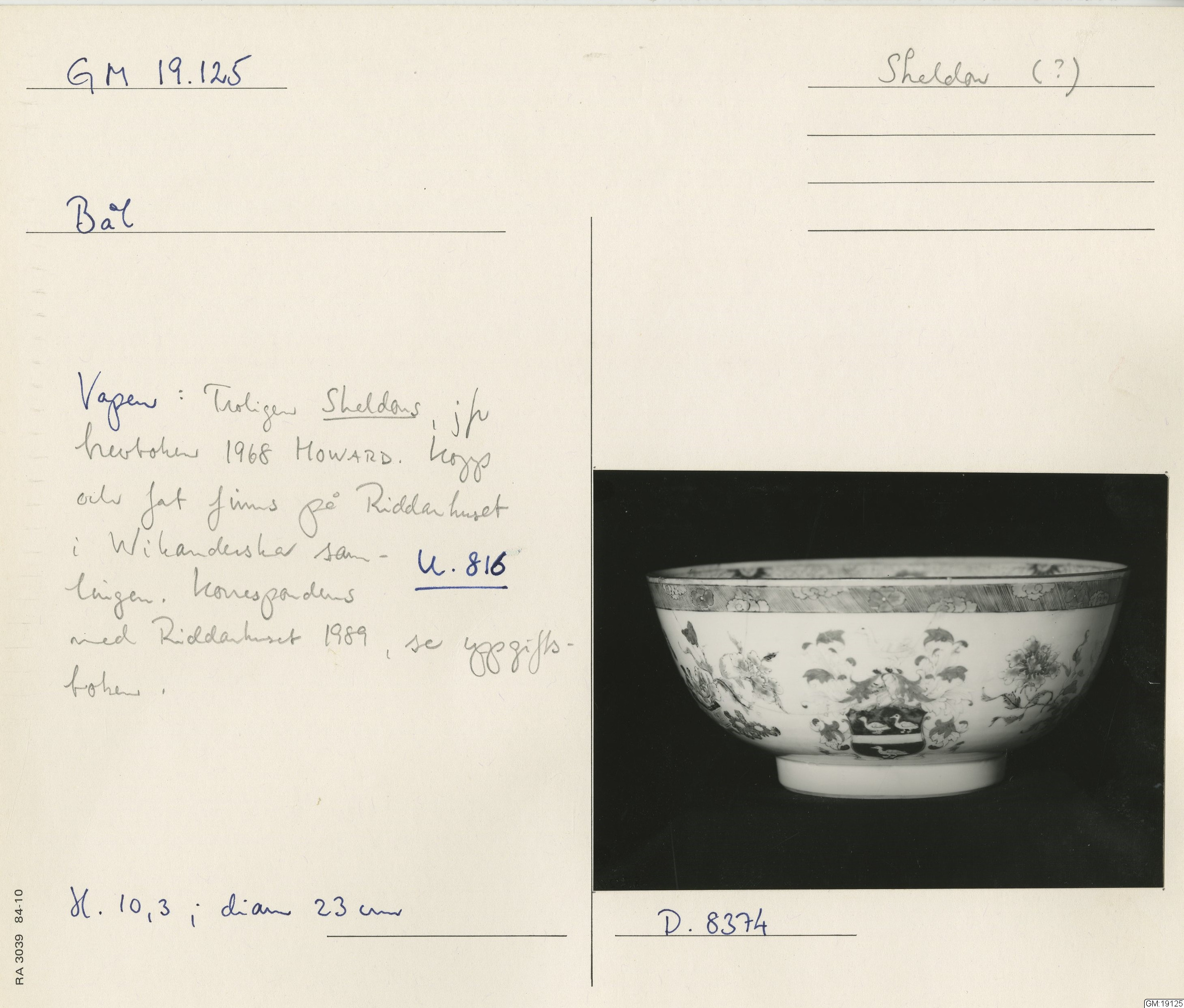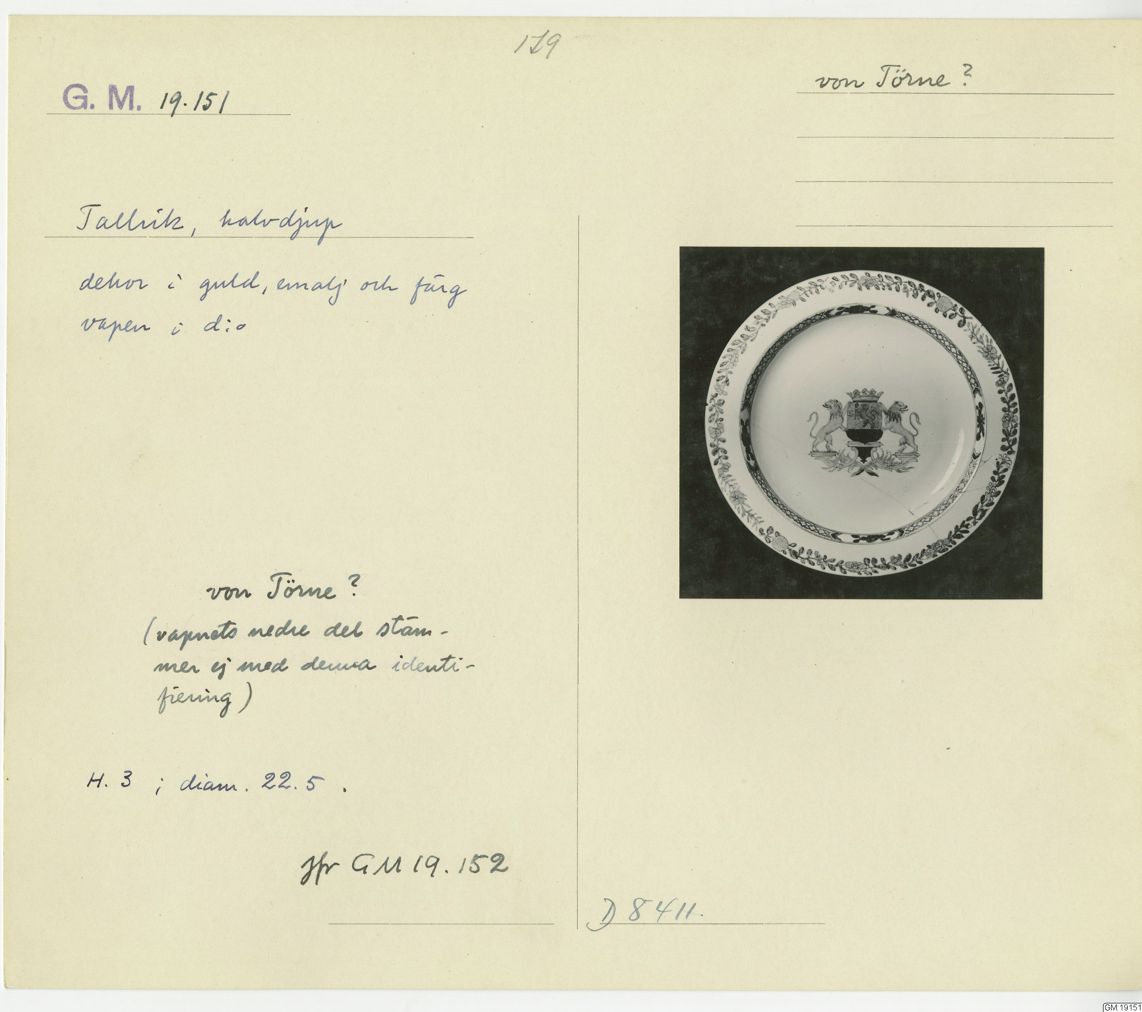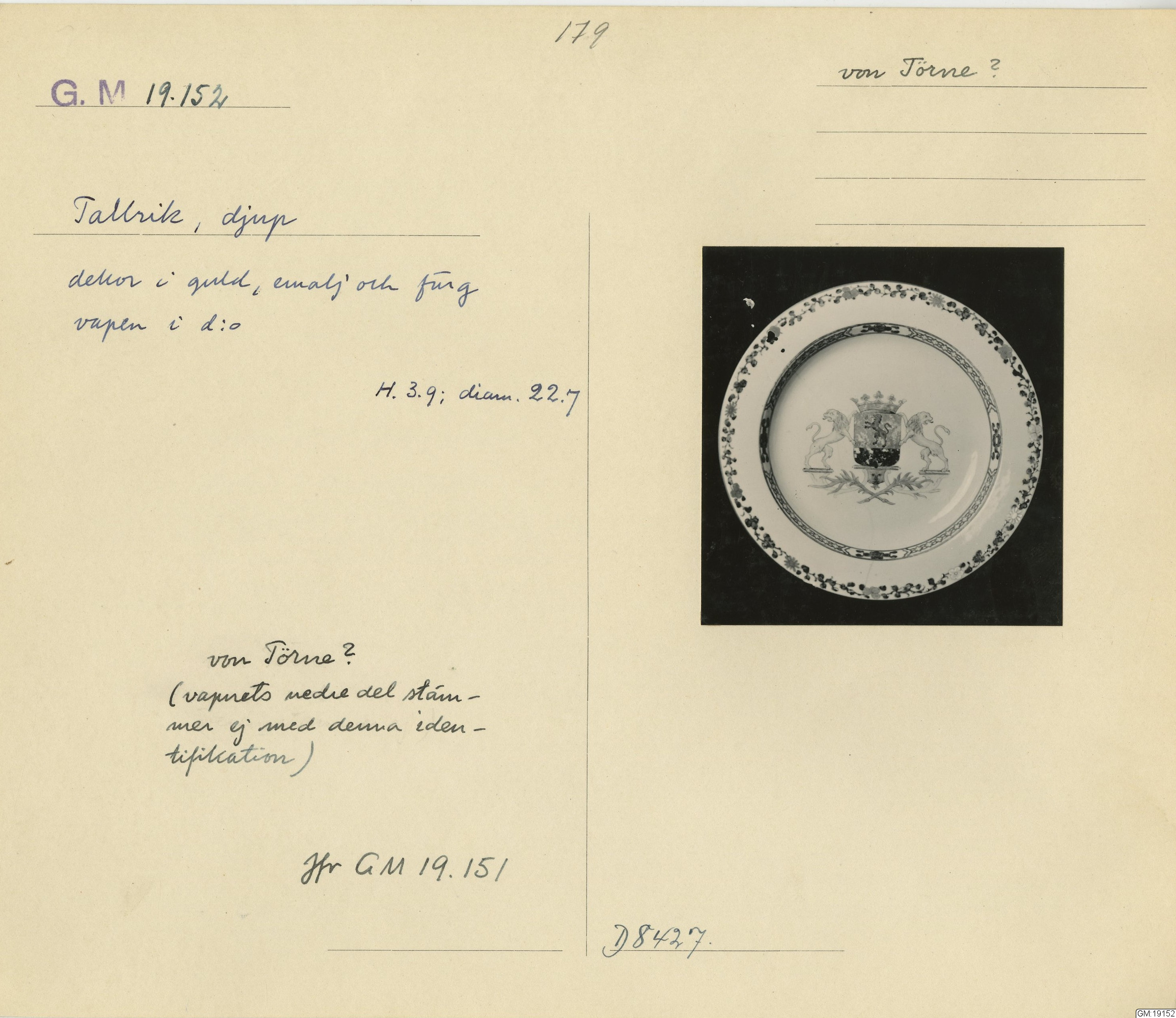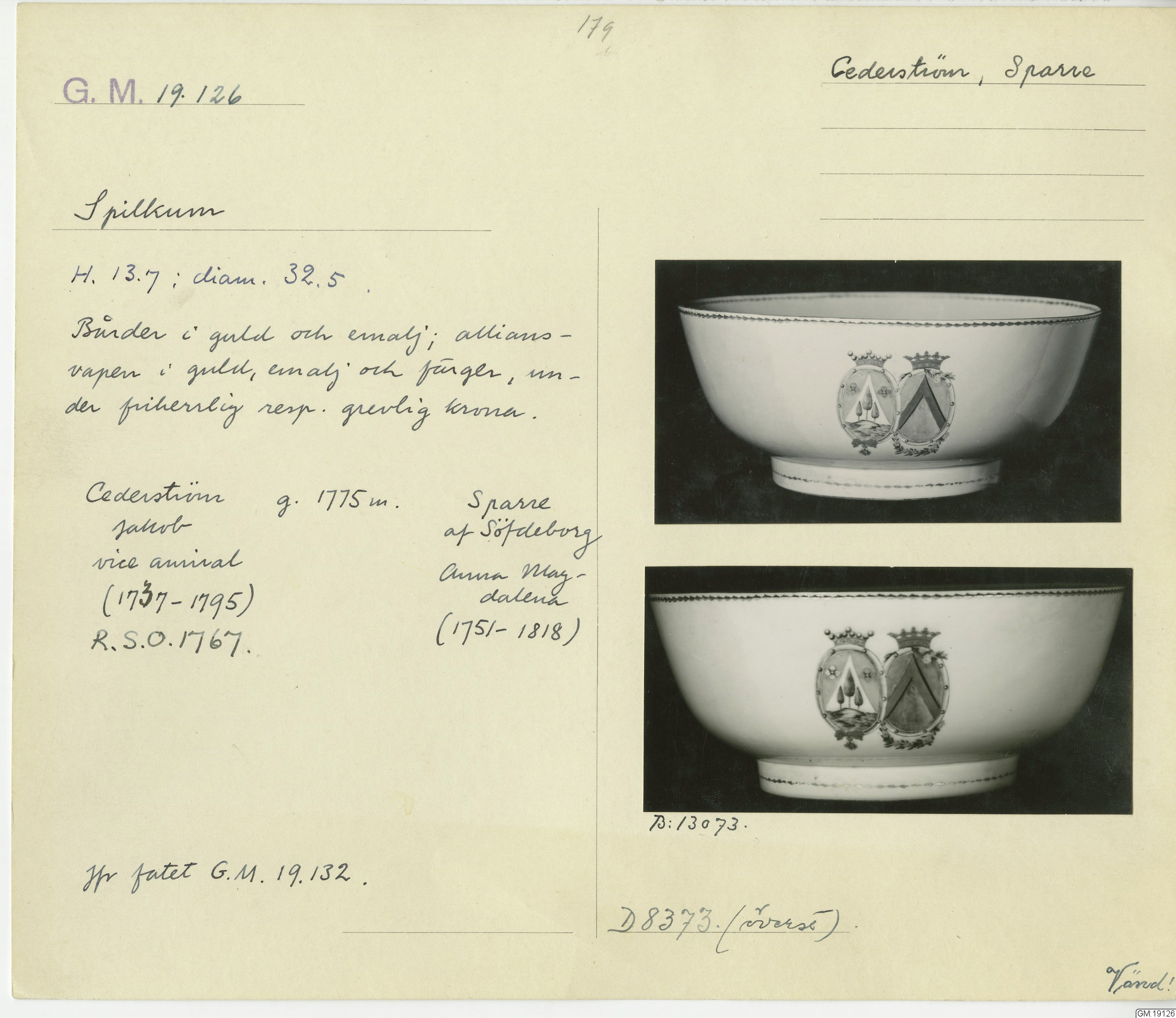 GM katalogkort 179. 18E Porslin Ostindiskt 9. Saml. Strokirk 1