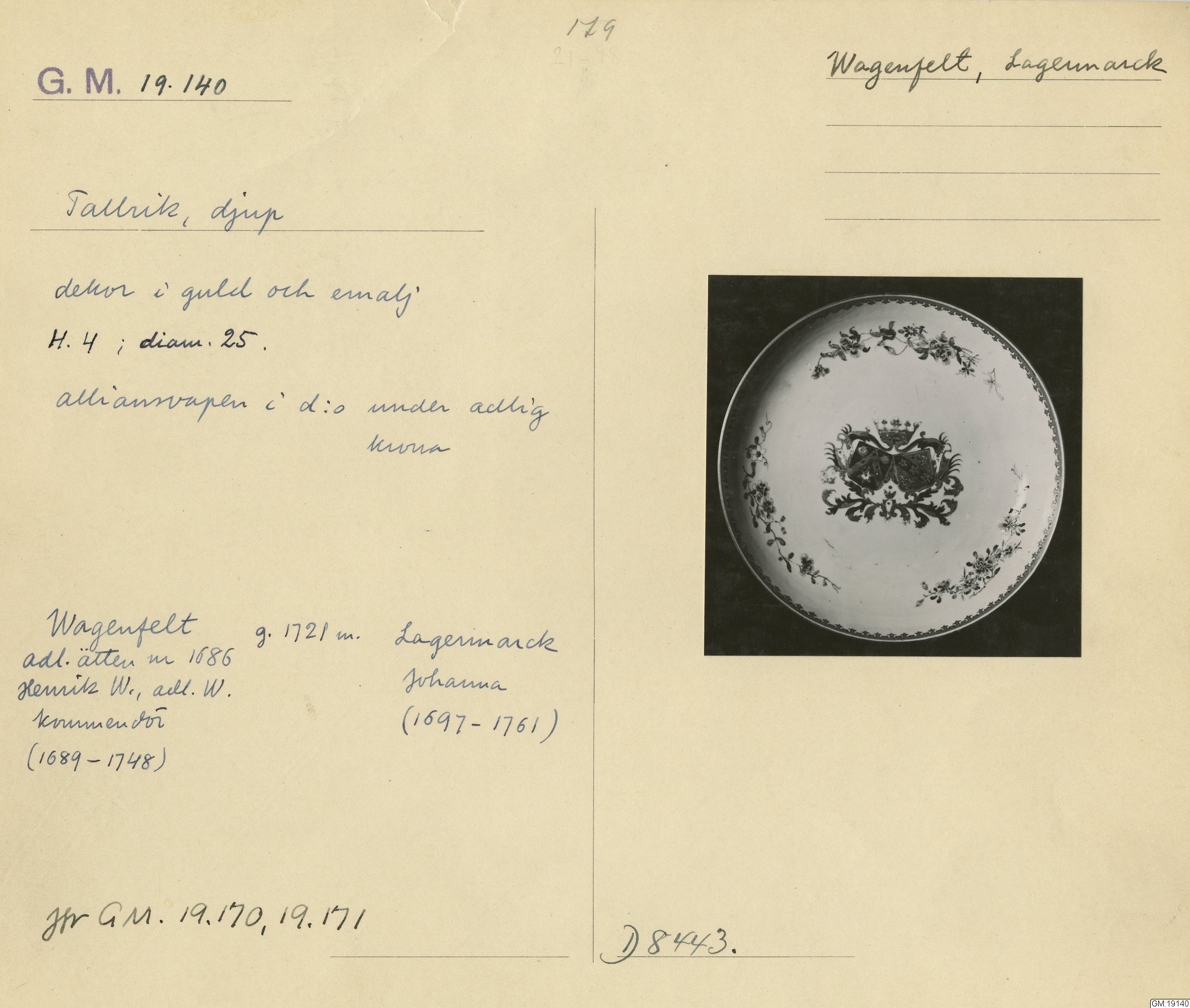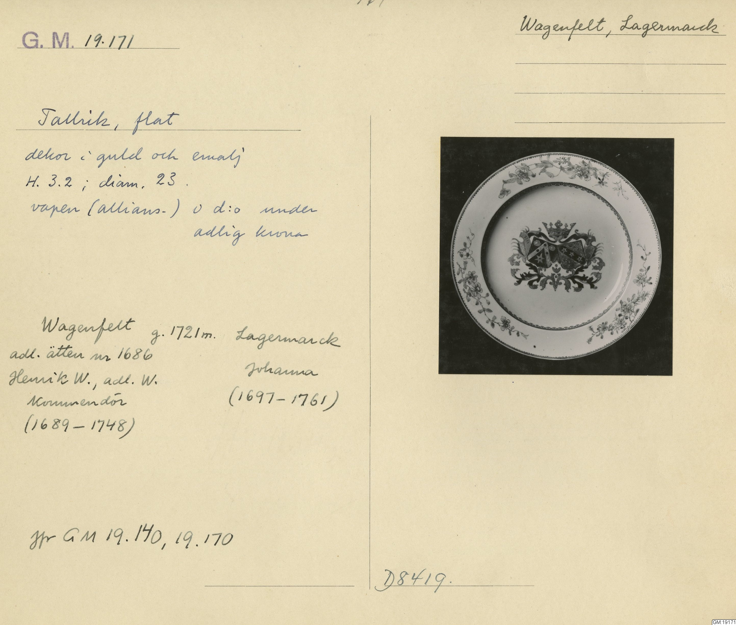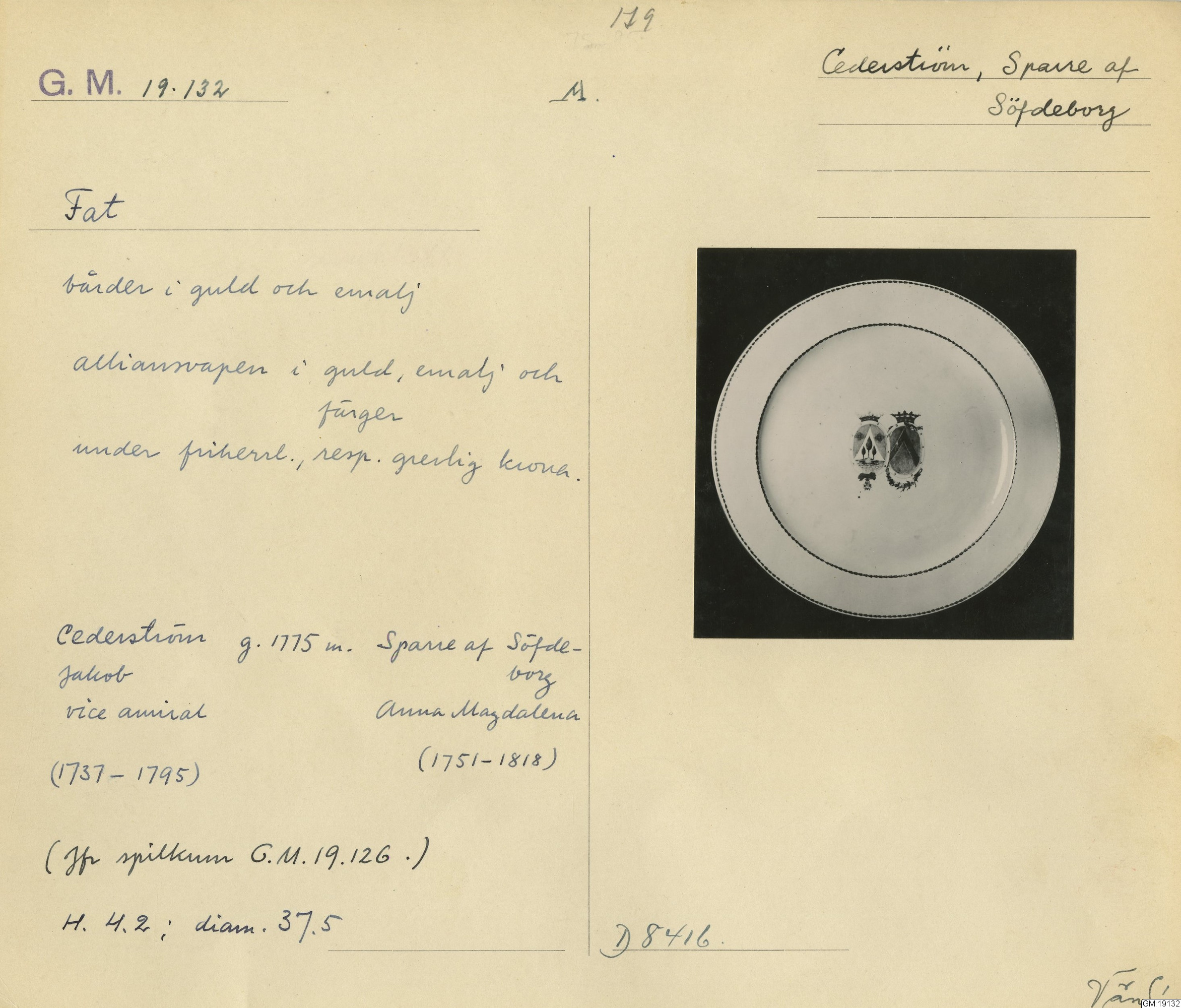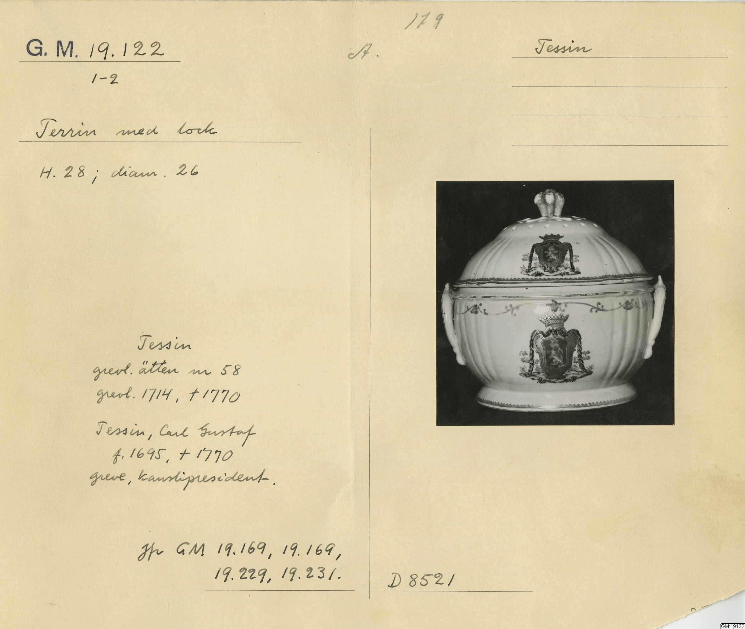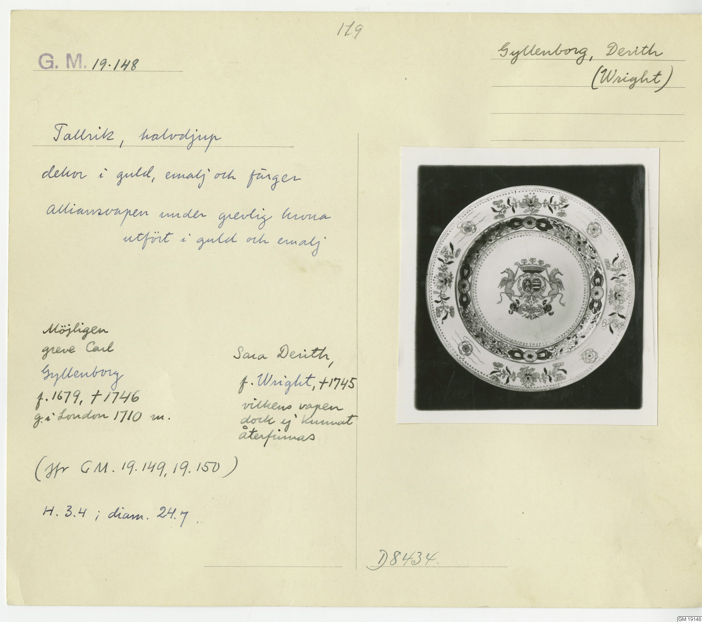 GM katalogkort 179. 18E Porslin Ostindiskt 9. Saml. Strokirk 1
