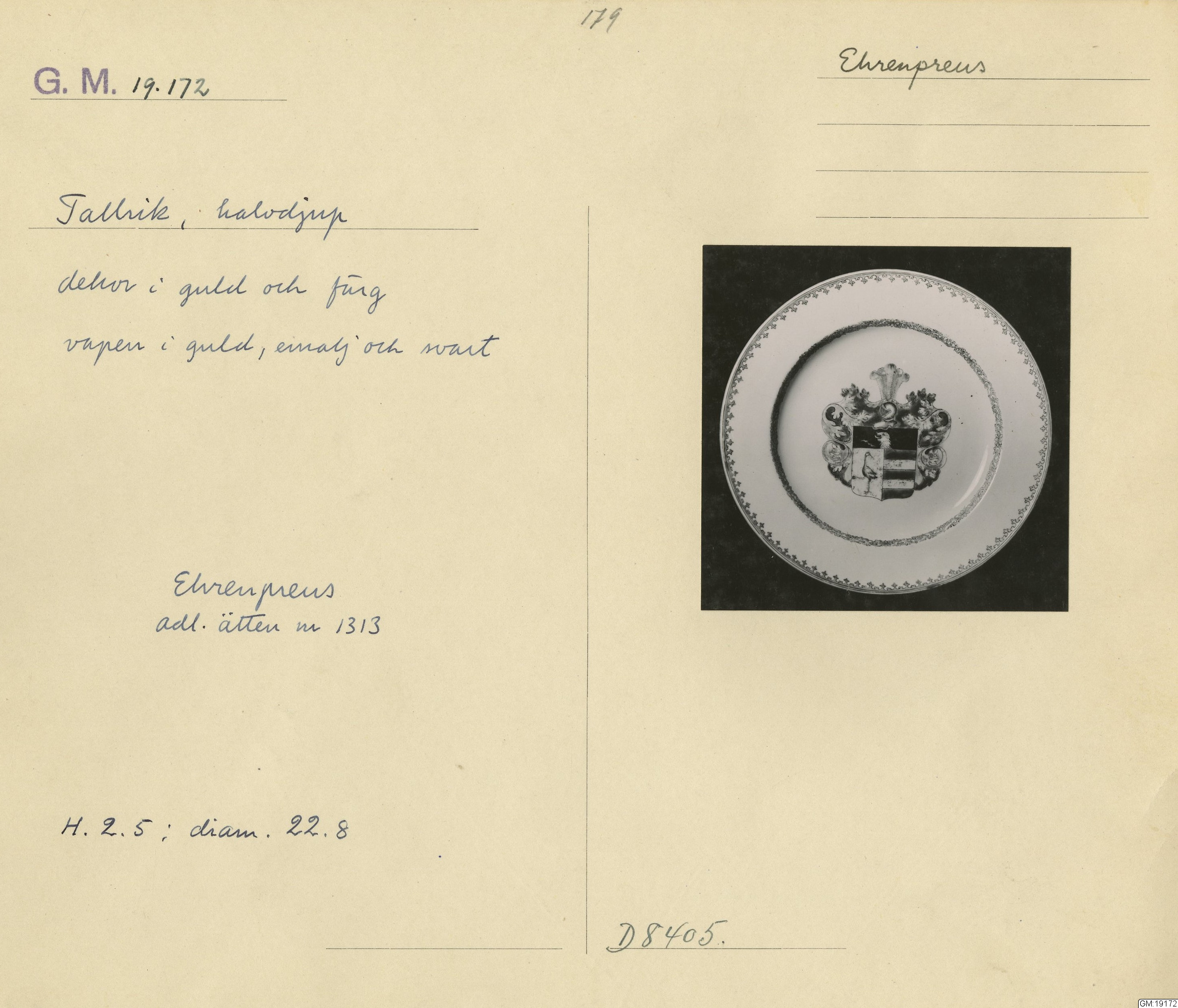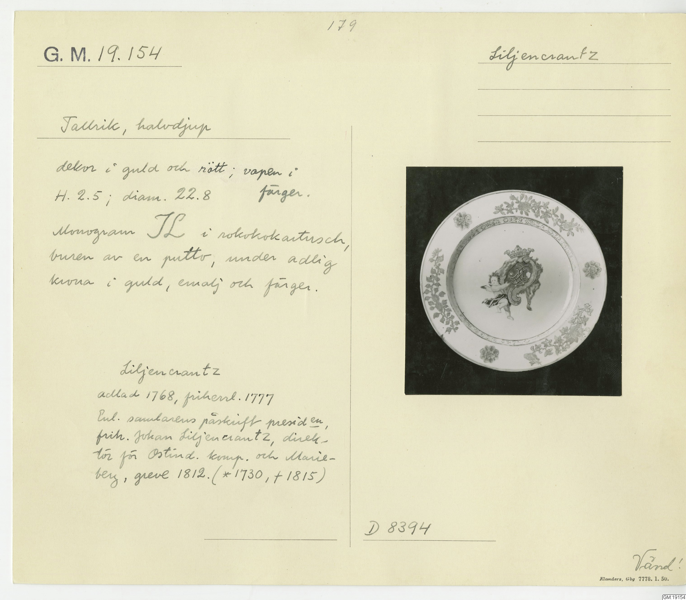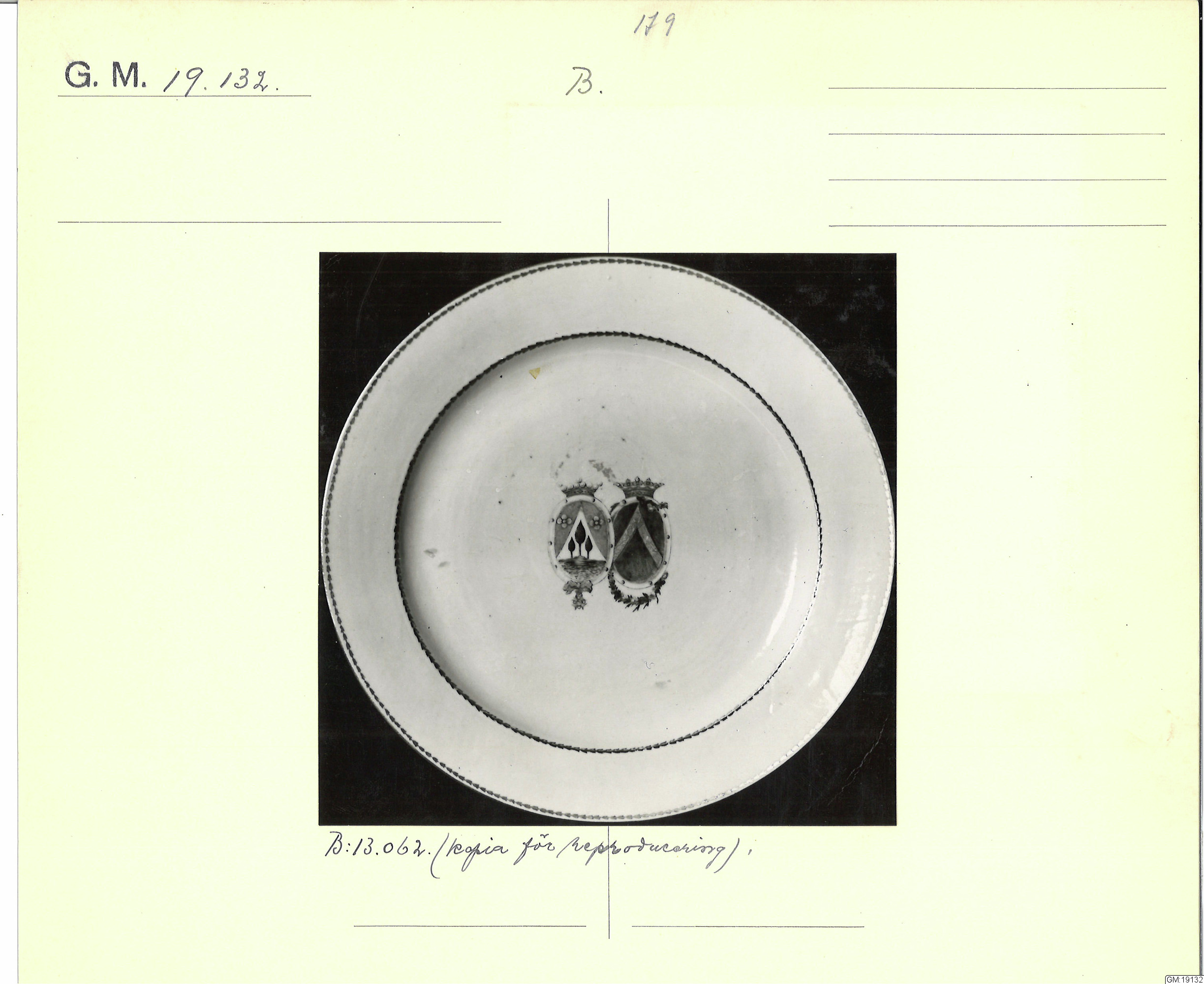 GM katalogkort 179. 18E Porslin Ostindisk 9. Saml. Strokirk 1