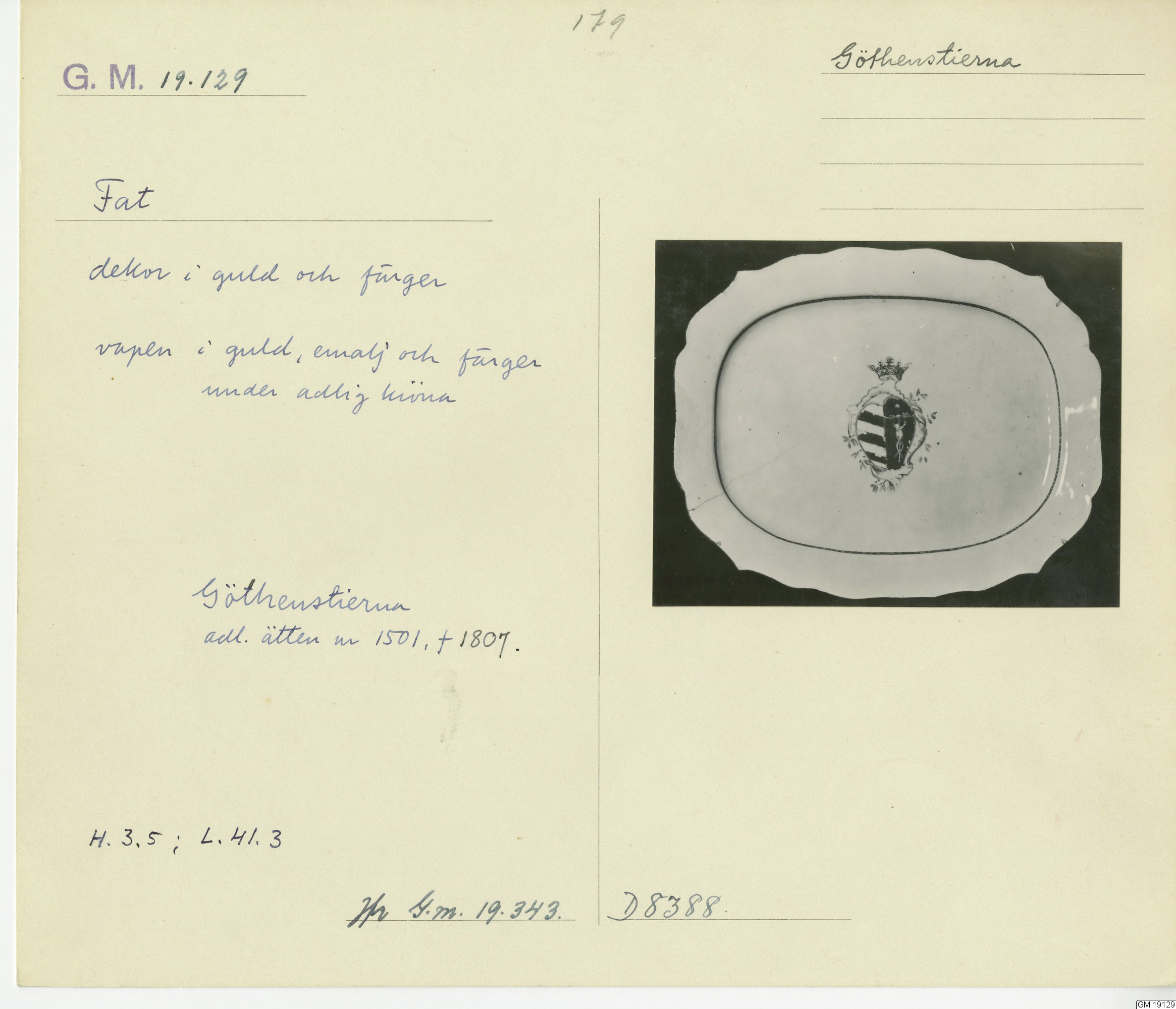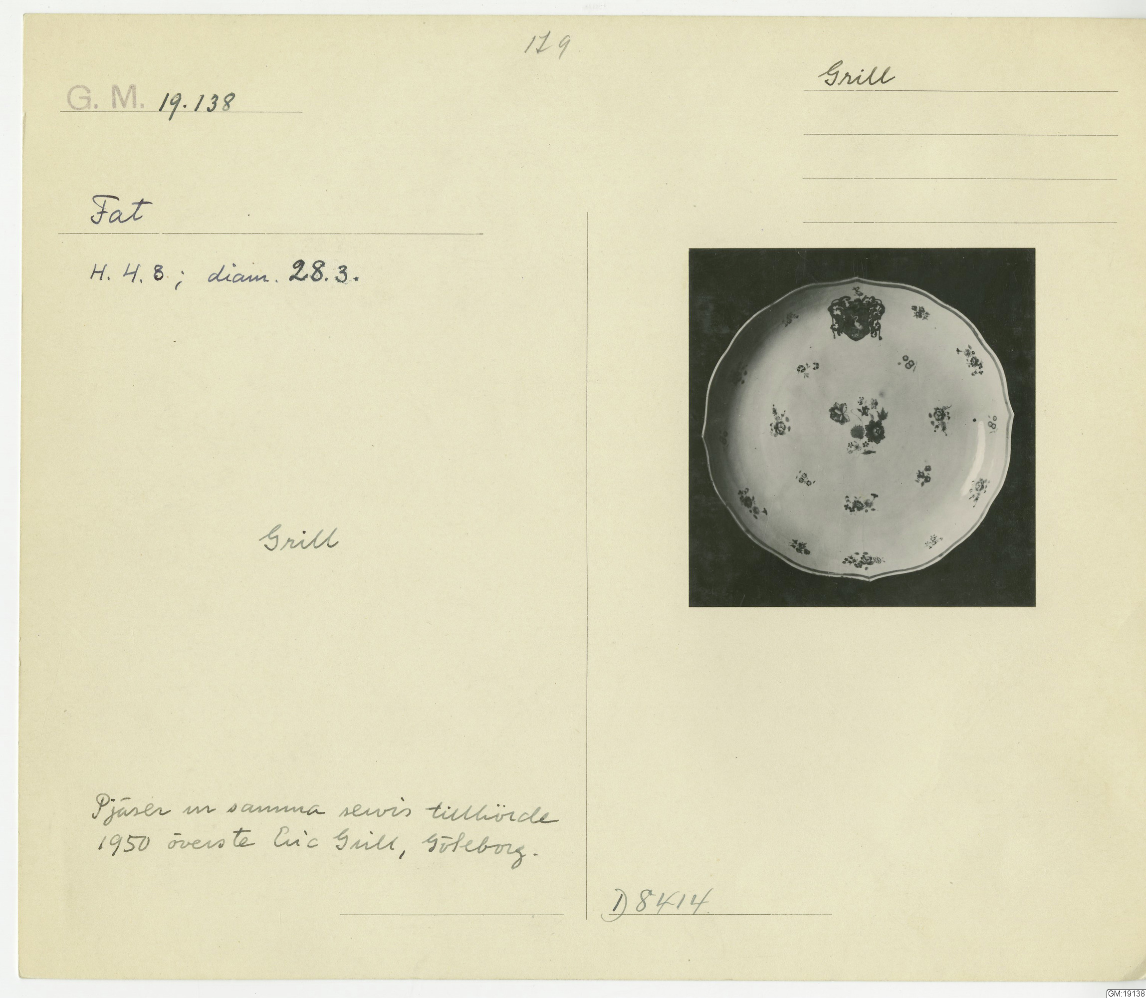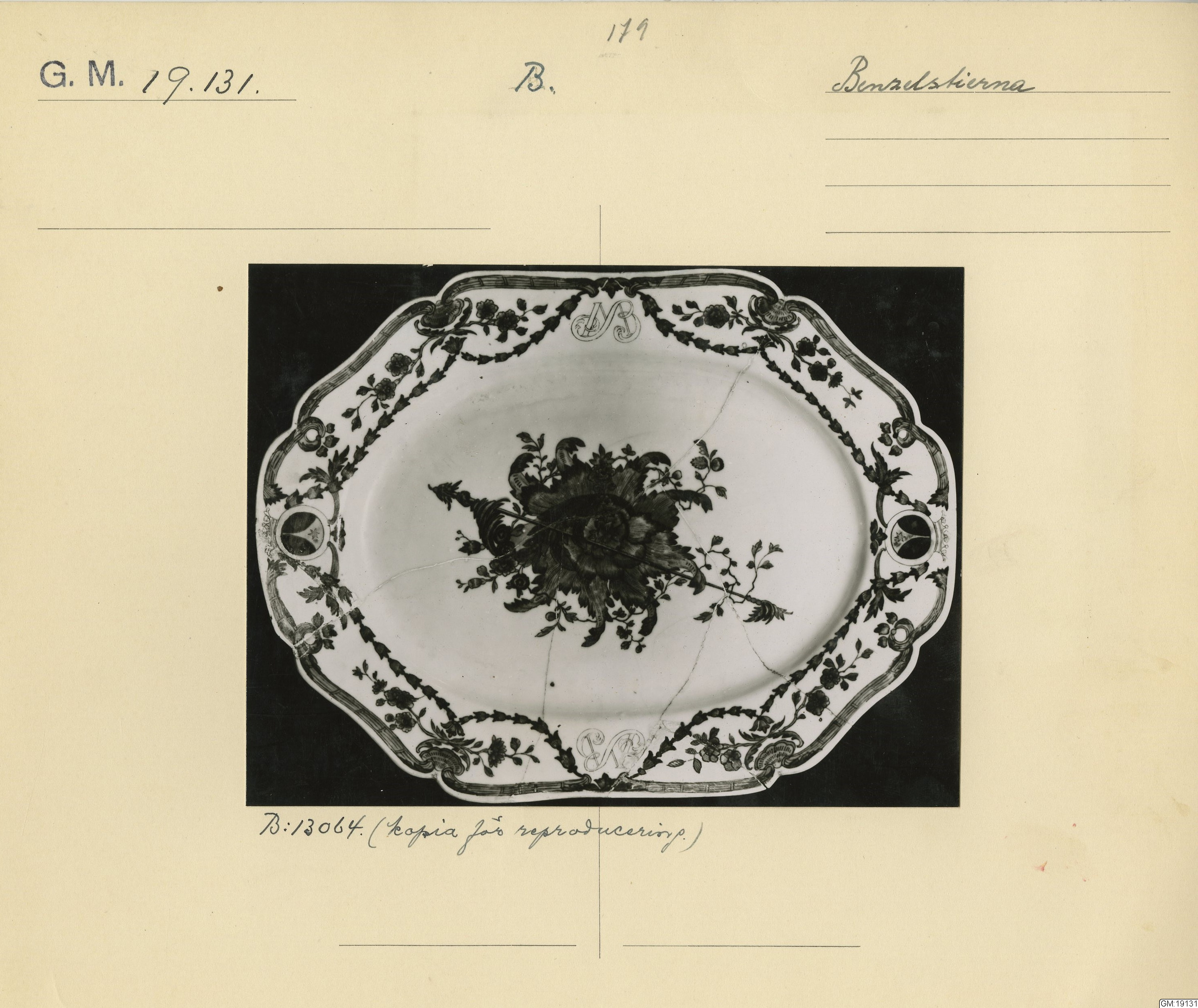 GM katalogkort 179. 18E Porslin Ostindisk 9. Saml. Strokirk 1