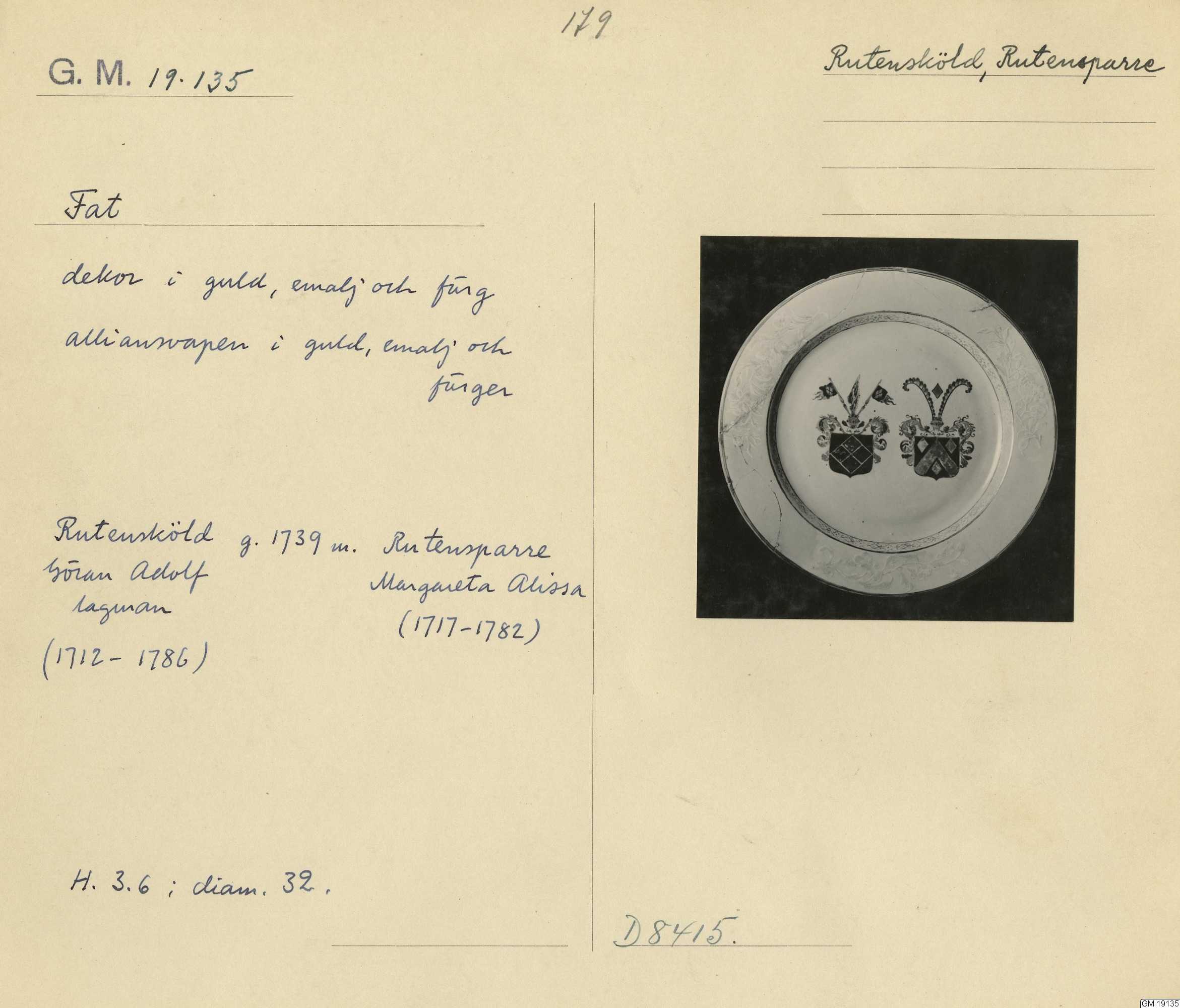 GM katalogkort 179. 18E Porslin Ostindisk 9. Saml. Strokirk 1 :: volym