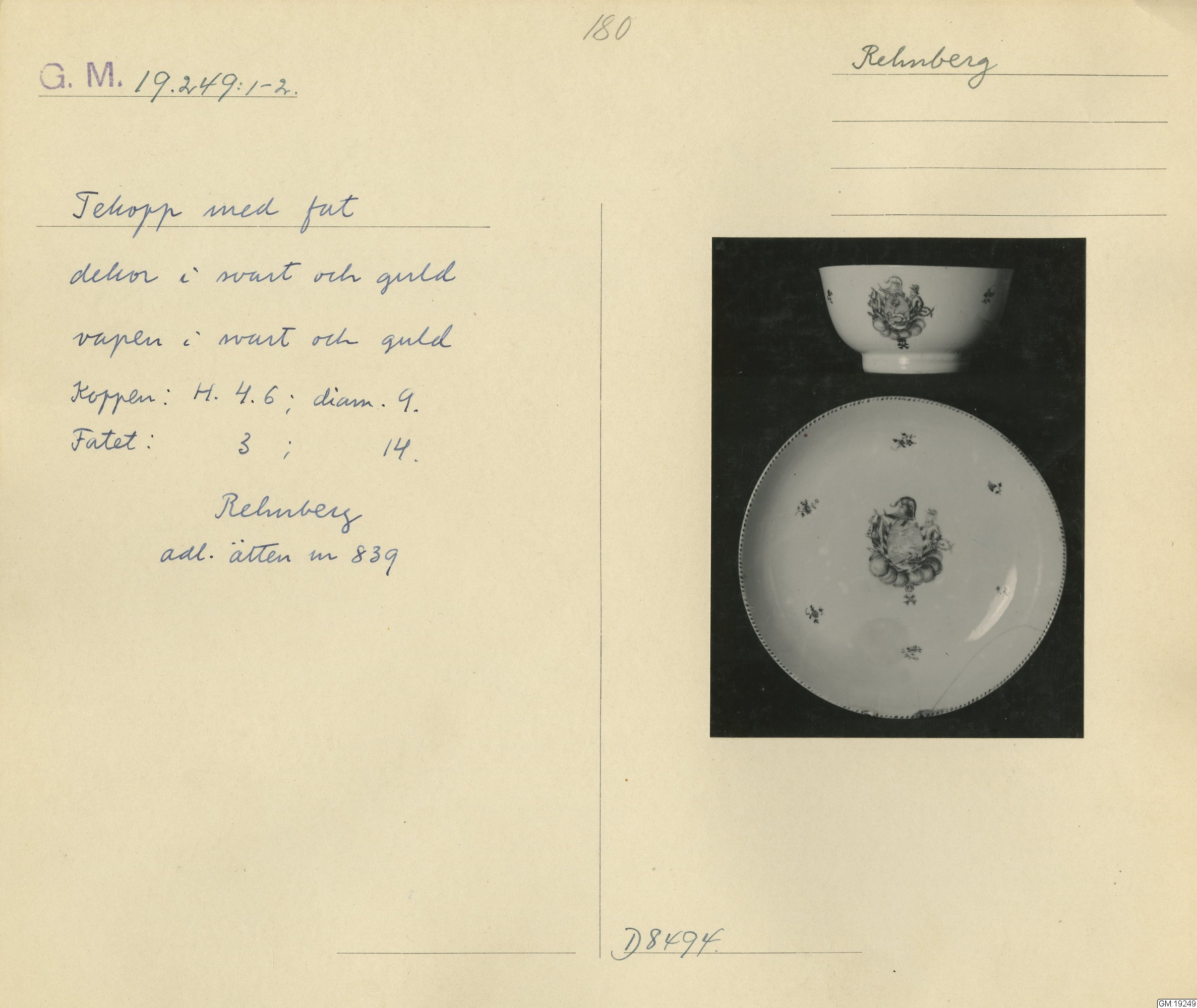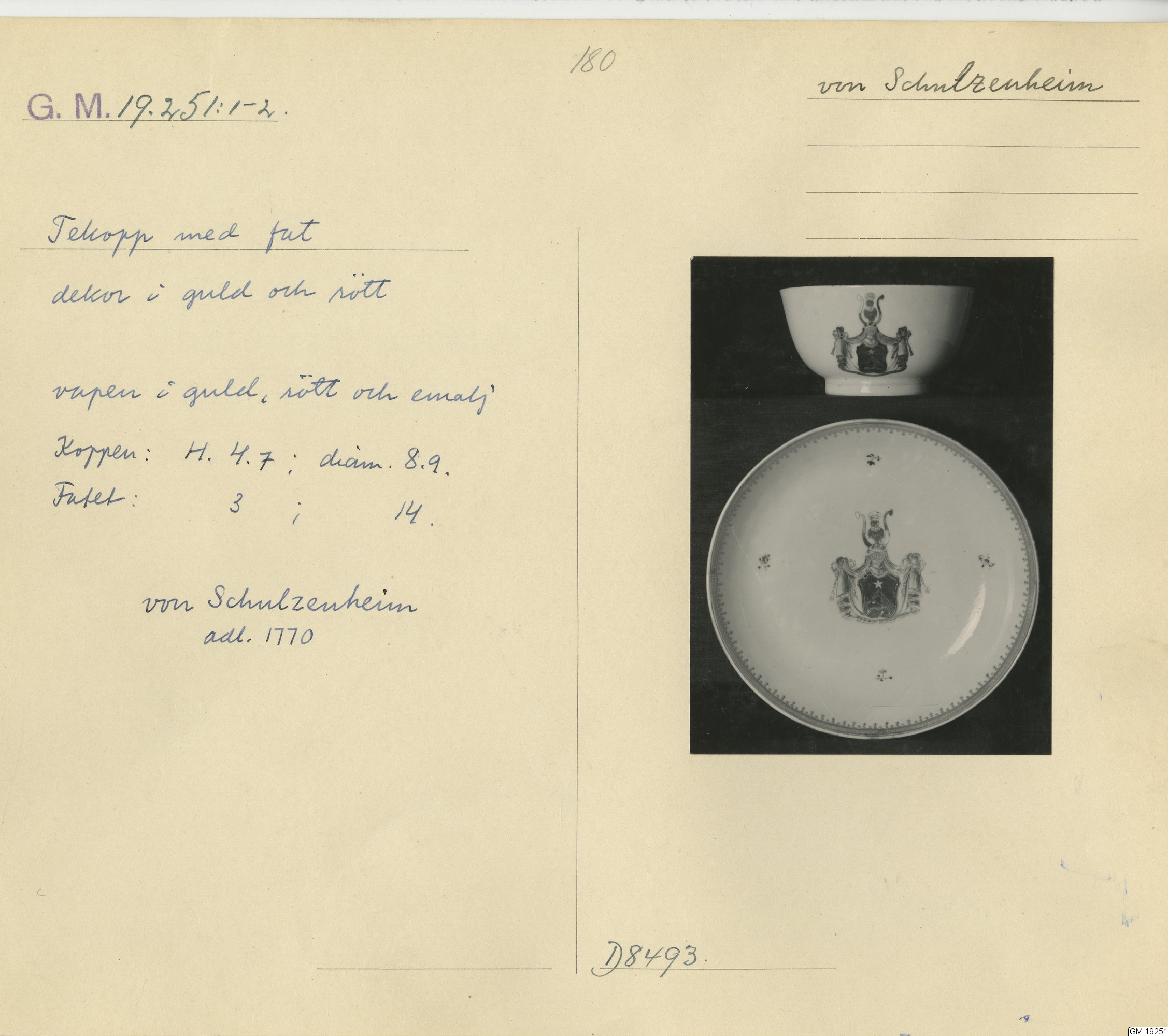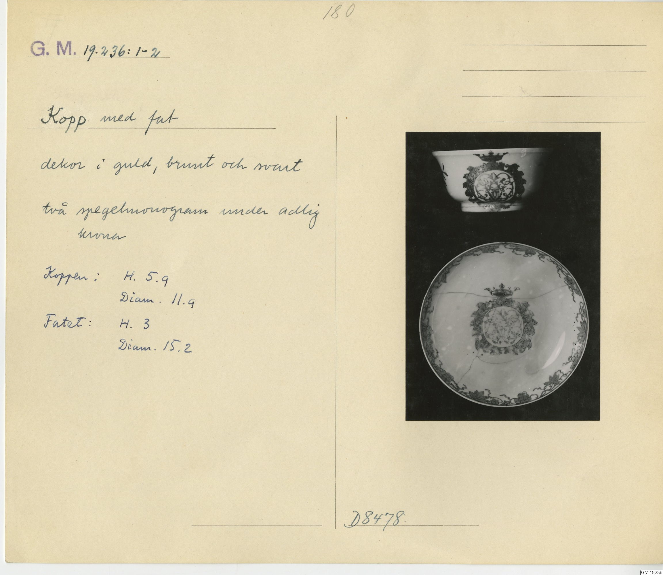 GM katalogkort 180. 18E Porslin Ostindiskt 10. Saml. Strokirk 2