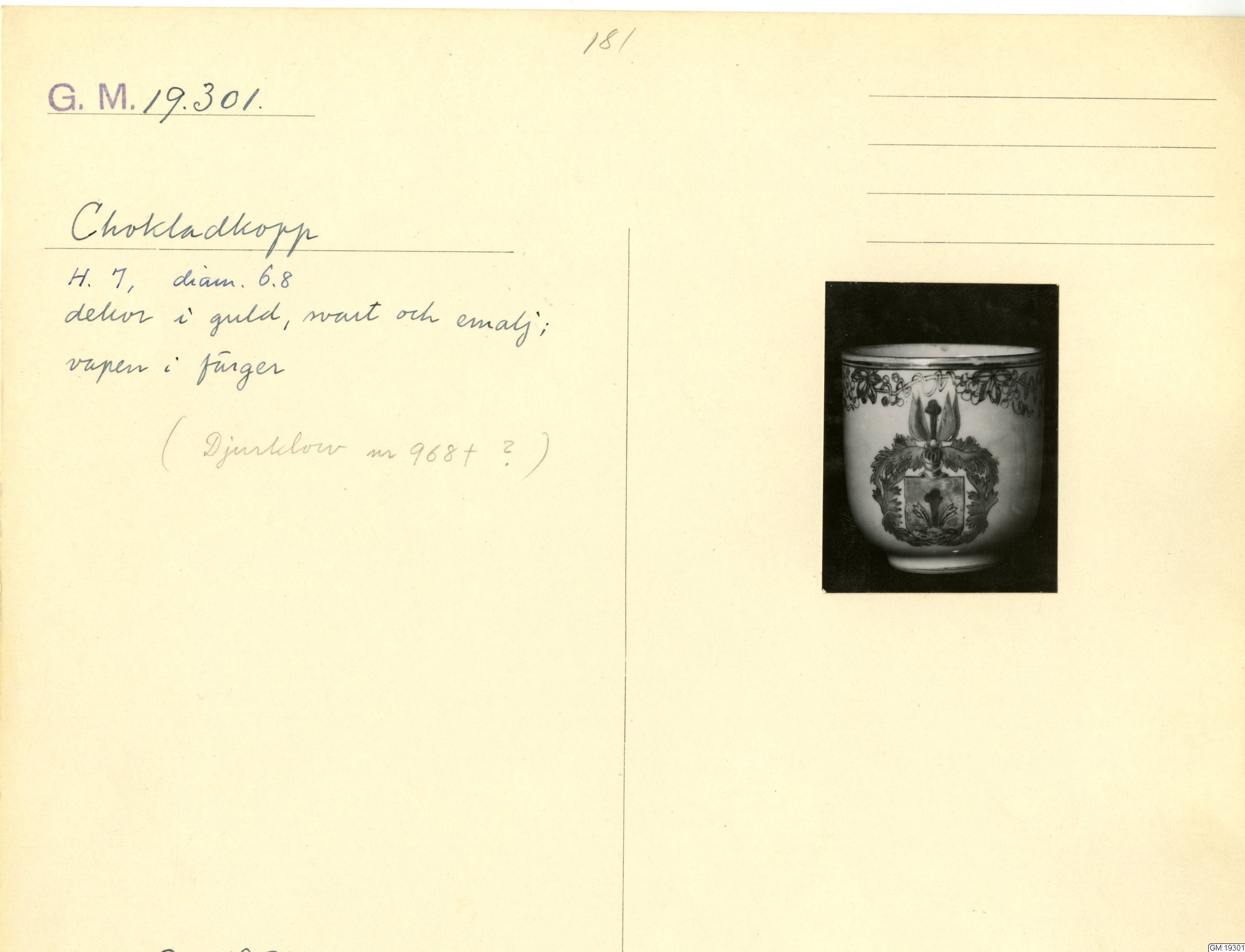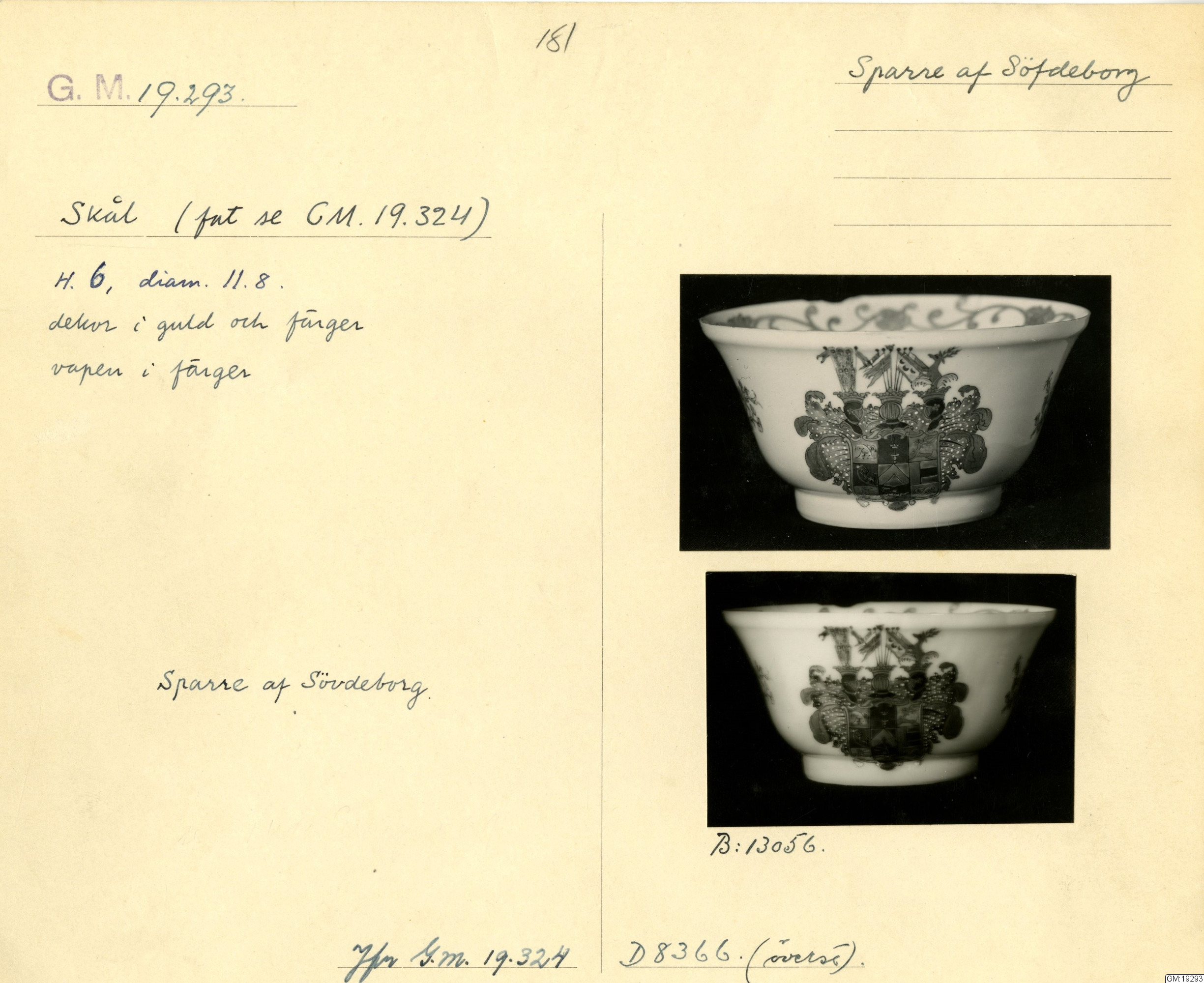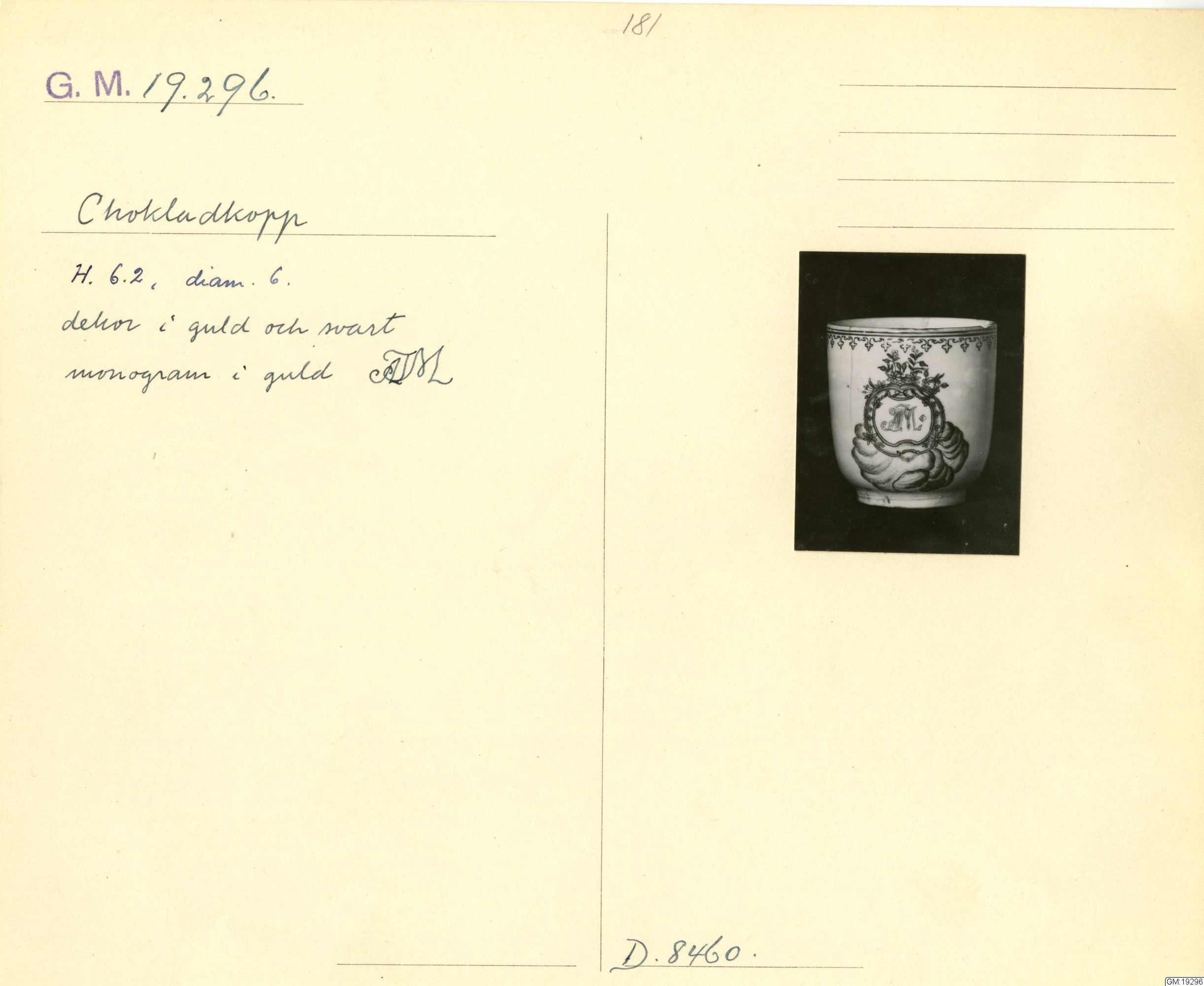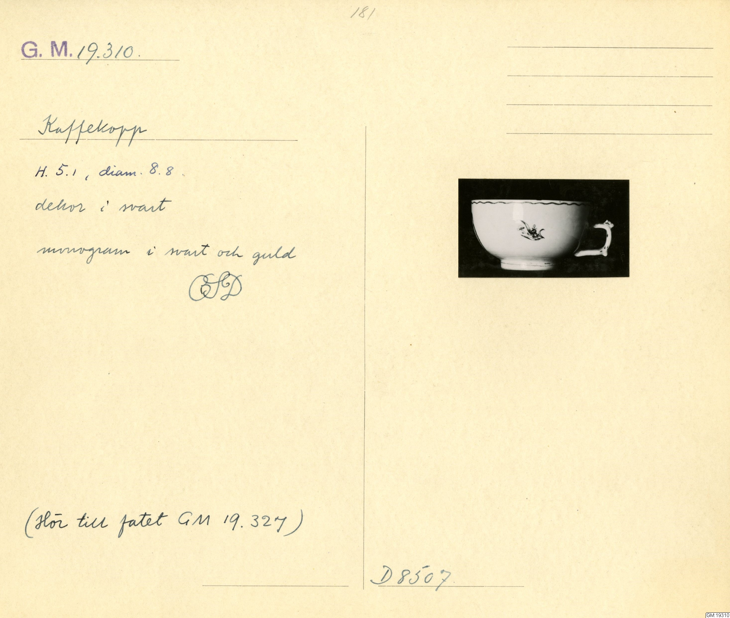 GM katalogkort 181. 18E Porslin Ostindiskt 11. Saml. Strokirk 3 :: volym
