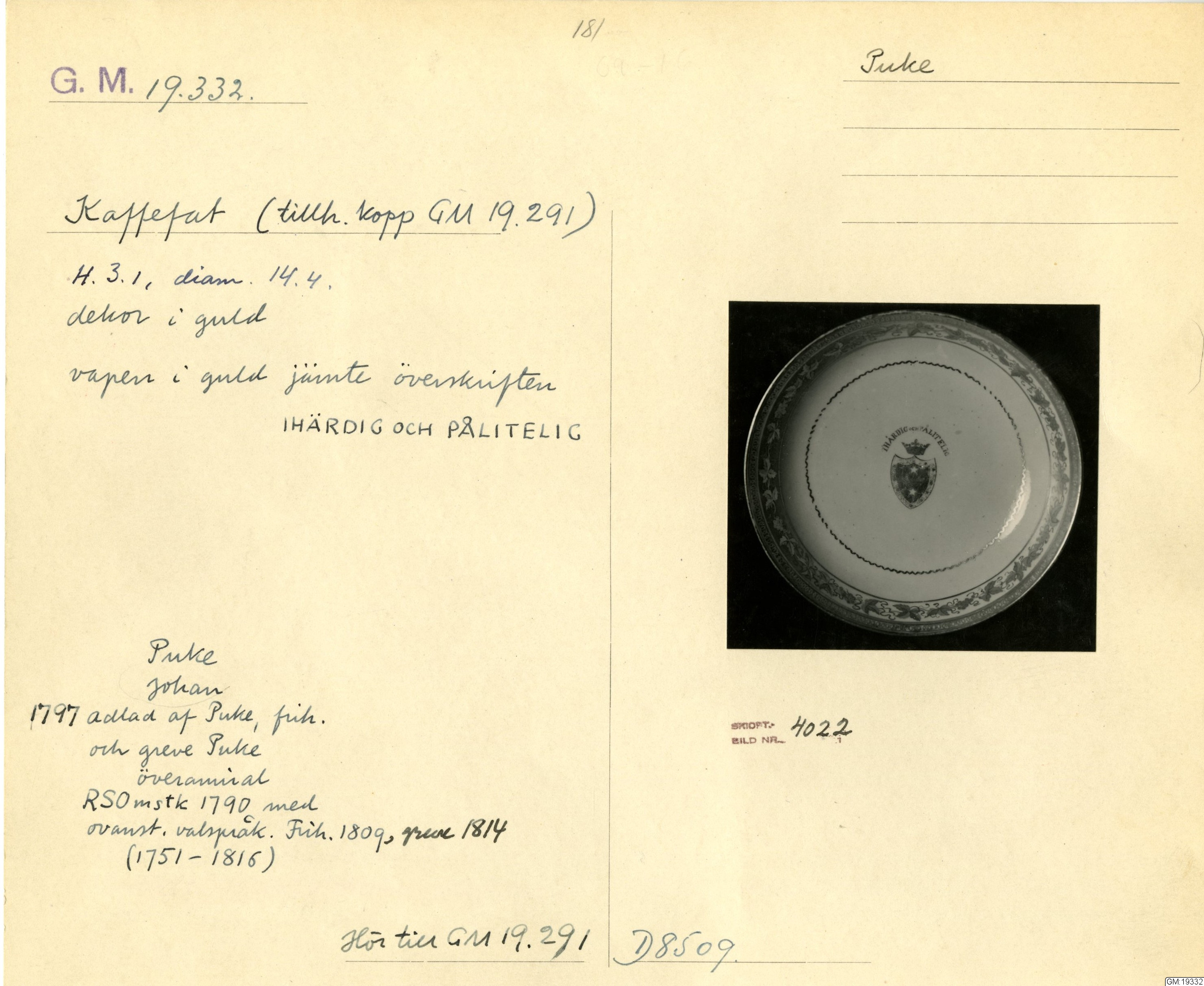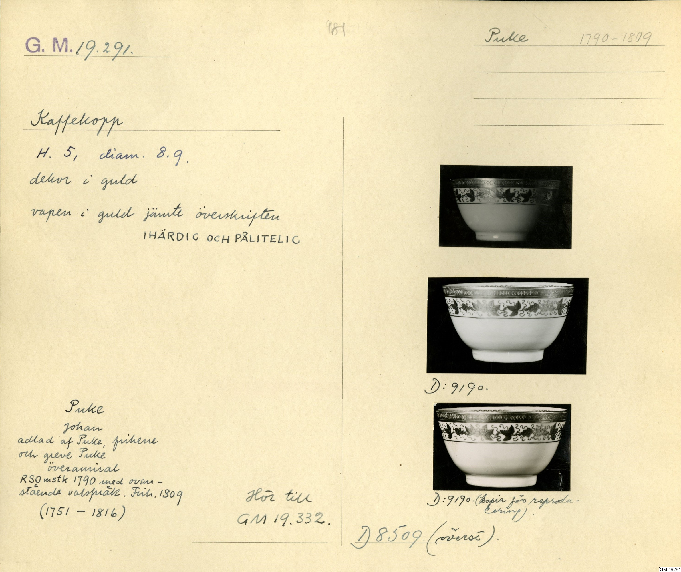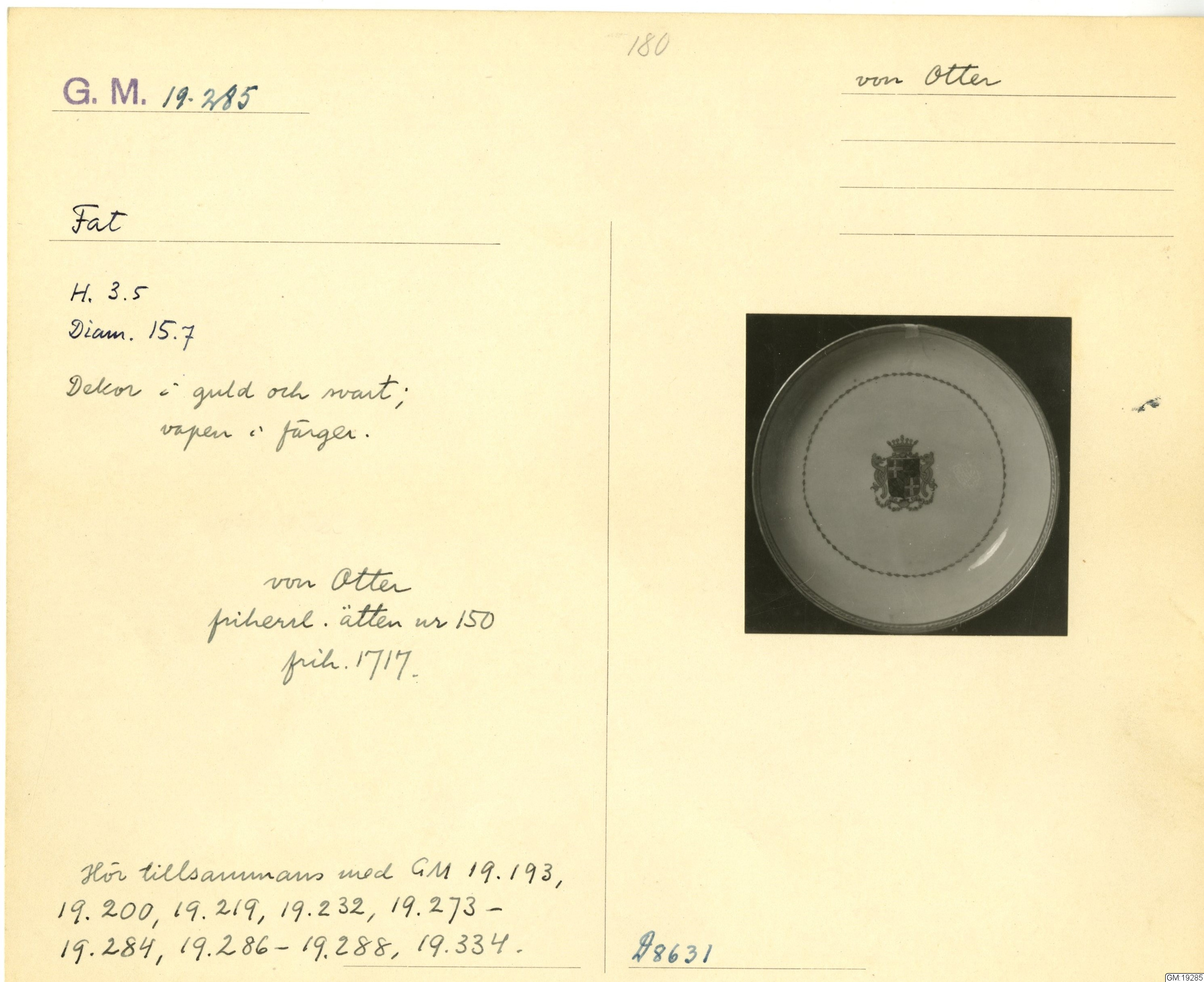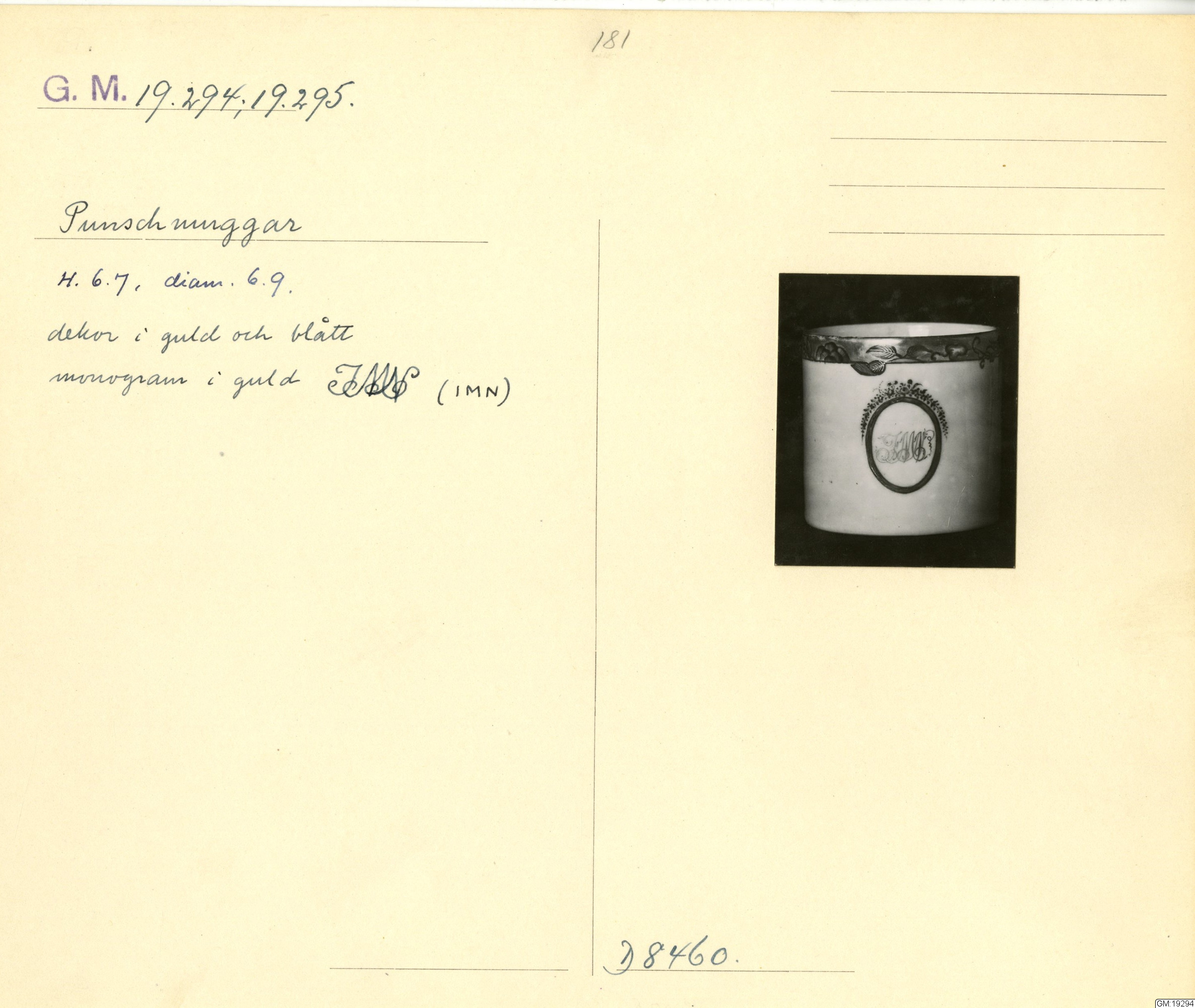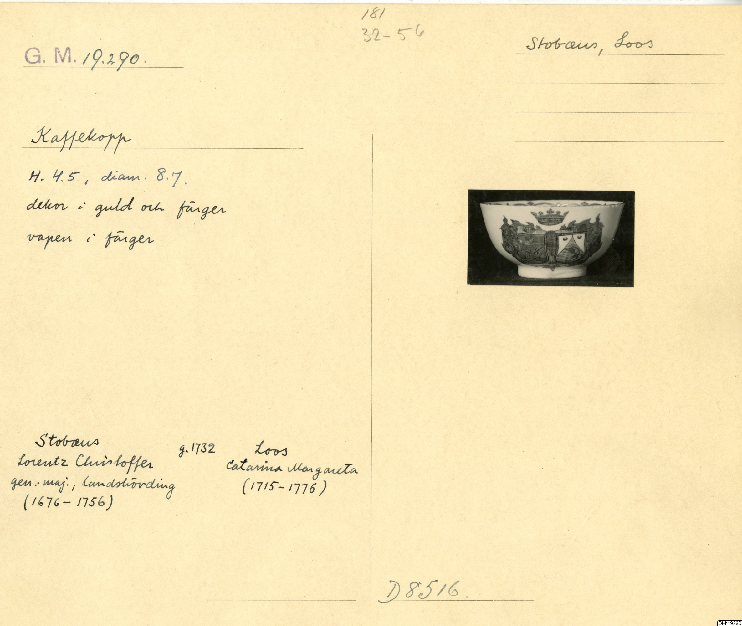 GM katalogkort 181. 18E Porslin Ostindiskt 11. Saml. Strokirk 3 :: volym