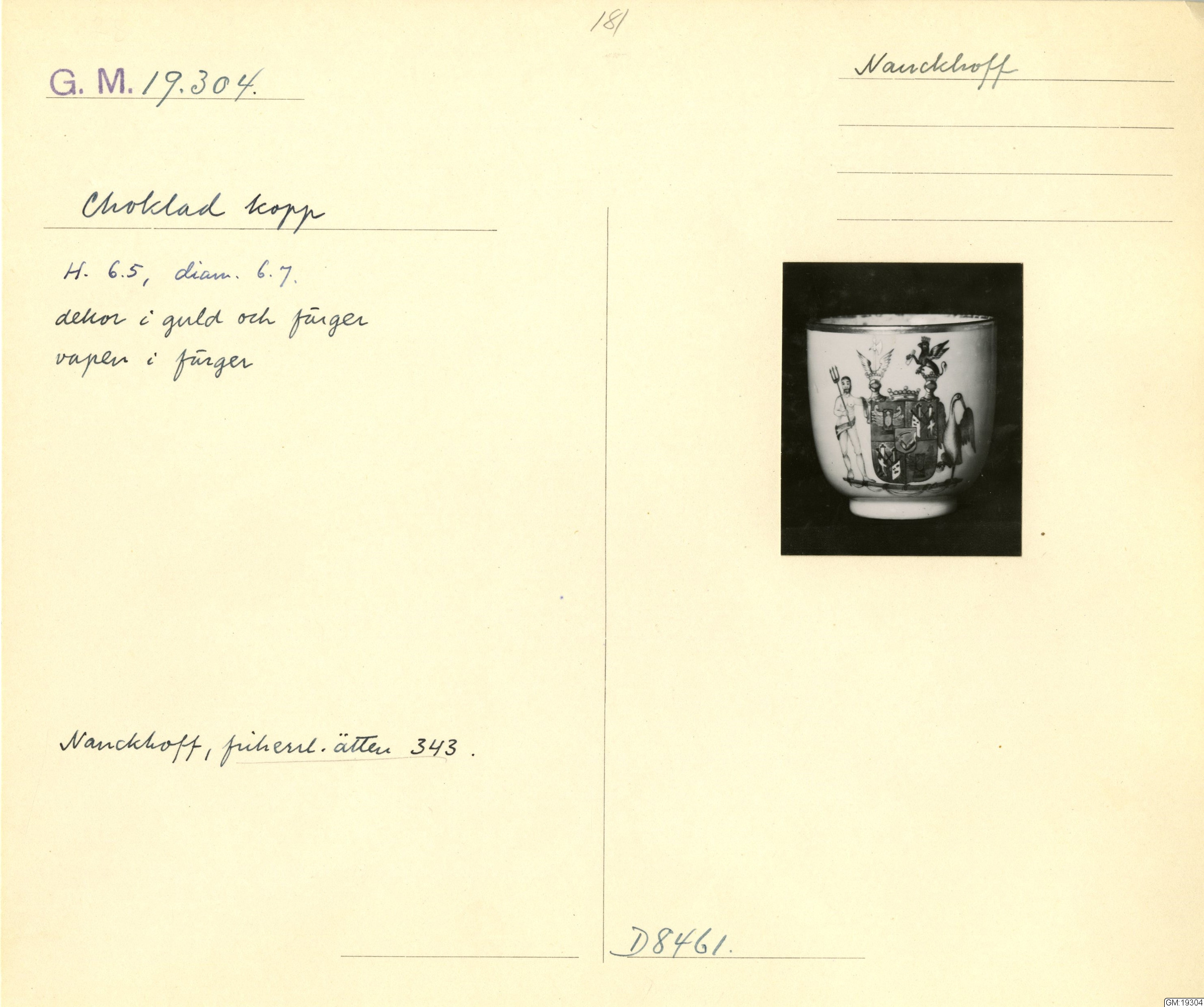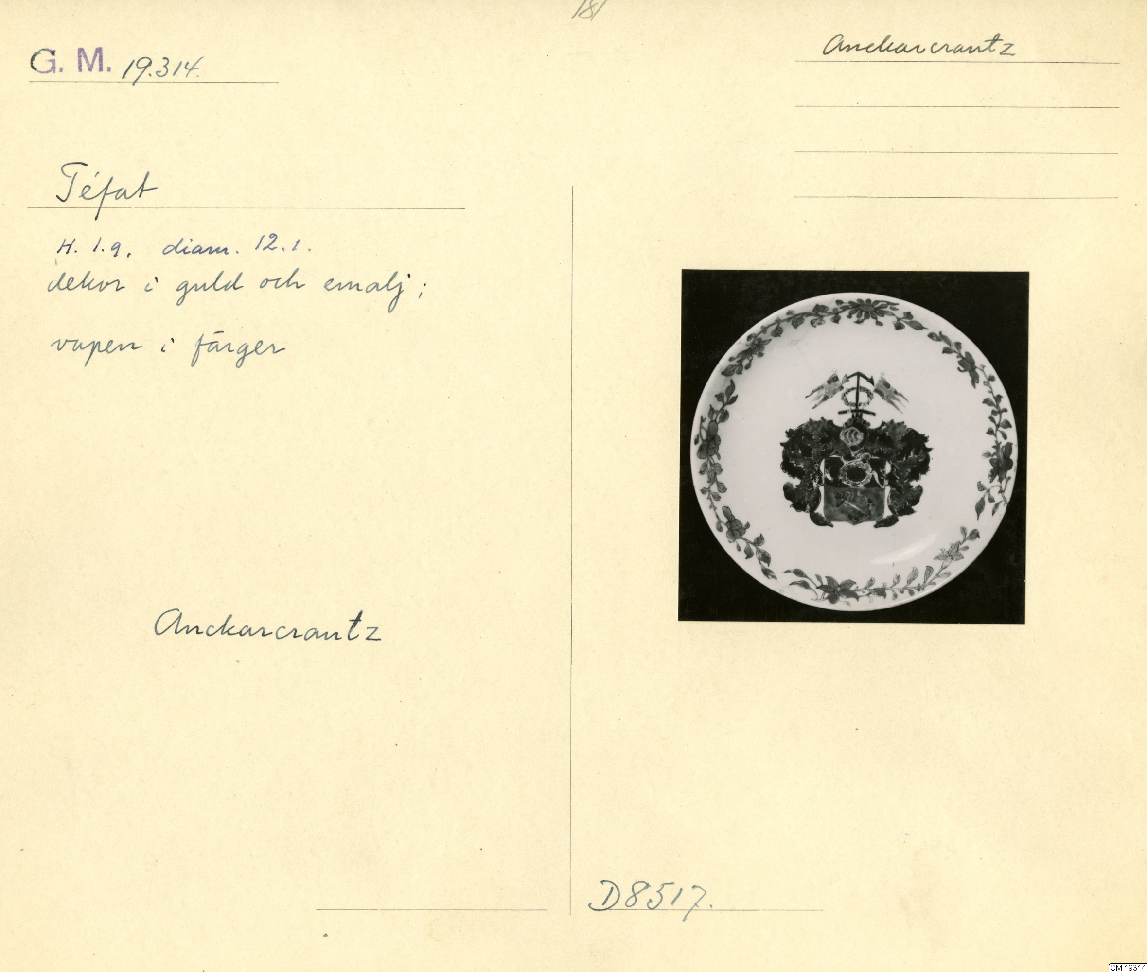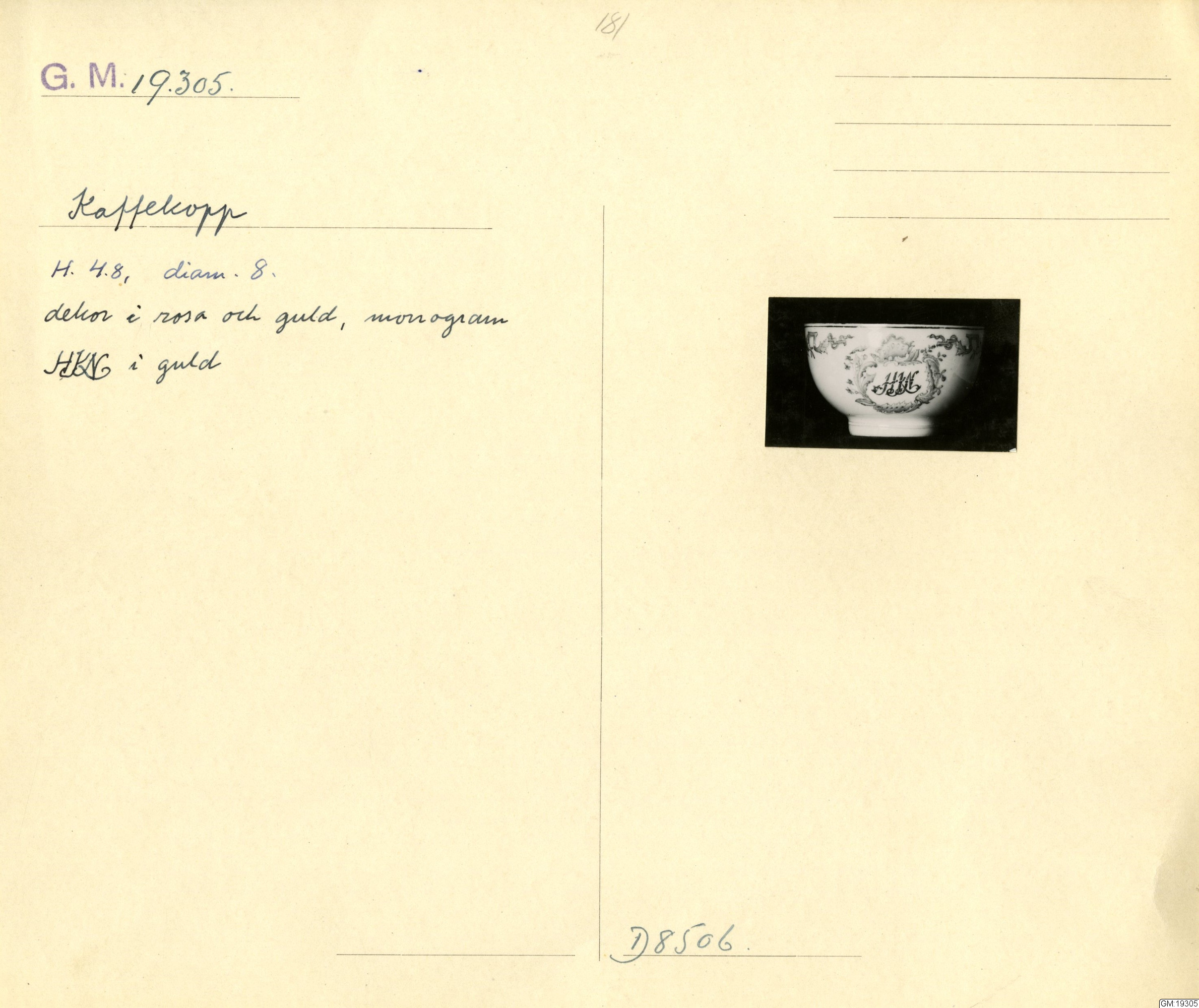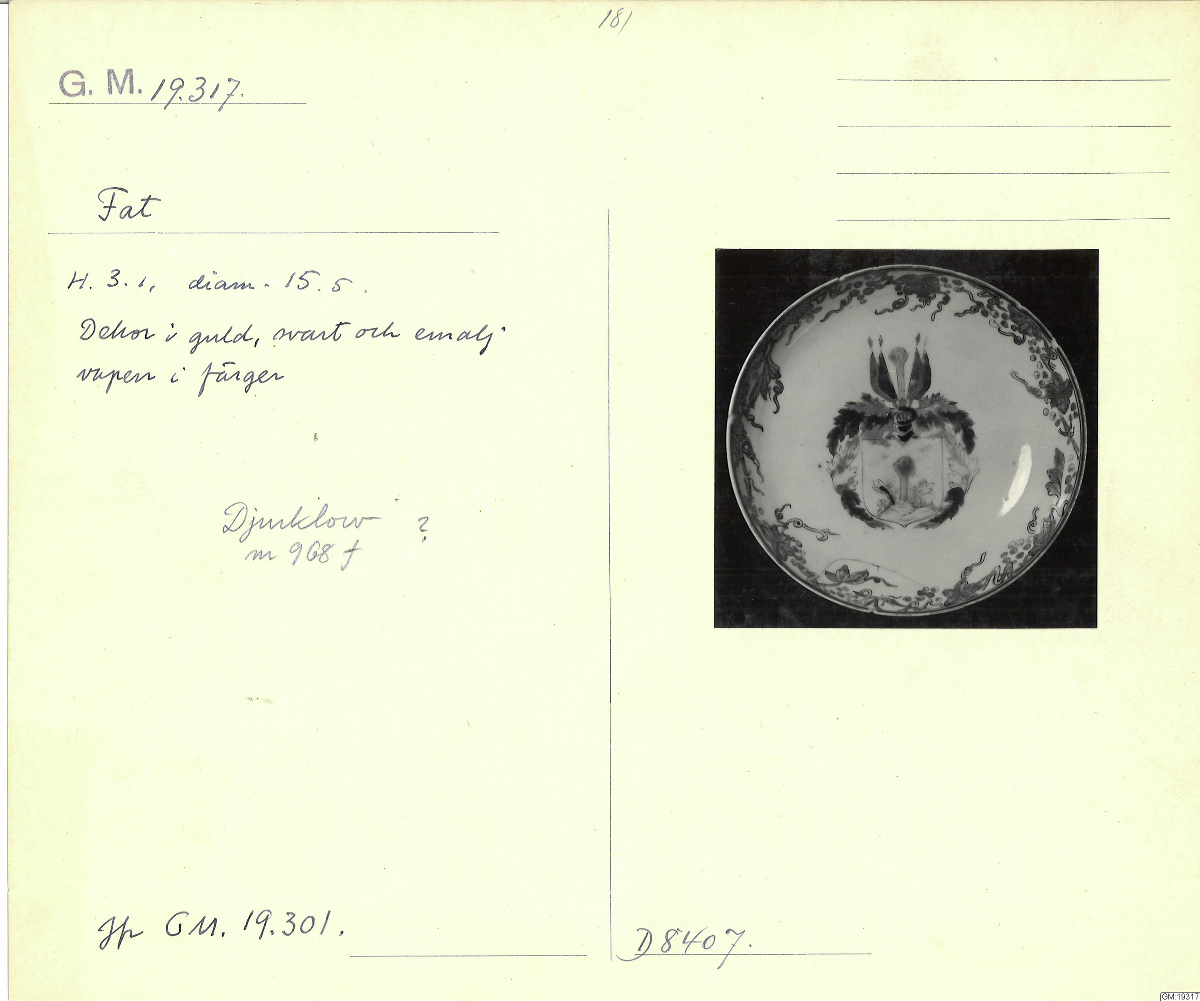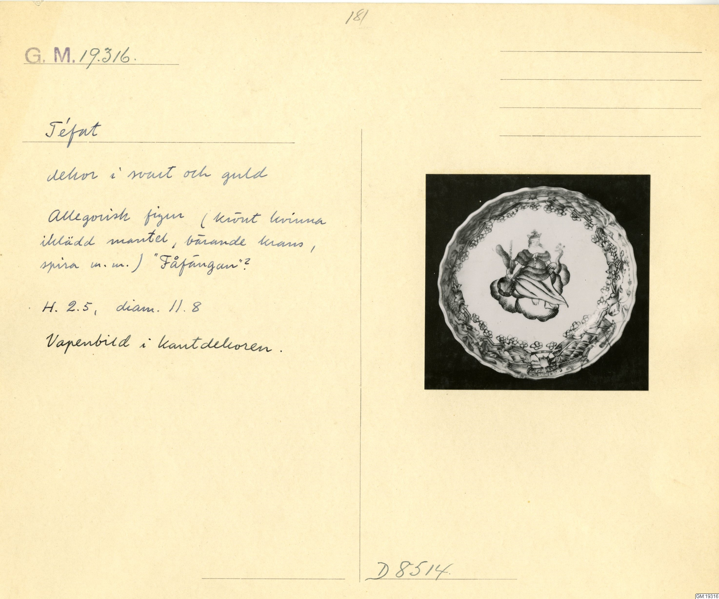 GM katalogkort 181. 18E Porslin Ostindiskt 11. Saml. Strokirk 3