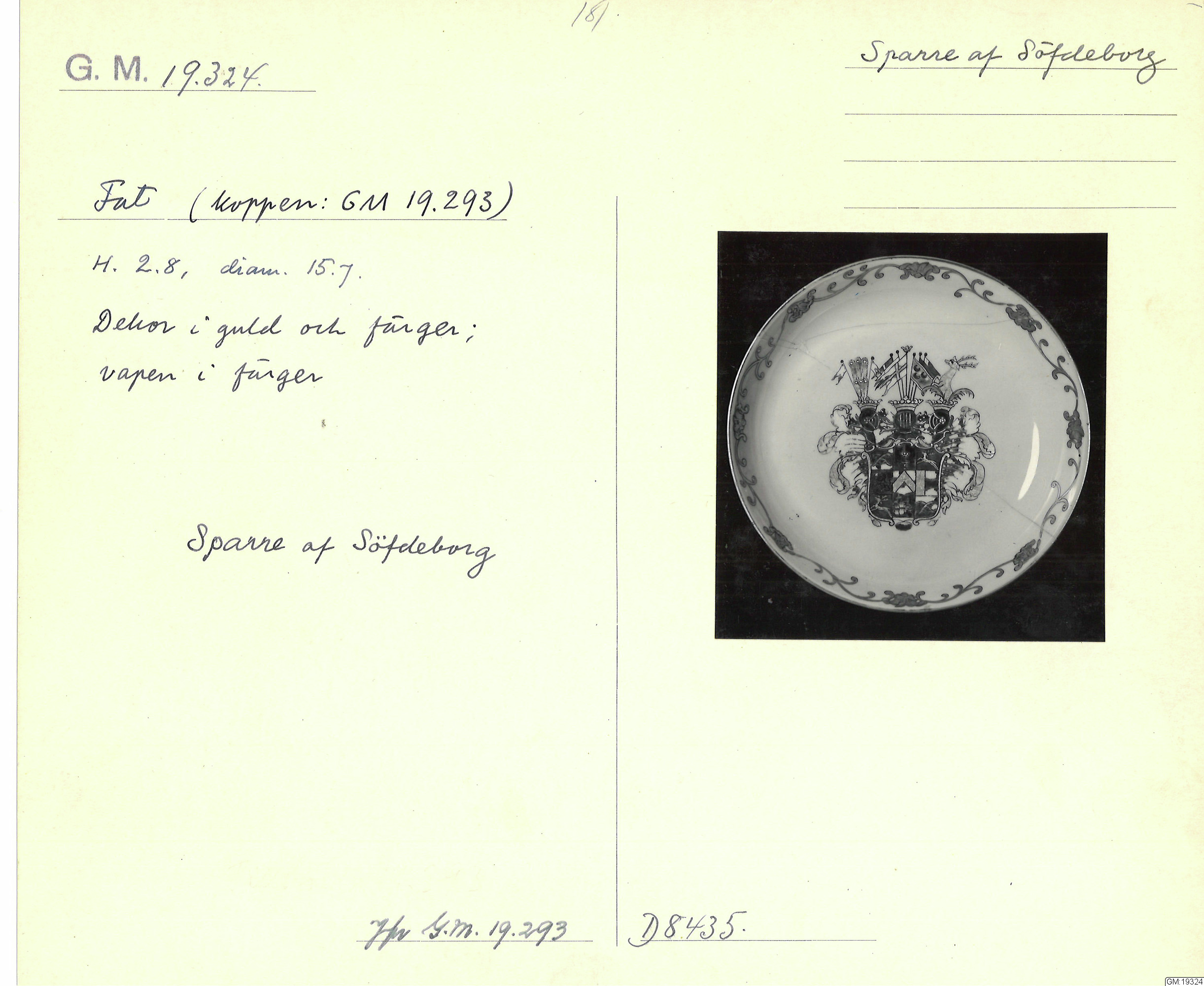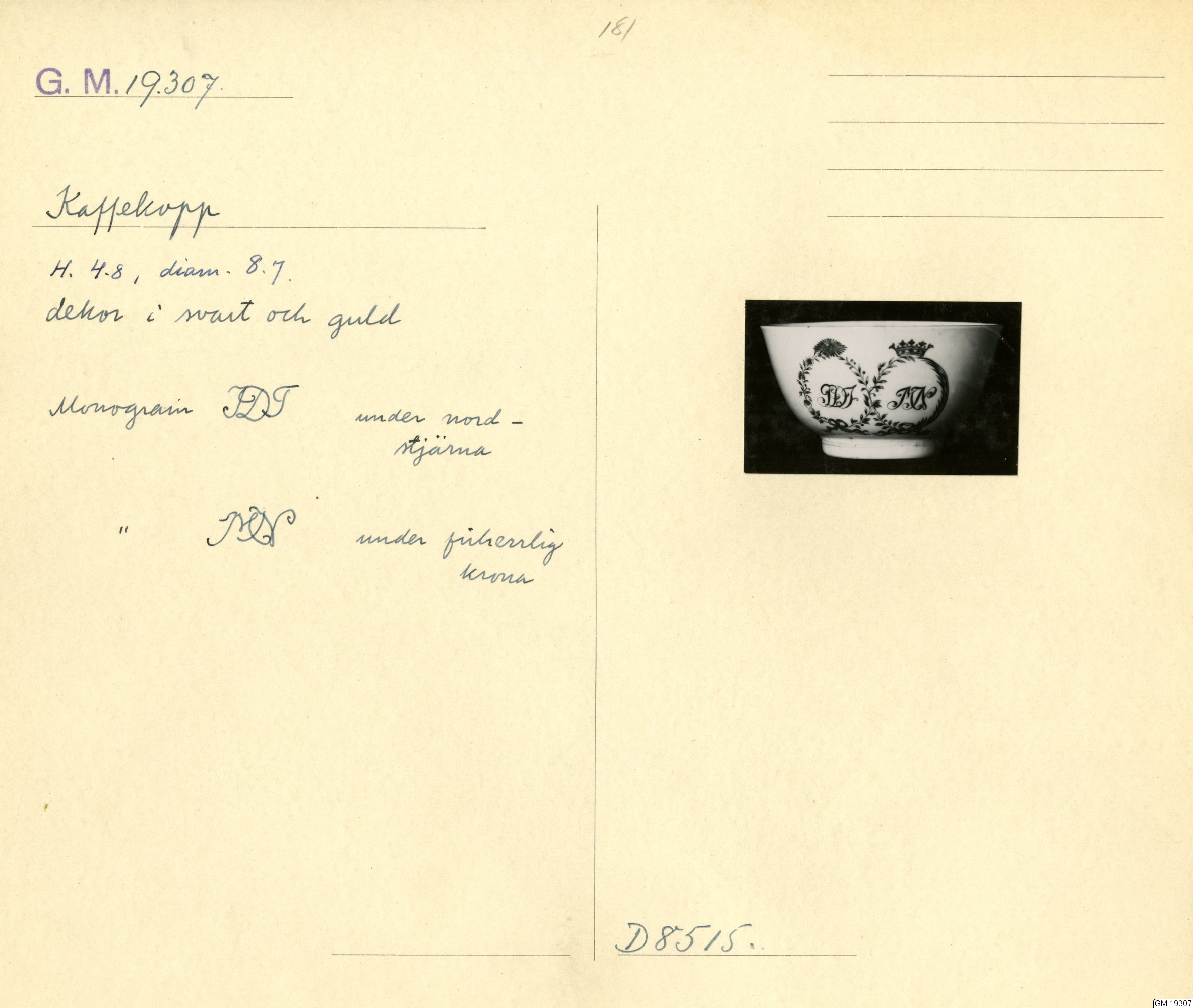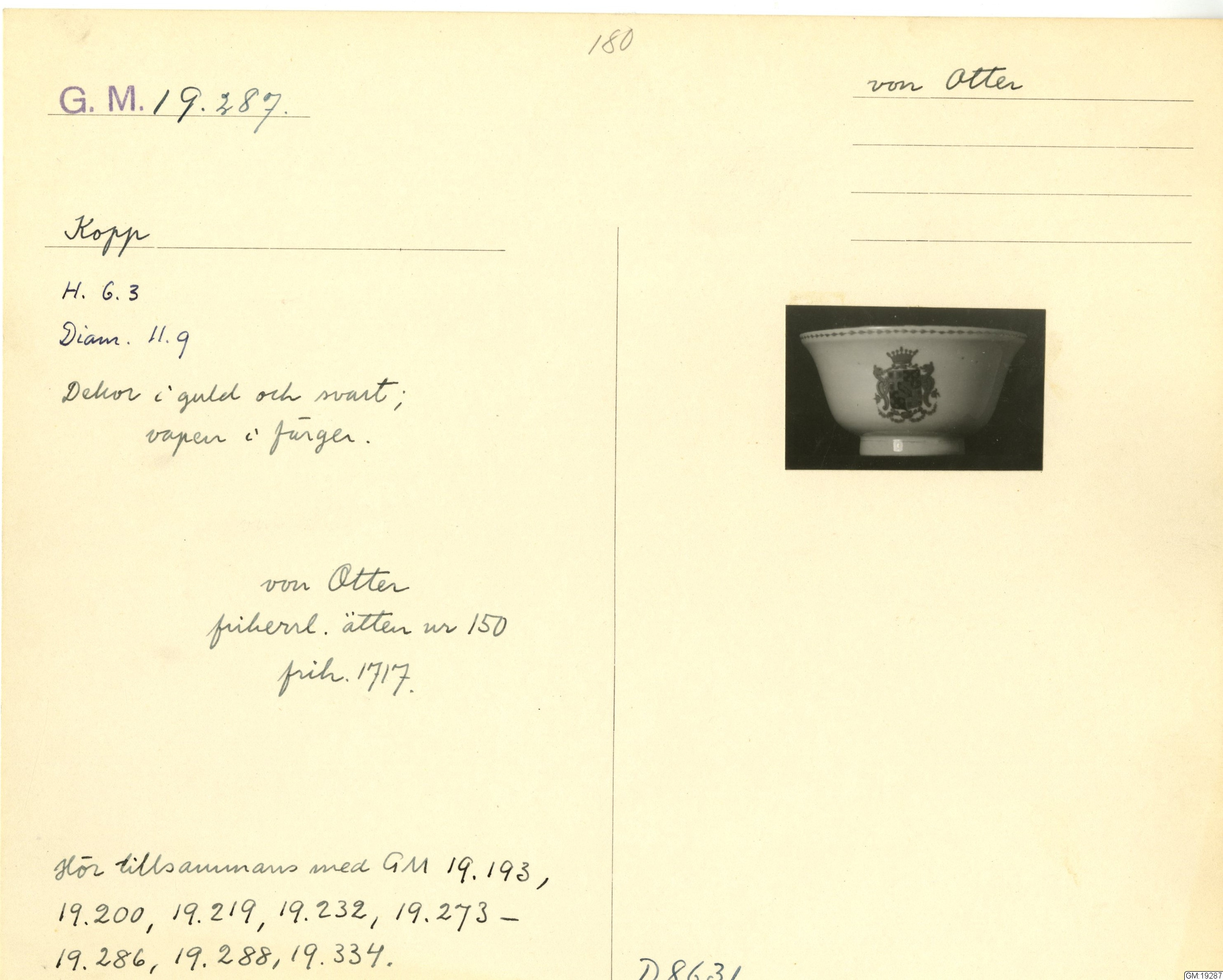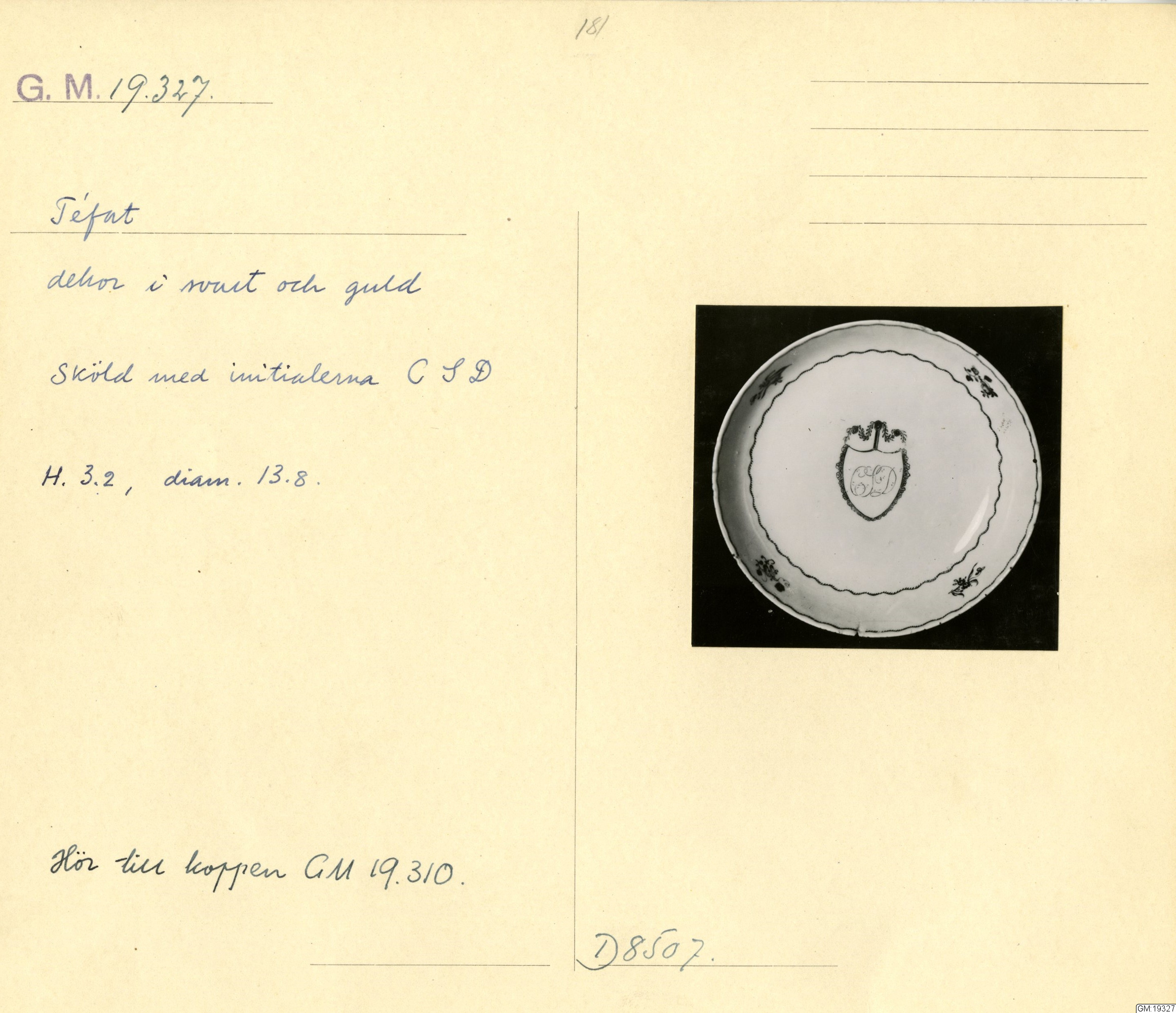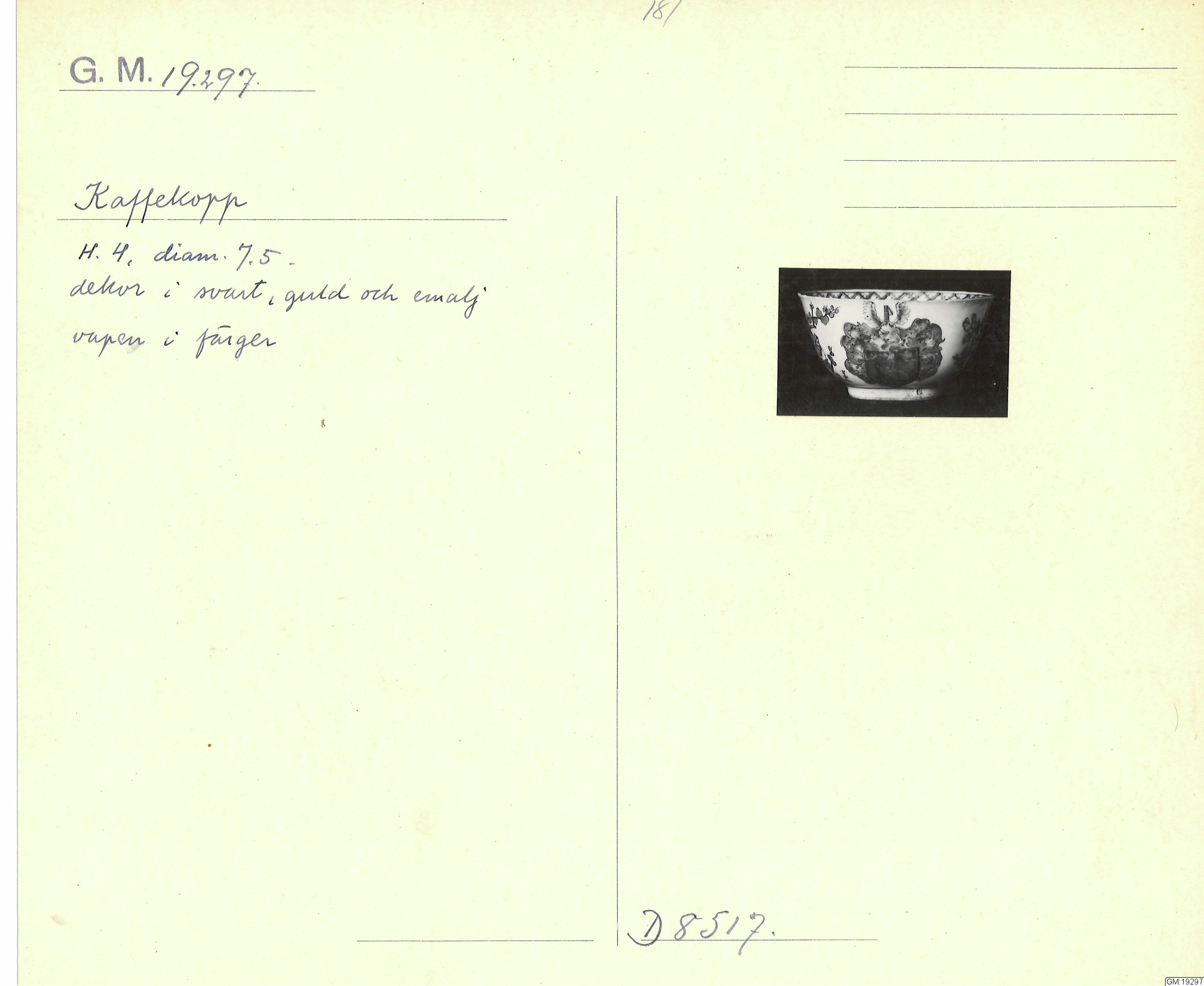GM katalogkort 181. 18E Porslin Ostindiskt 11. Saml. Strokirk 3