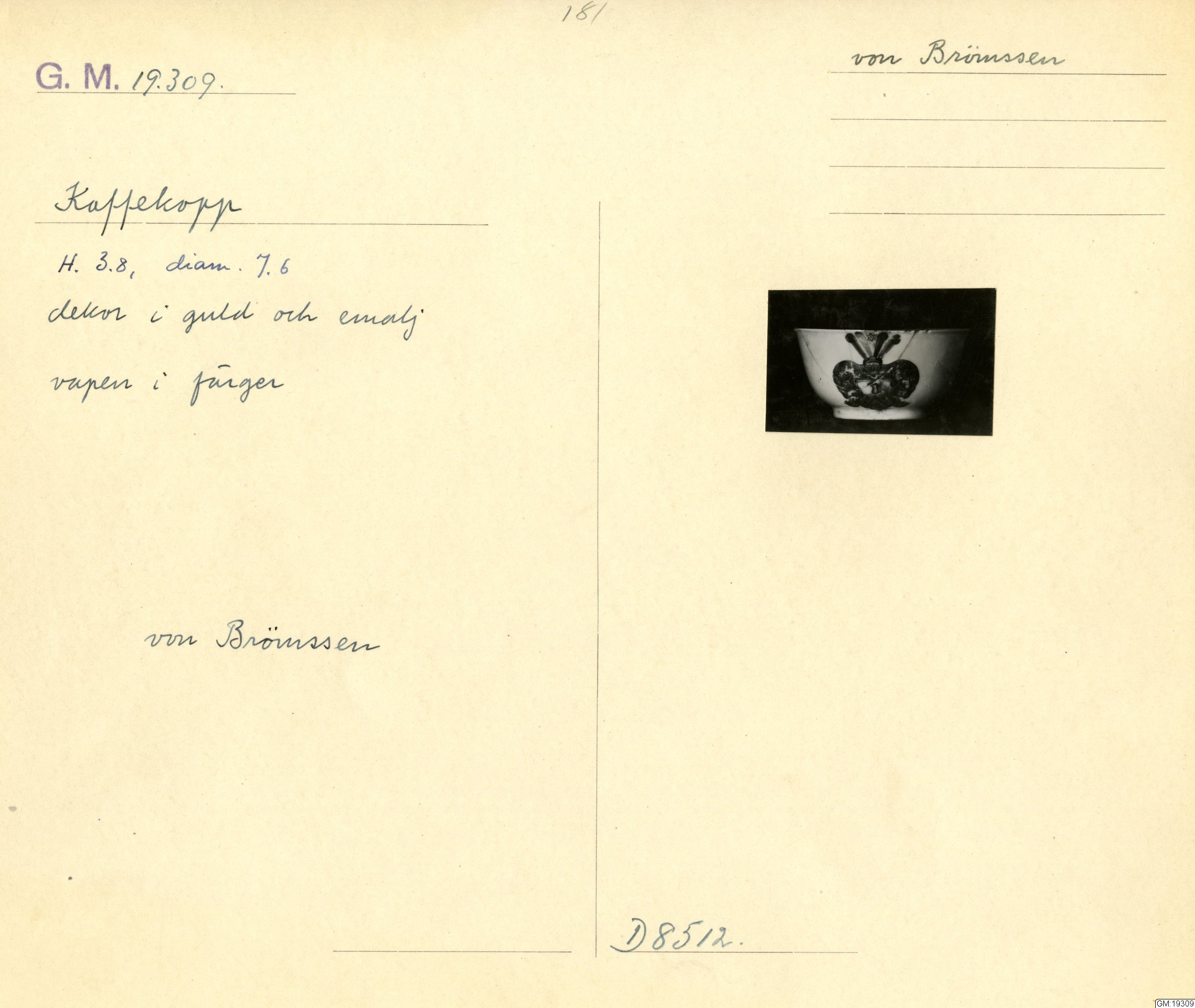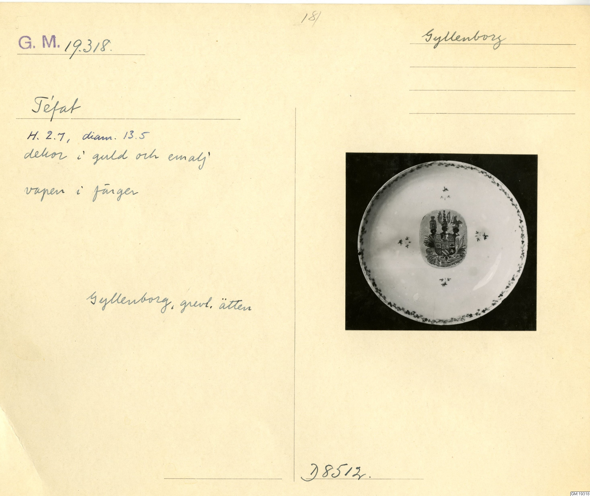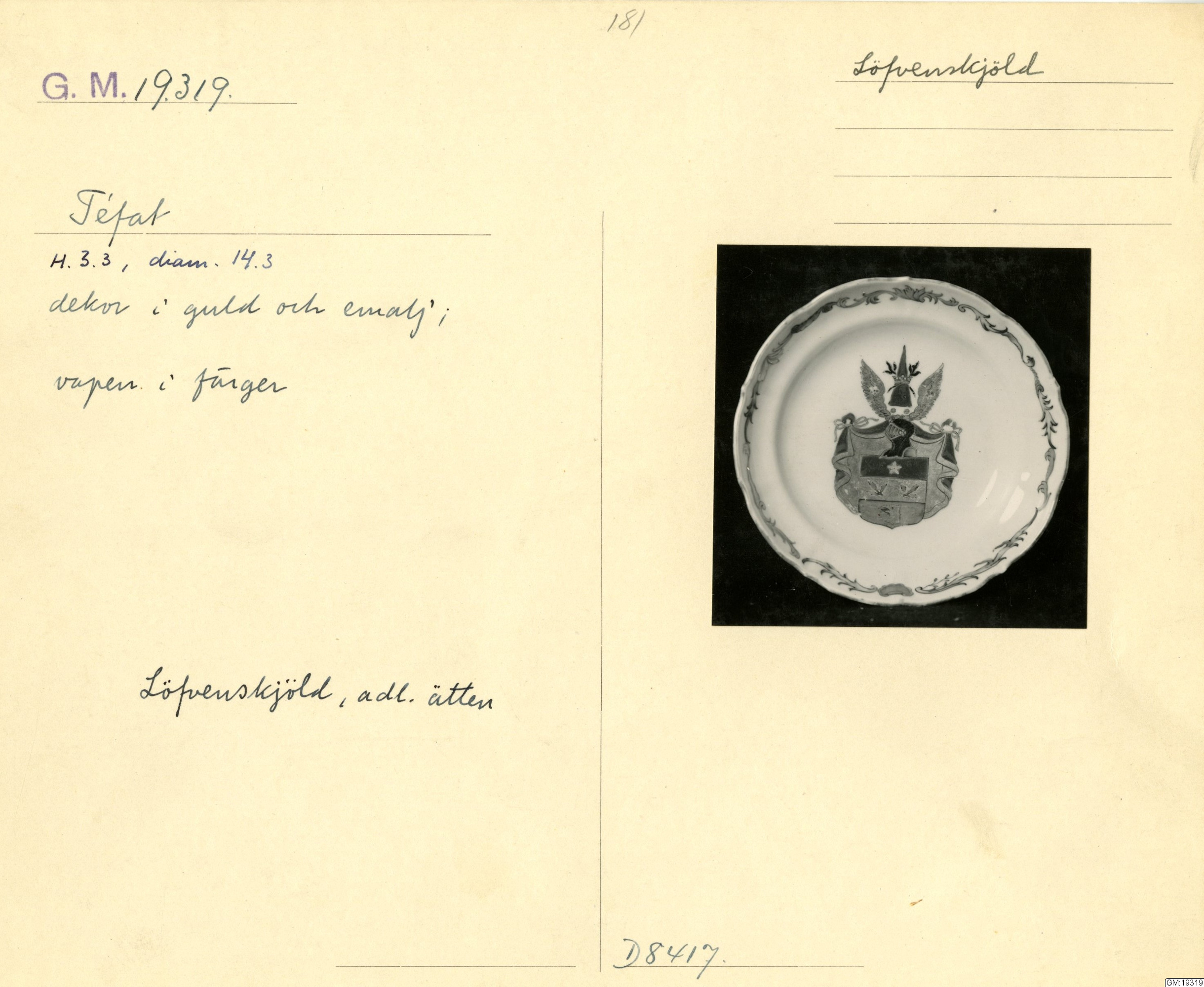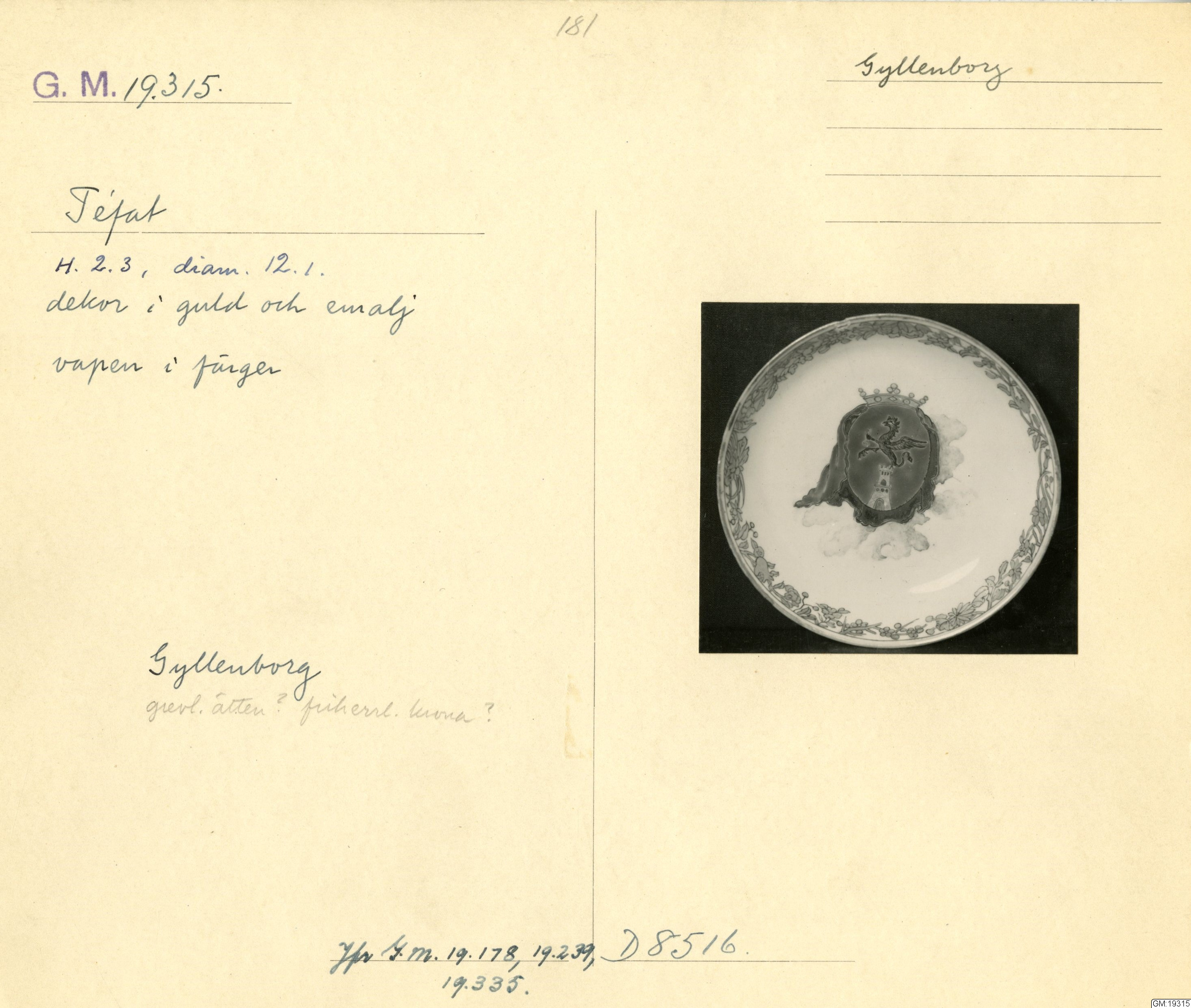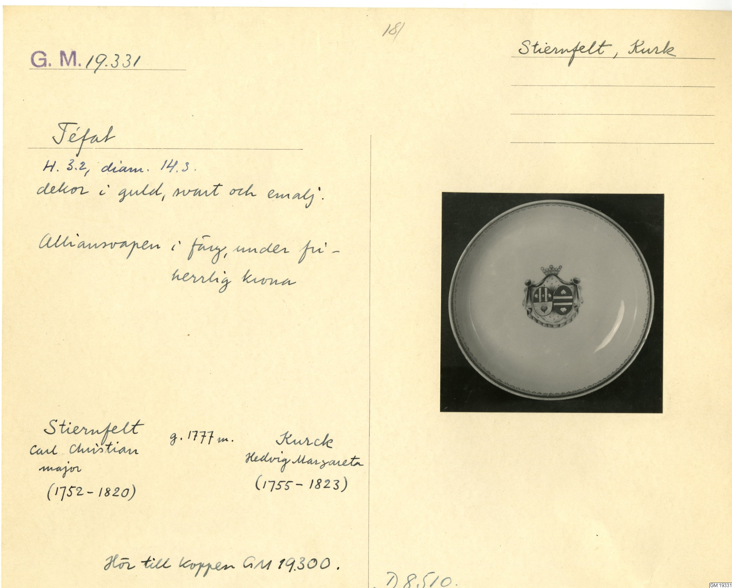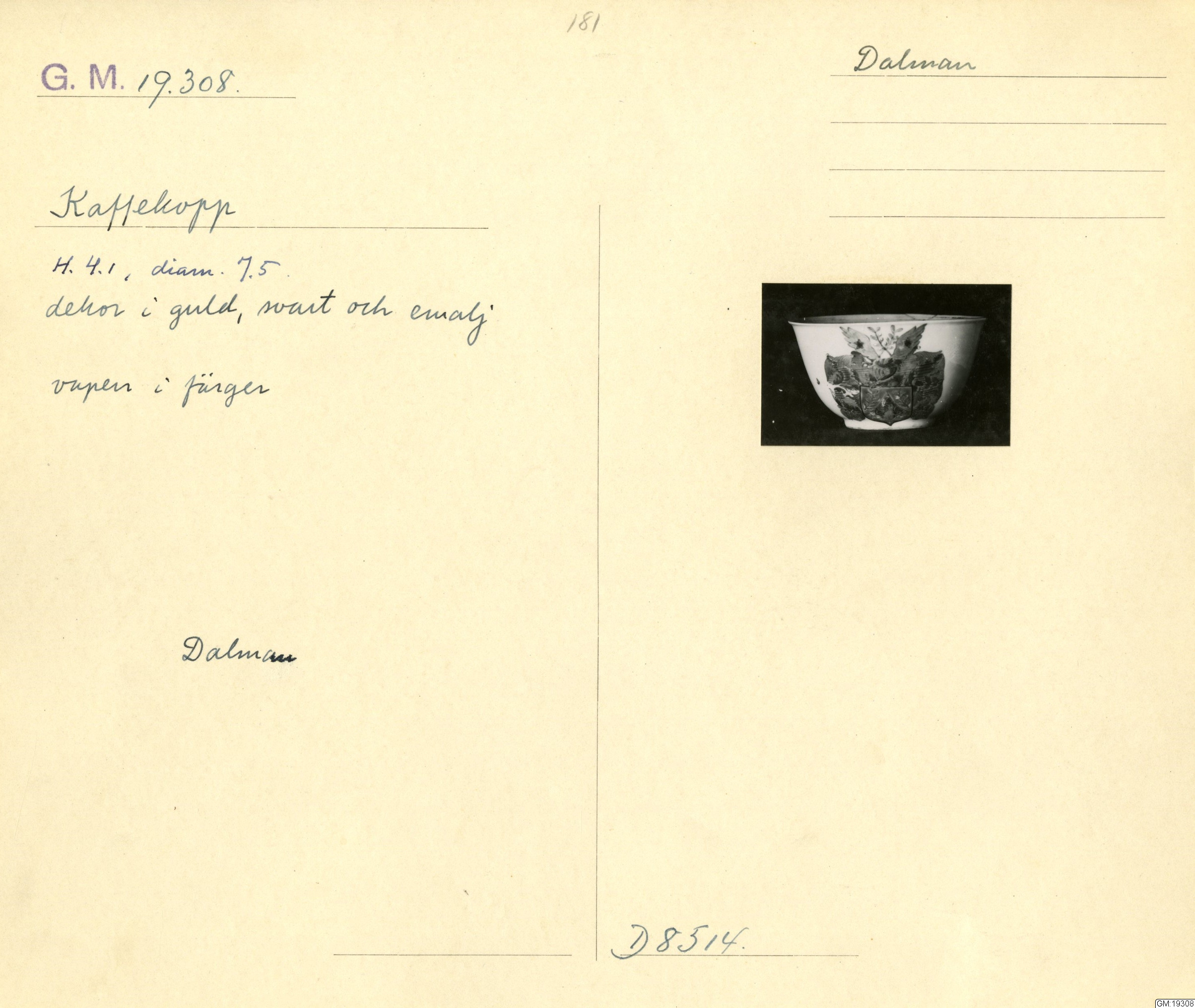 GM katalogkort 181. 18E Porslin Ostindiskt 11. Saml. Strokirk 3