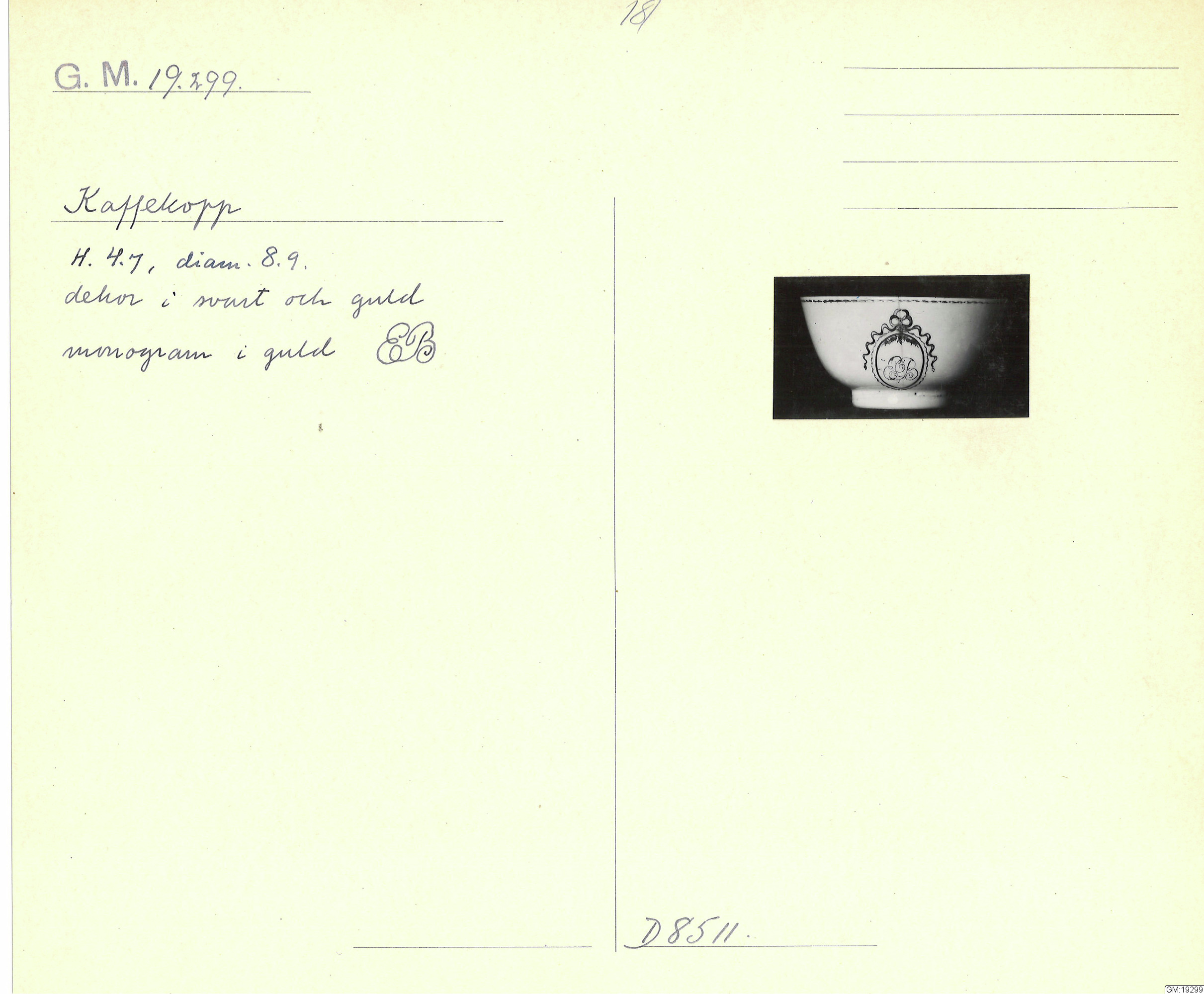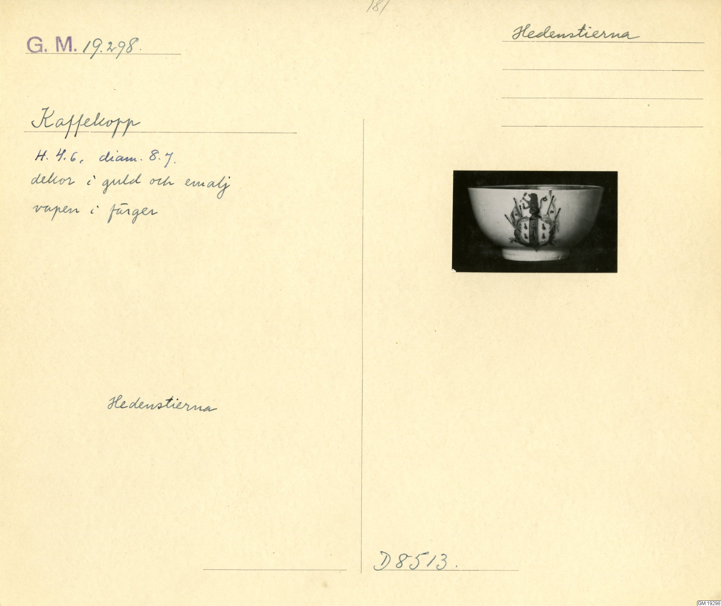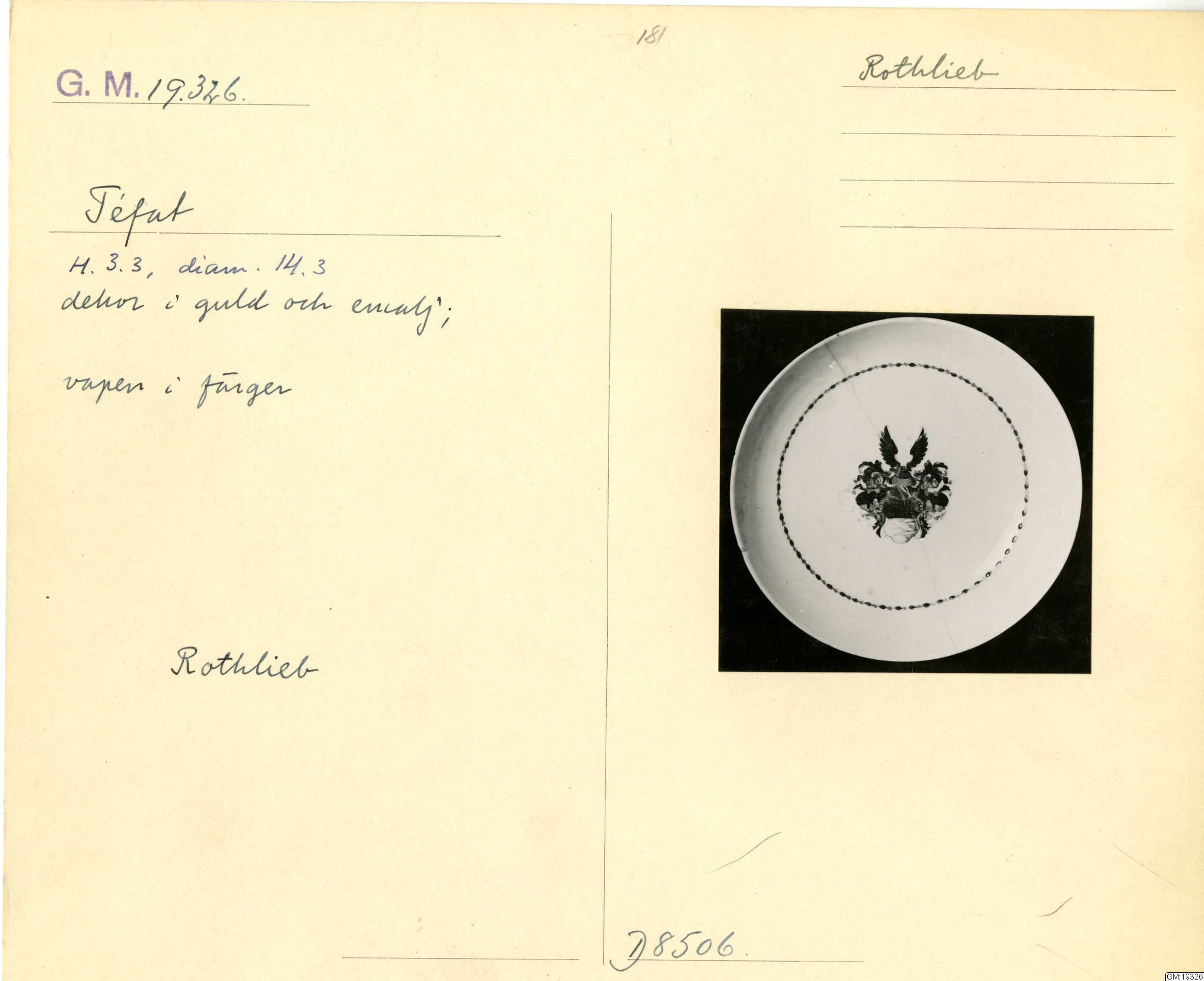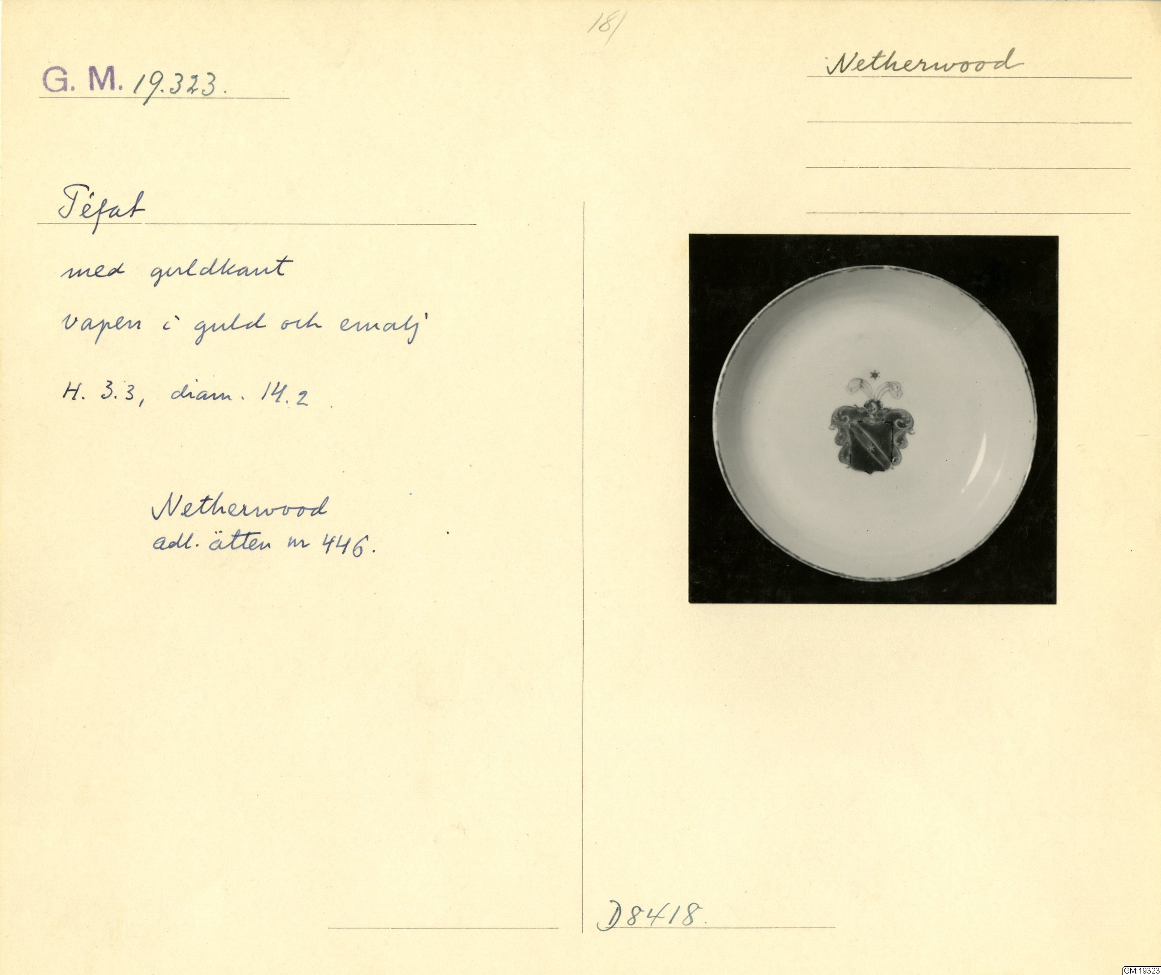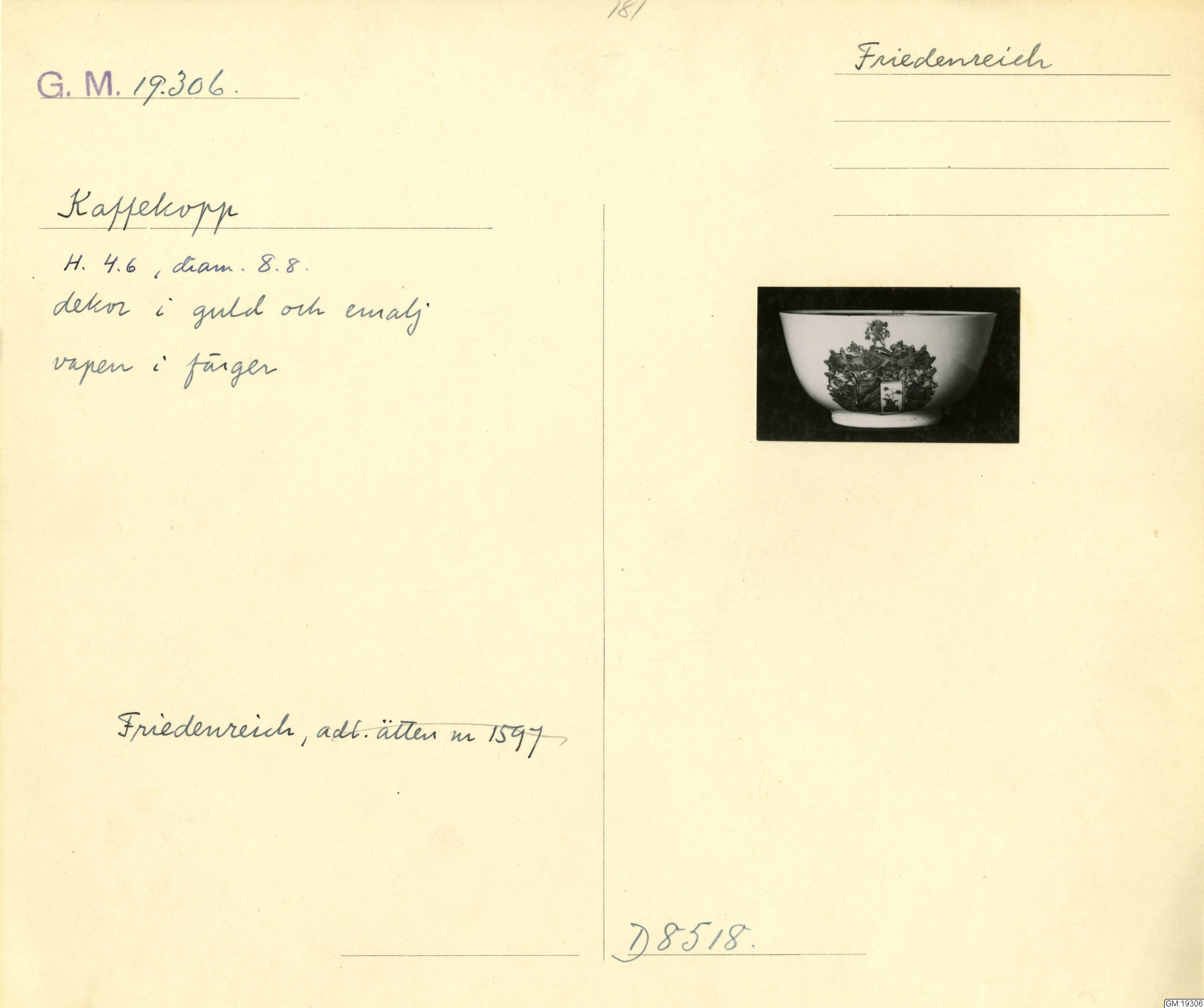 GM katalogkort 181. 18E Porslin Ostindiskt 11. Saml. Strokirk 3