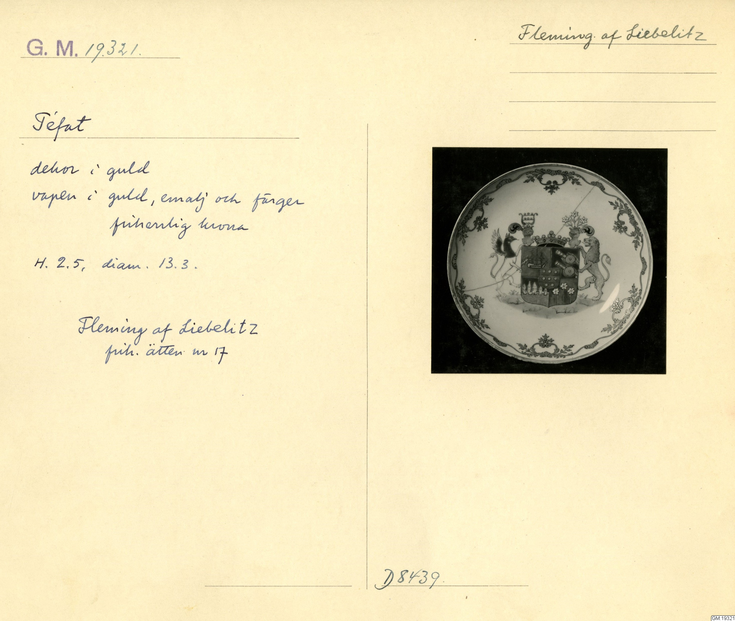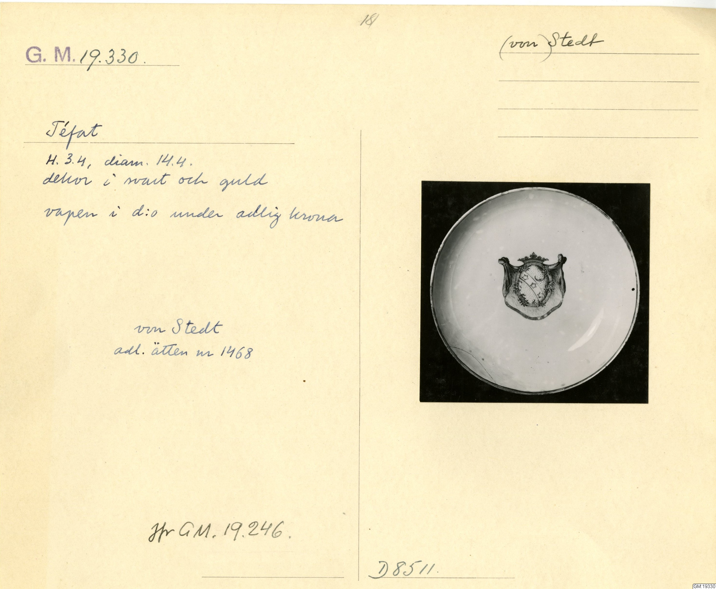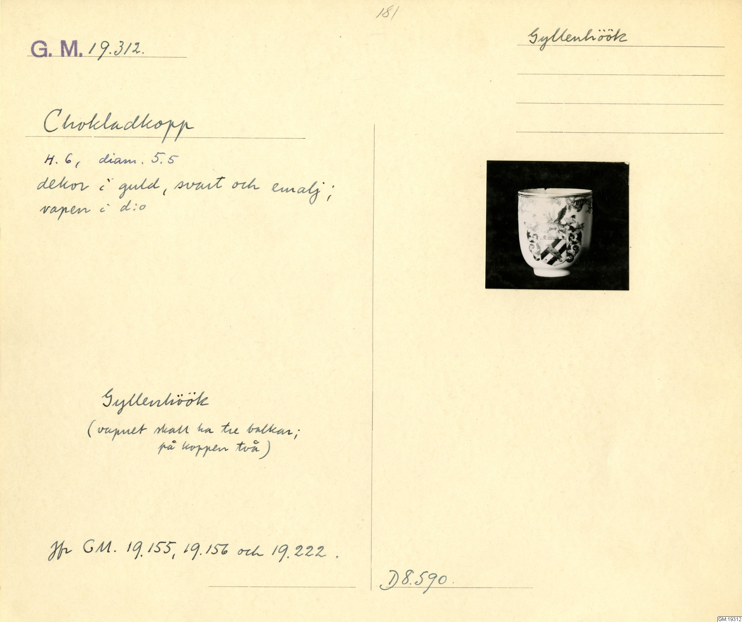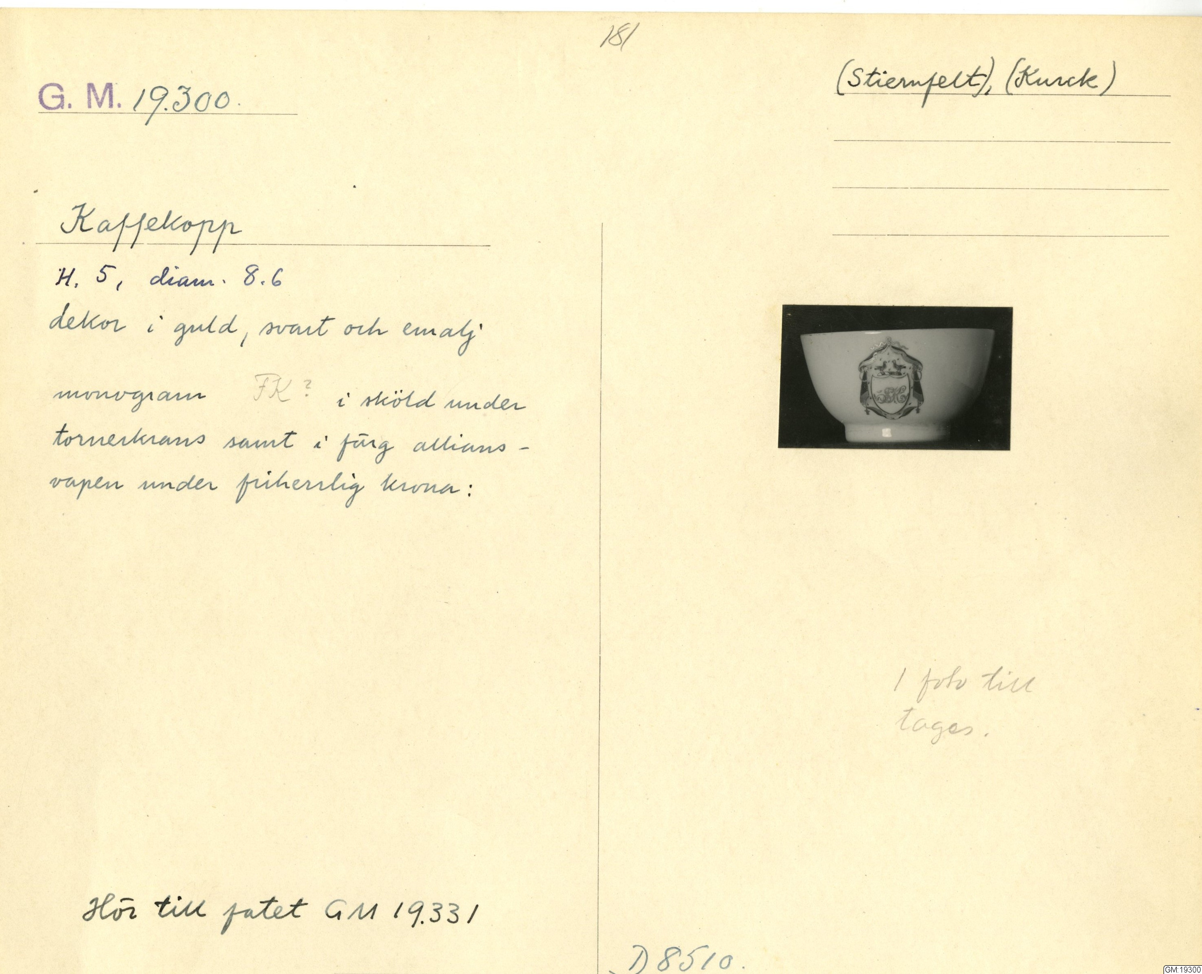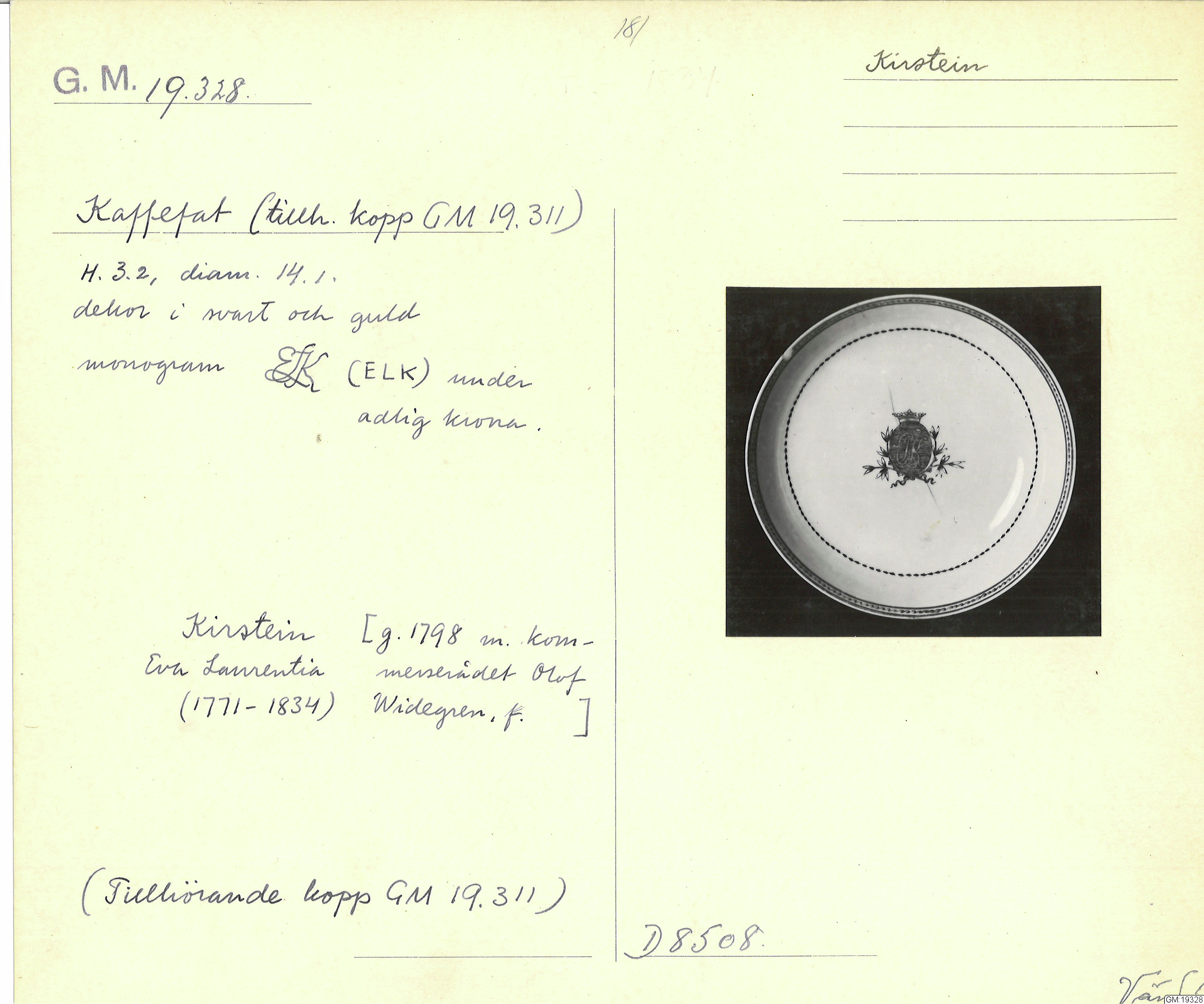 GM katalogkort 181. 18E Porslin Ostindiskt 11. Saml. Strokirk 3