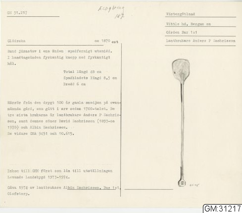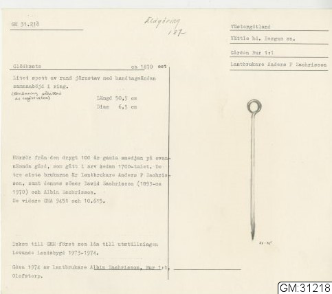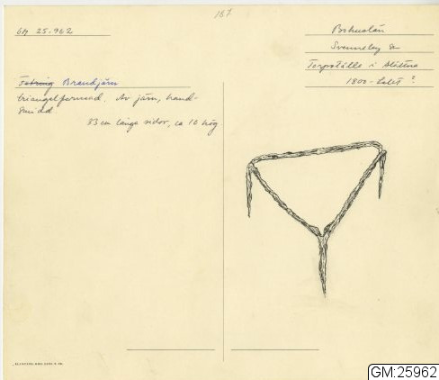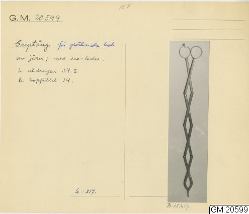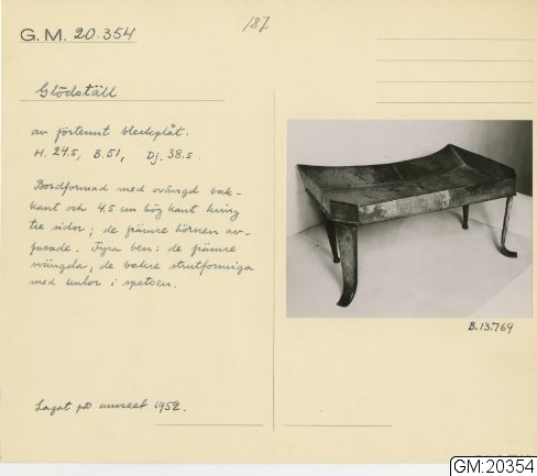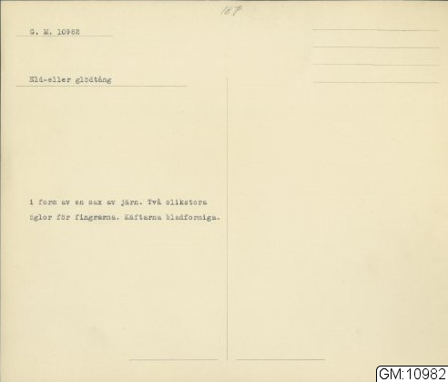 GM katalogkort 187. 19A. Eldgörning och värme. Bälgar, eldtänger och andra redskap, diverse