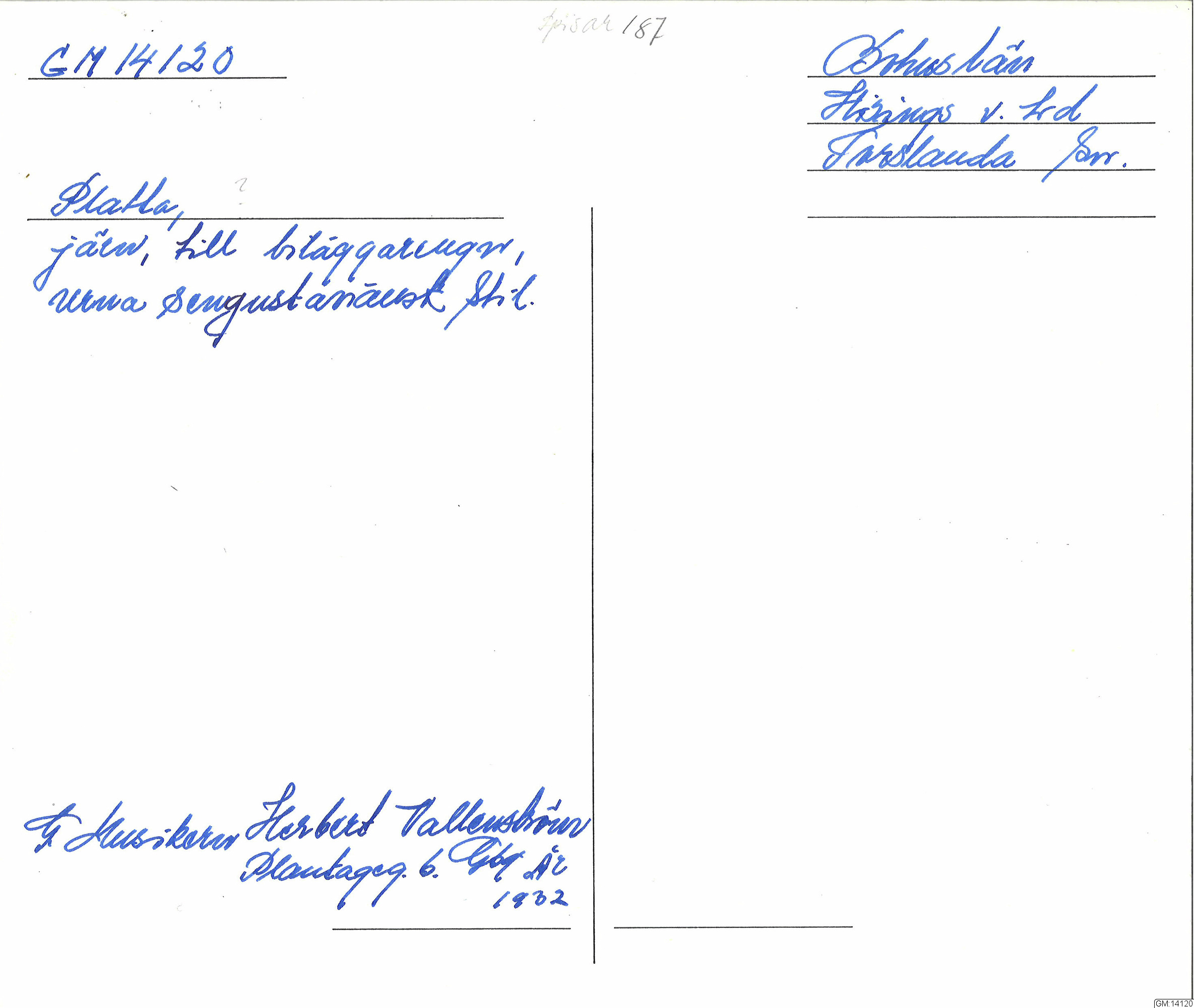 Göteborgs museum katalogkort :: katalogkort