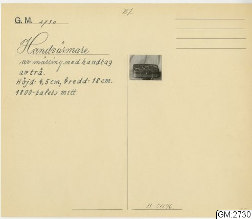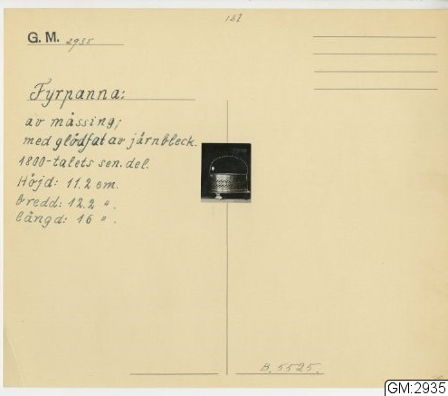 GM katalogkort 187. 19A. Eldgörning och värme. Bälgar, eldtänger mm :: volym
