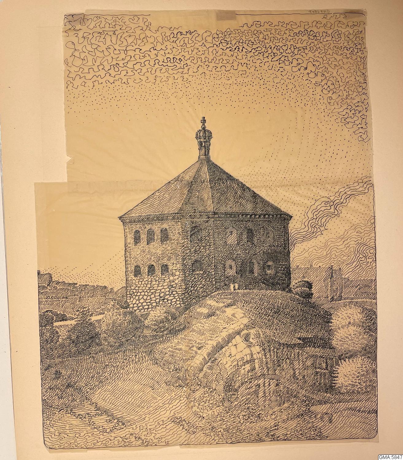 Tuschteckning av Eugen Thorburn (osignerad): Skansen Kronan. (D.9996.)