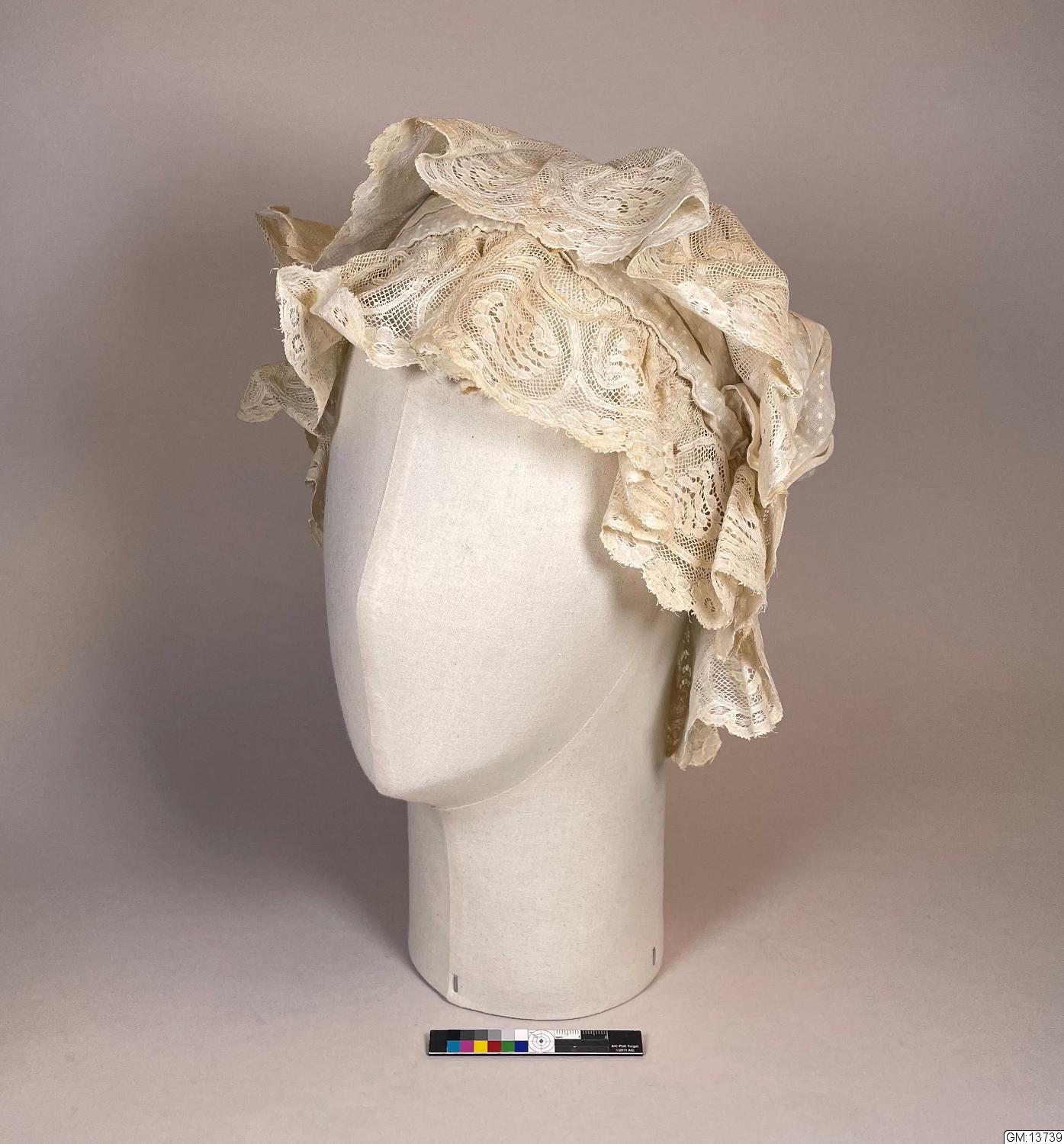 "Nattmössa av prickig voile med spetsar. Har tillhört fru Dagmar Heyman. Gåva från herr B. Mally, Göteborg." [enl. liggare]