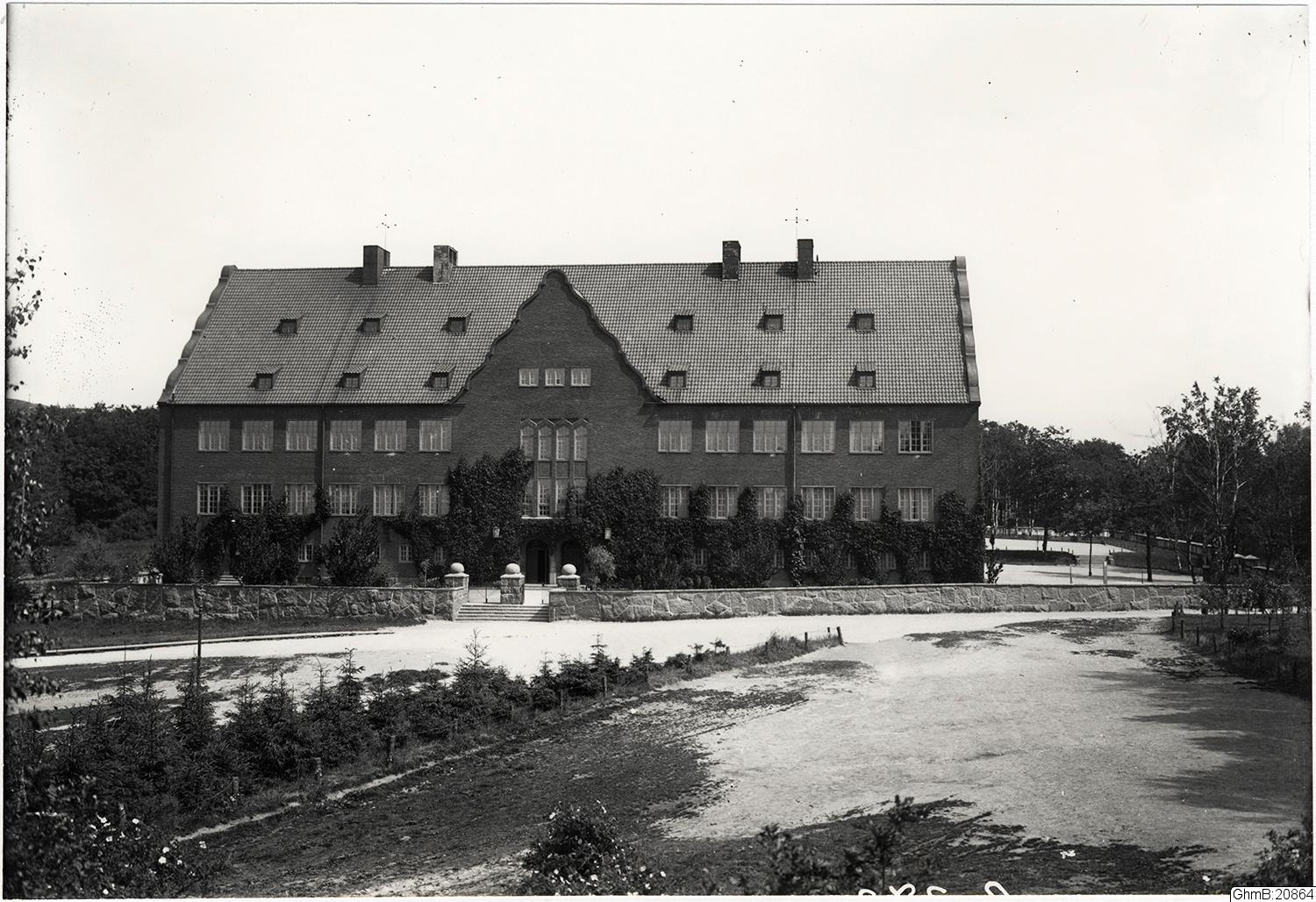 Rambergsskolan vid Övre Hallegatan cirka 1920. Skolan stod klar 1916.