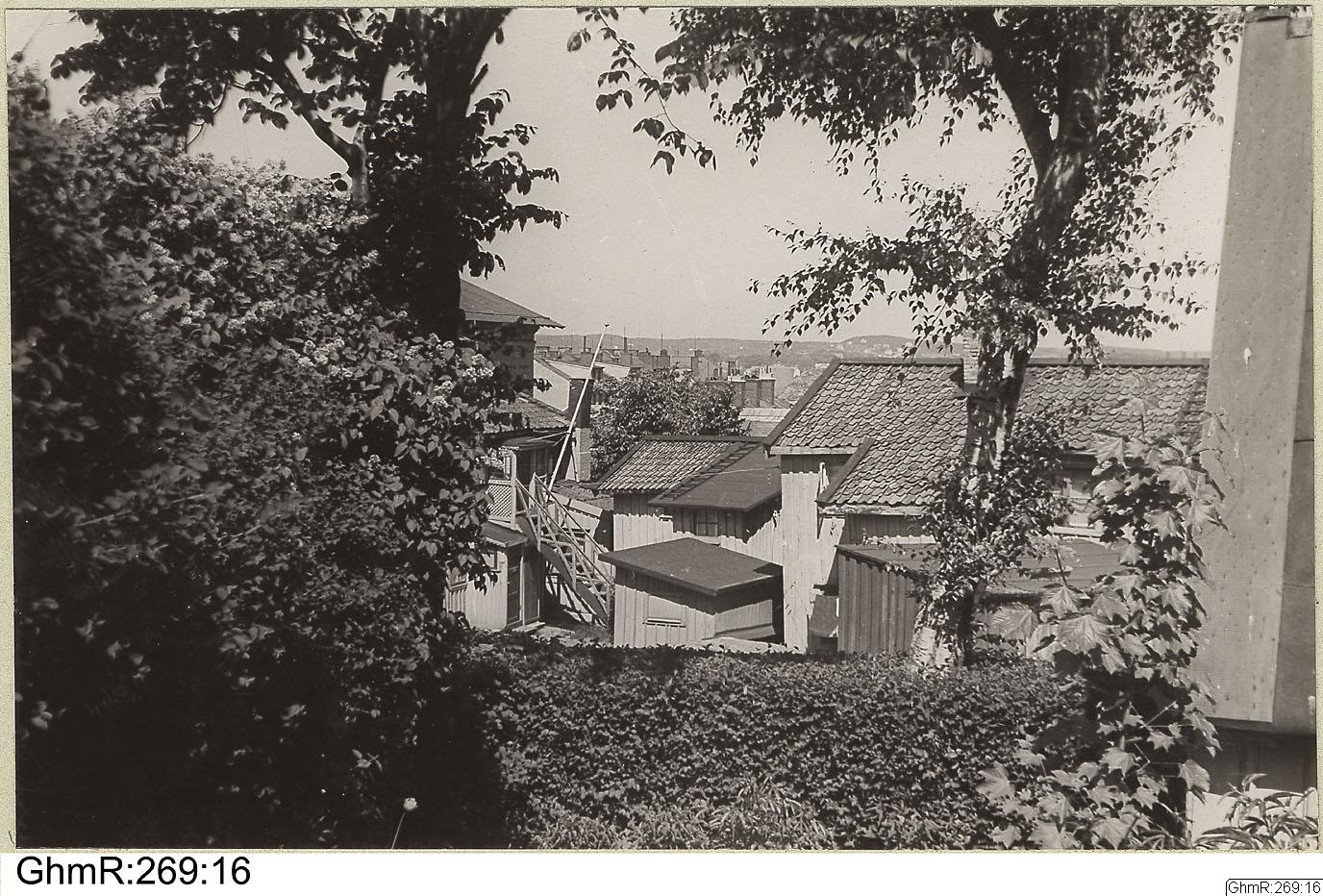 - Ankargatan: utblick åt n.v. från gården till Majornas 3 rote, nr nr 53. Närmast i fonden detaljer av fastigheterna Majornas 3 rote, nr 51 A, B och C.