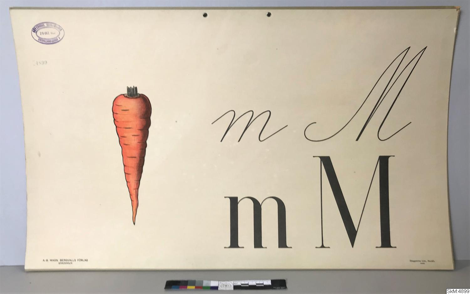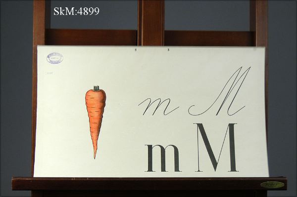 plansch, något böjd på mitten. Två hål, förstärkta med metallringar, i planschens övre kant.