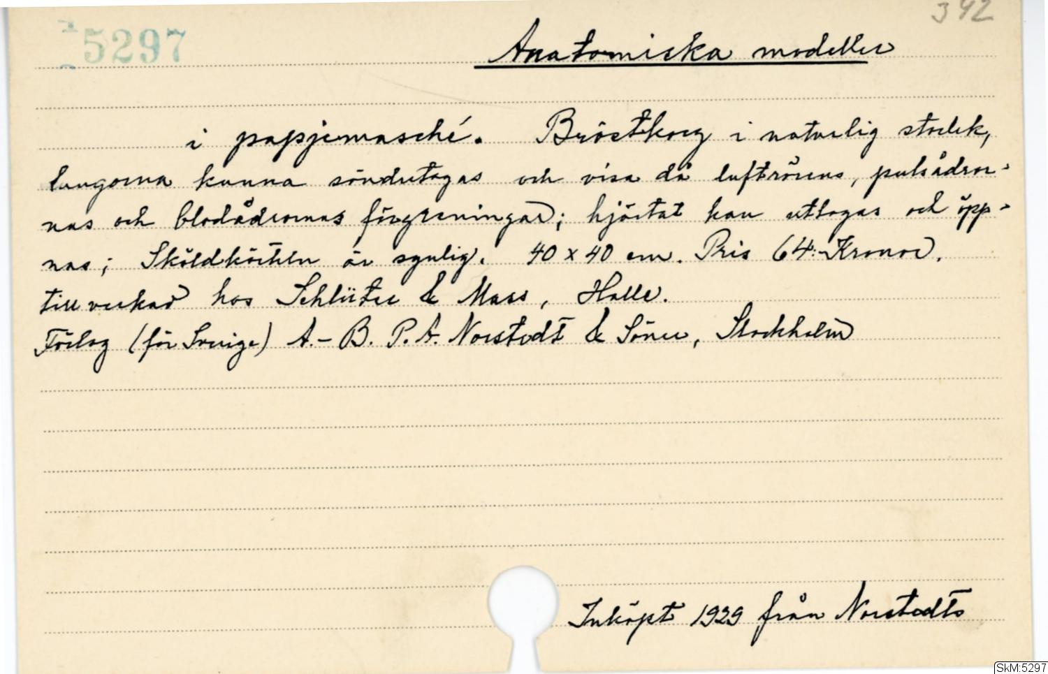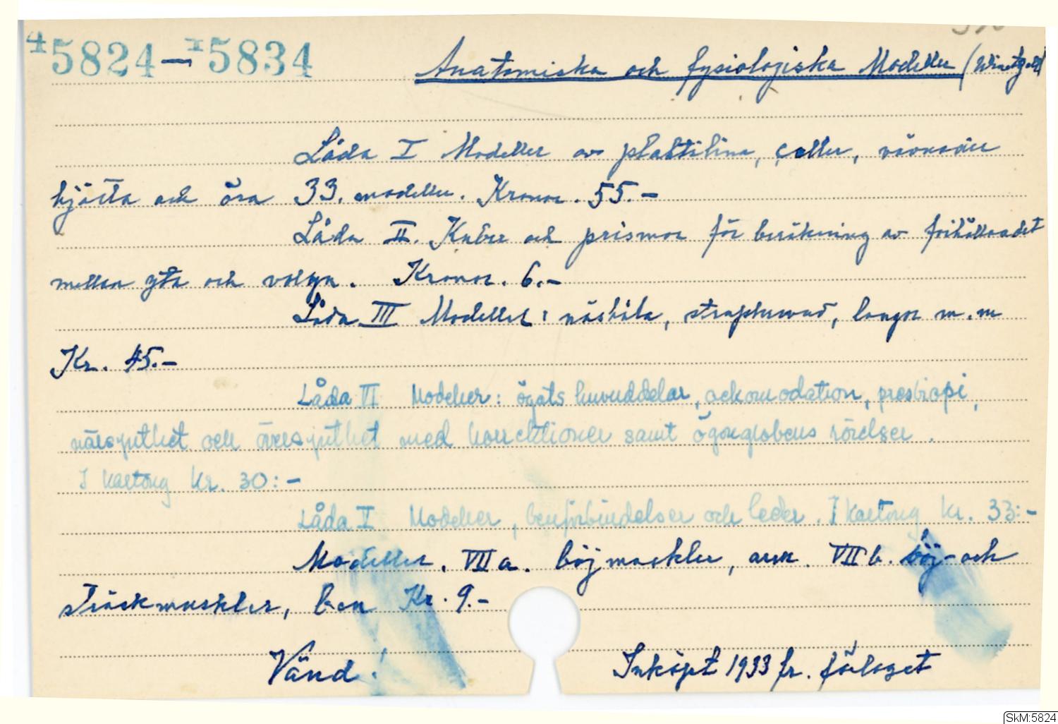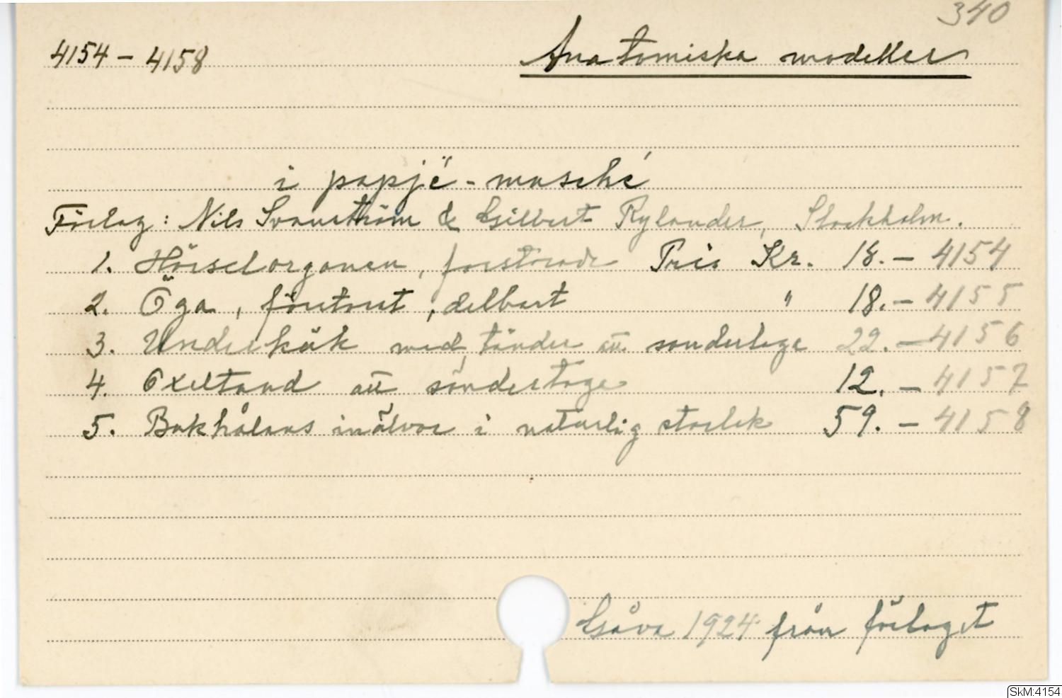 Skolmuseets katalogkort, låda 1. Anatomi och hygien 1