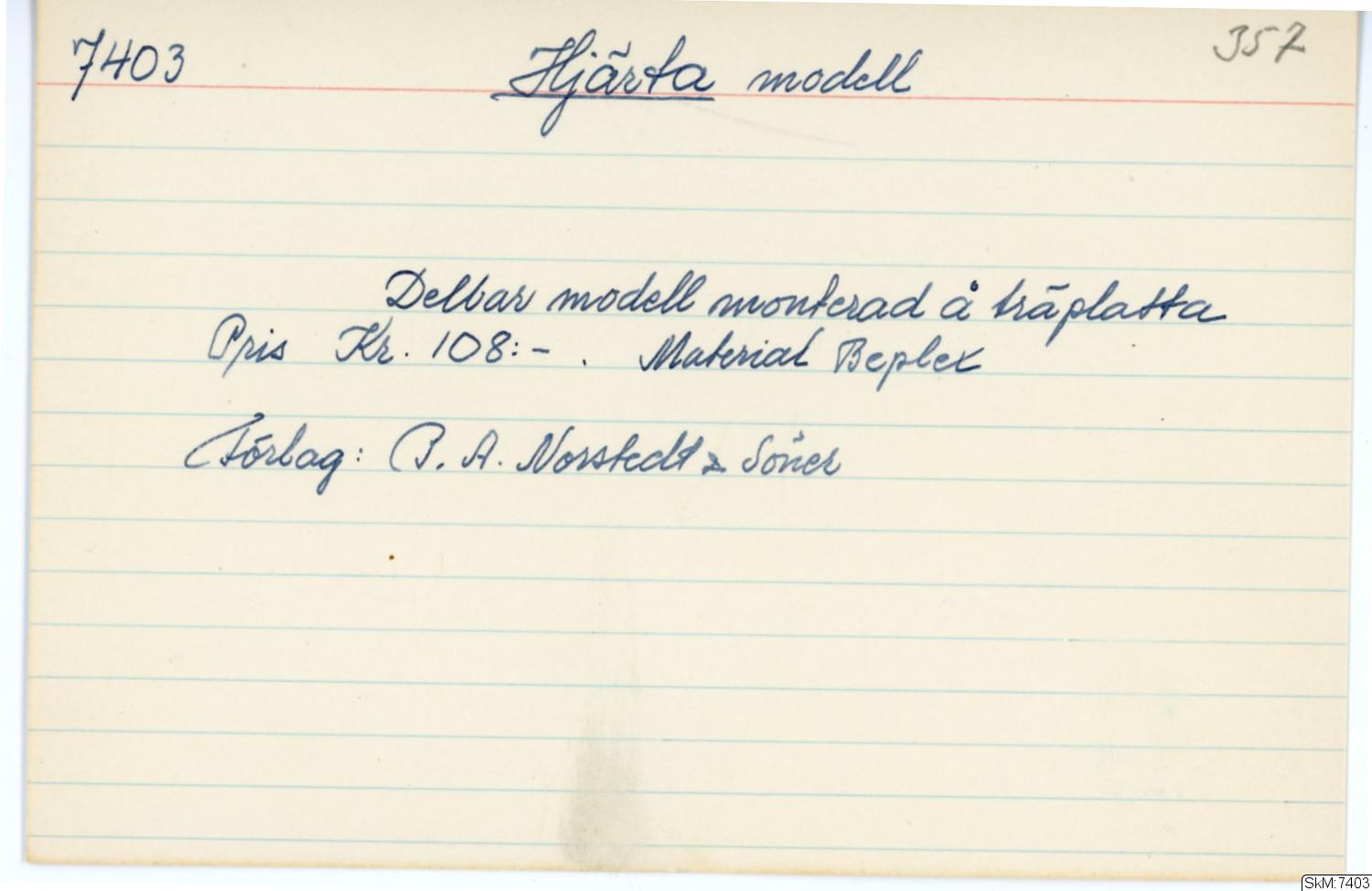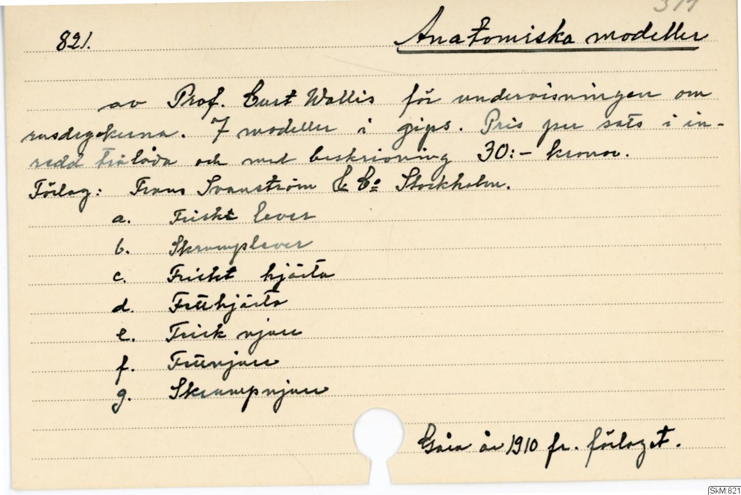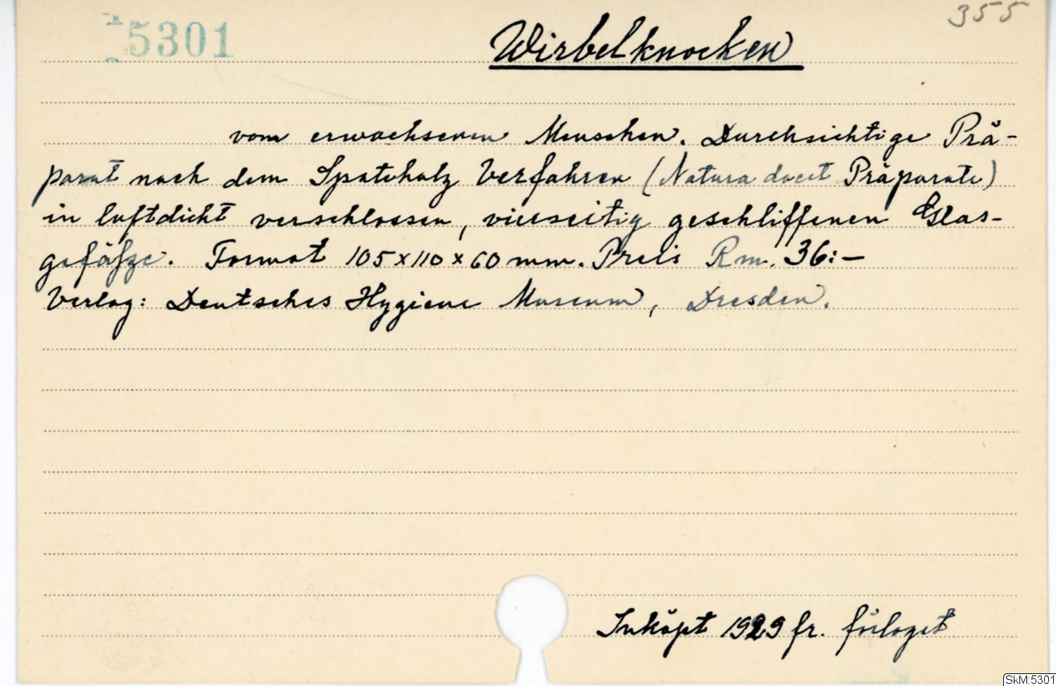 Skolmuseets katalogkort, låda 1. Anatomi och hygien 1