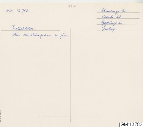 GM katalogkort 186. 19A. Eldgörning och värme. Eldstål, sköraskar, brännglas